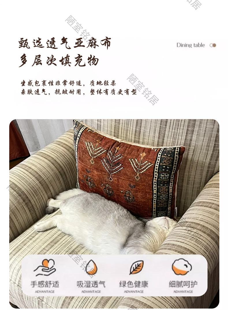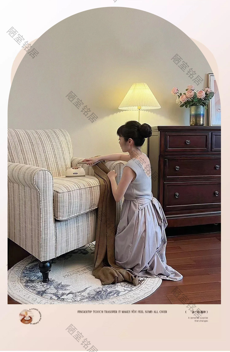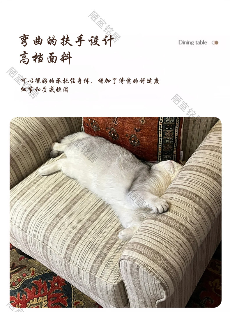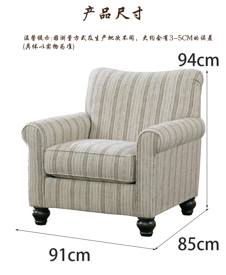 American retro simple striped cotton and linen single leisure chair French light luxury living room balcony single chair sofa chair
