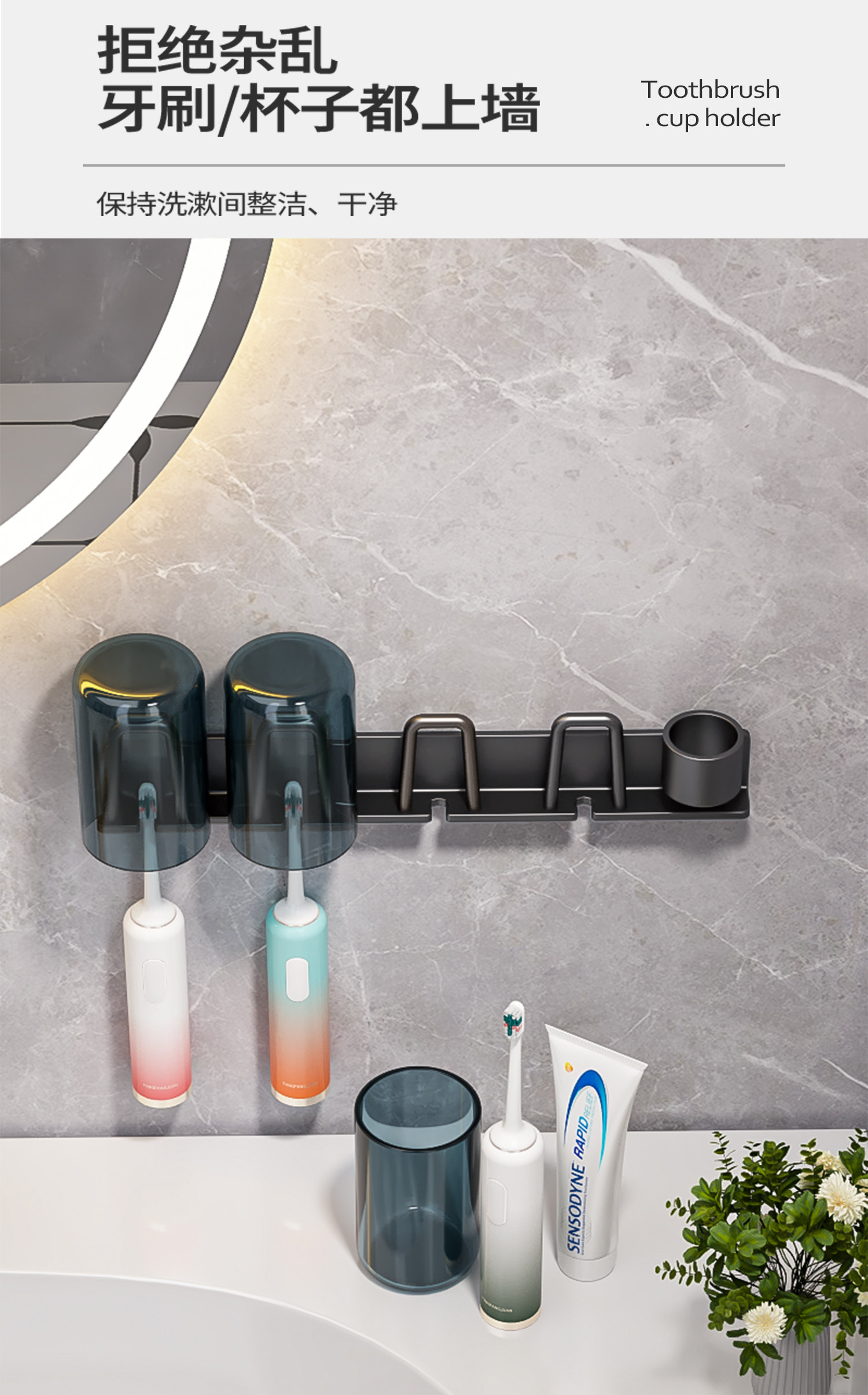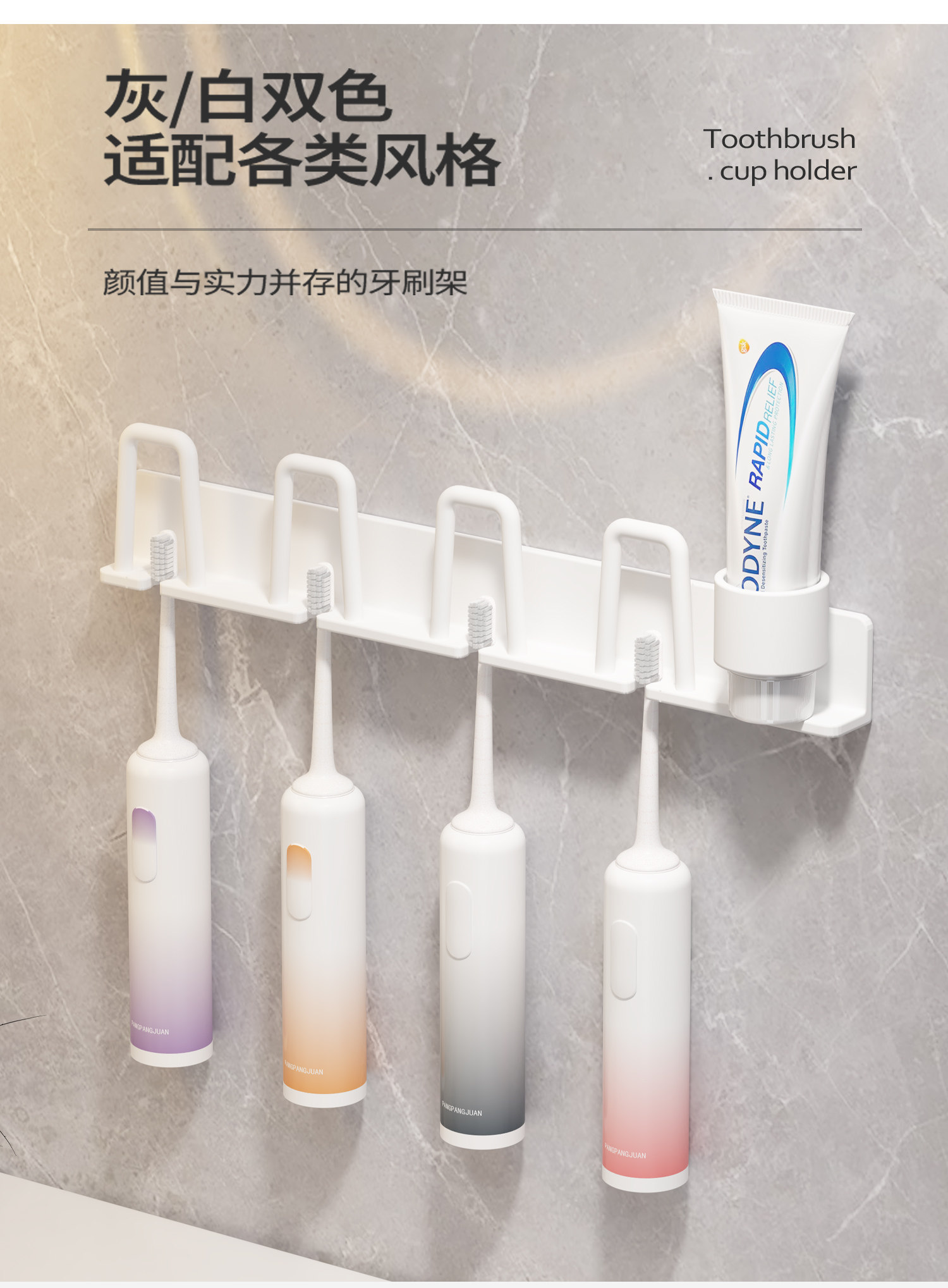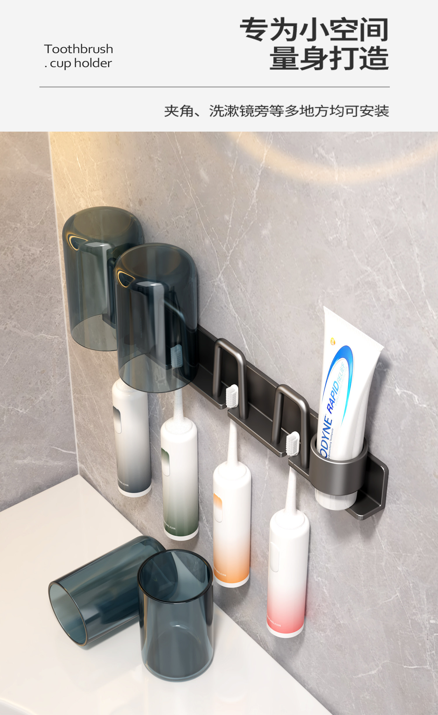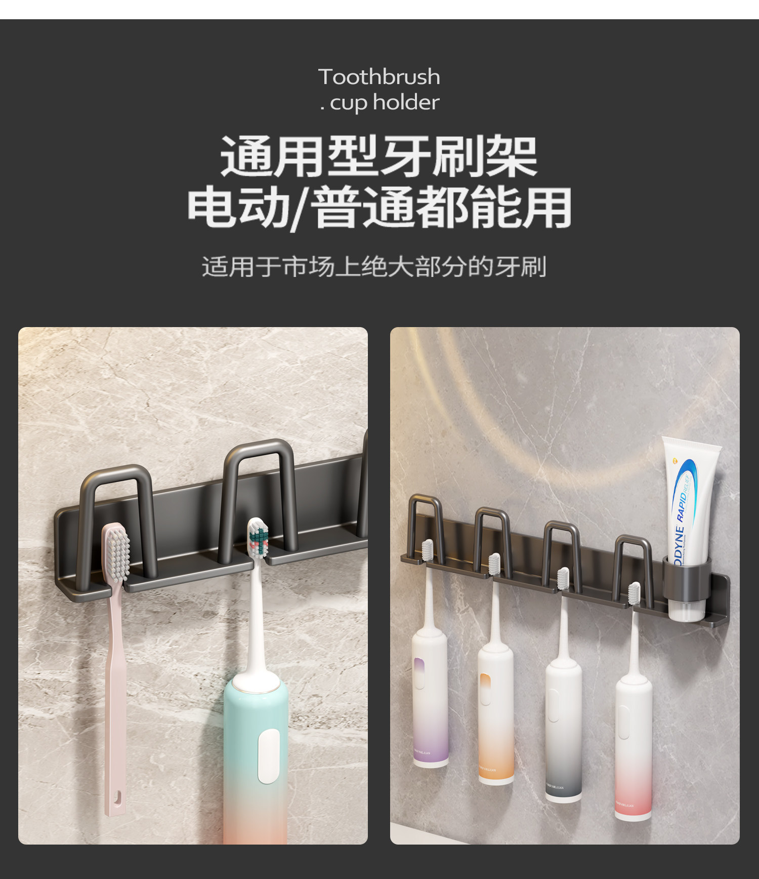 Toothbrush Holder, No-Drill Bathroom Toothbrush Rack for Electric Toothbrushes, Toothpaste, Mouthwash Cup, Hanging Rack, Dental Tool Holder