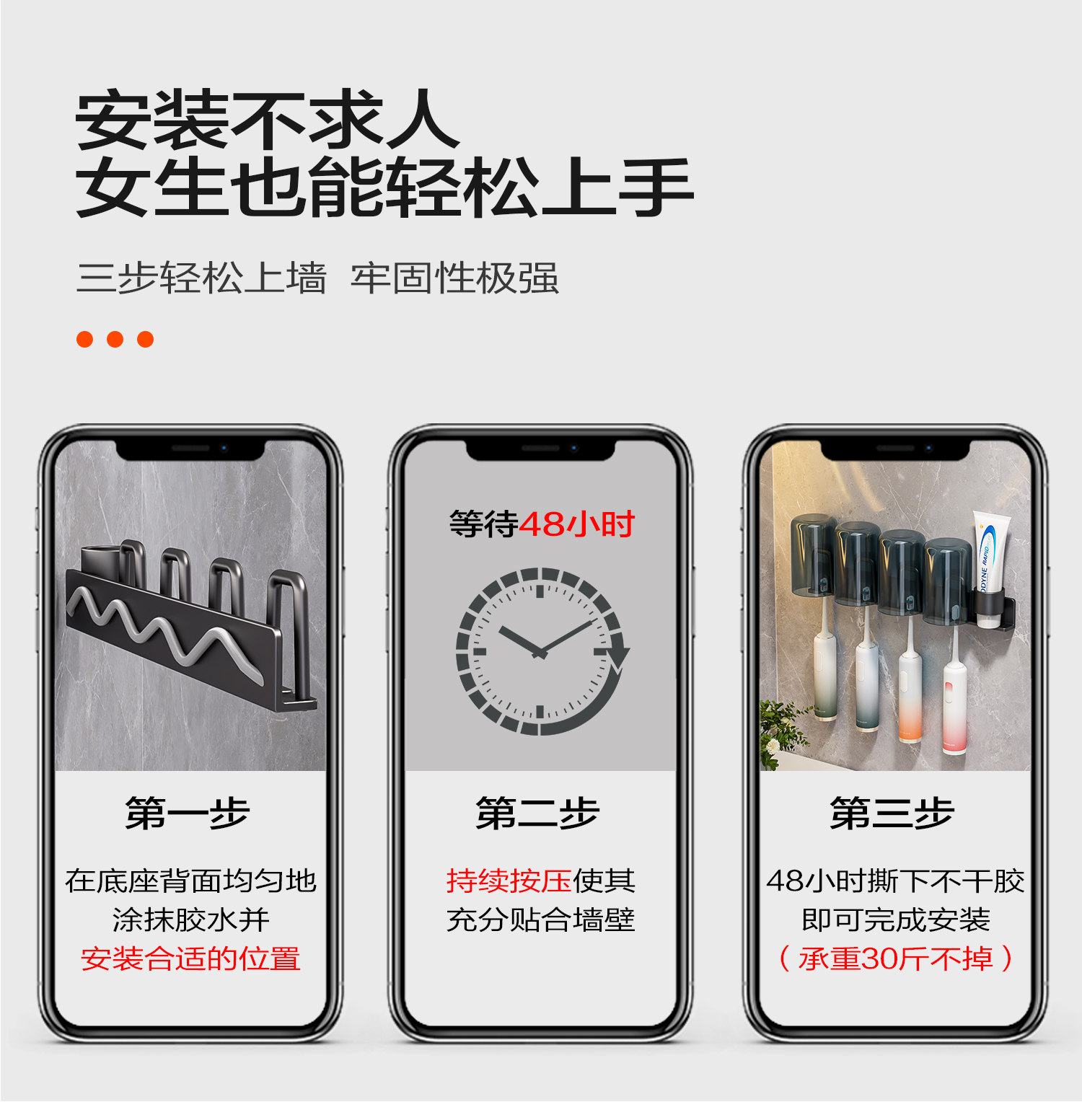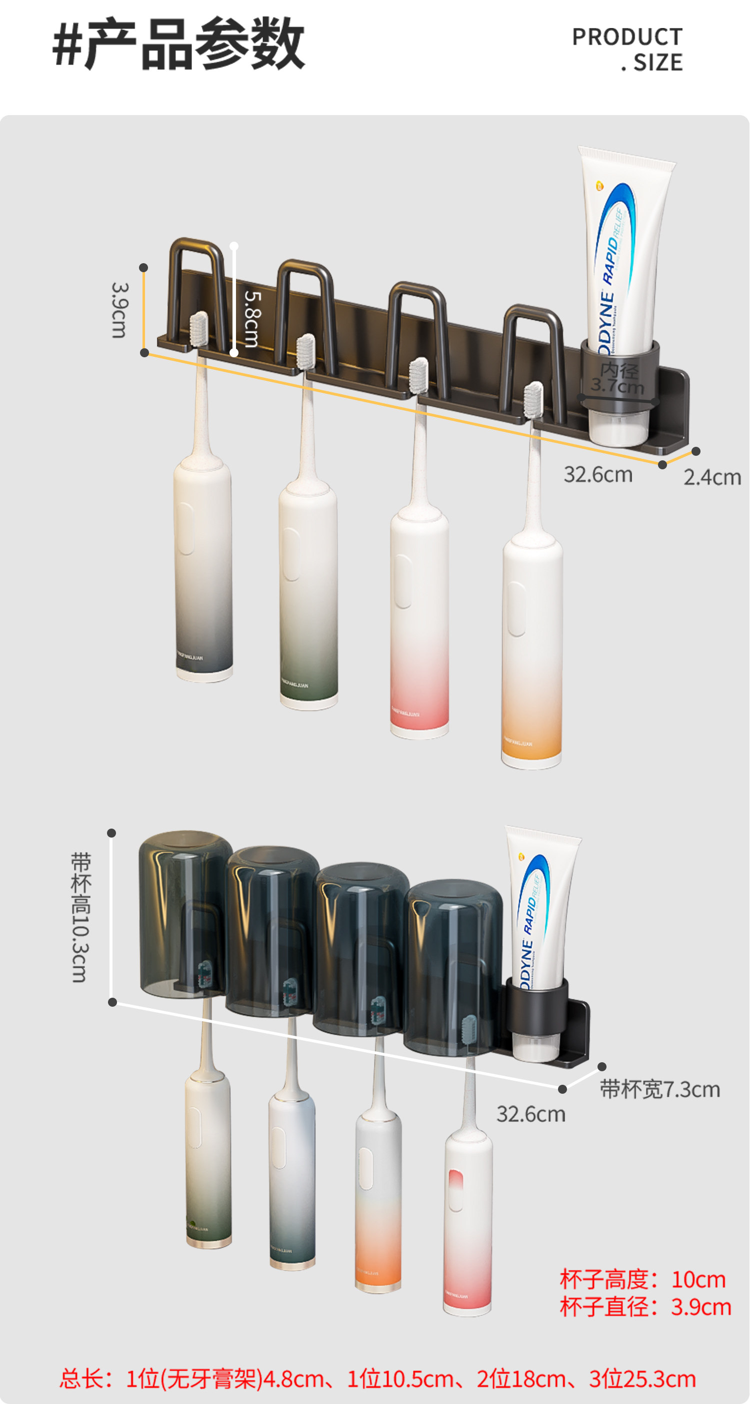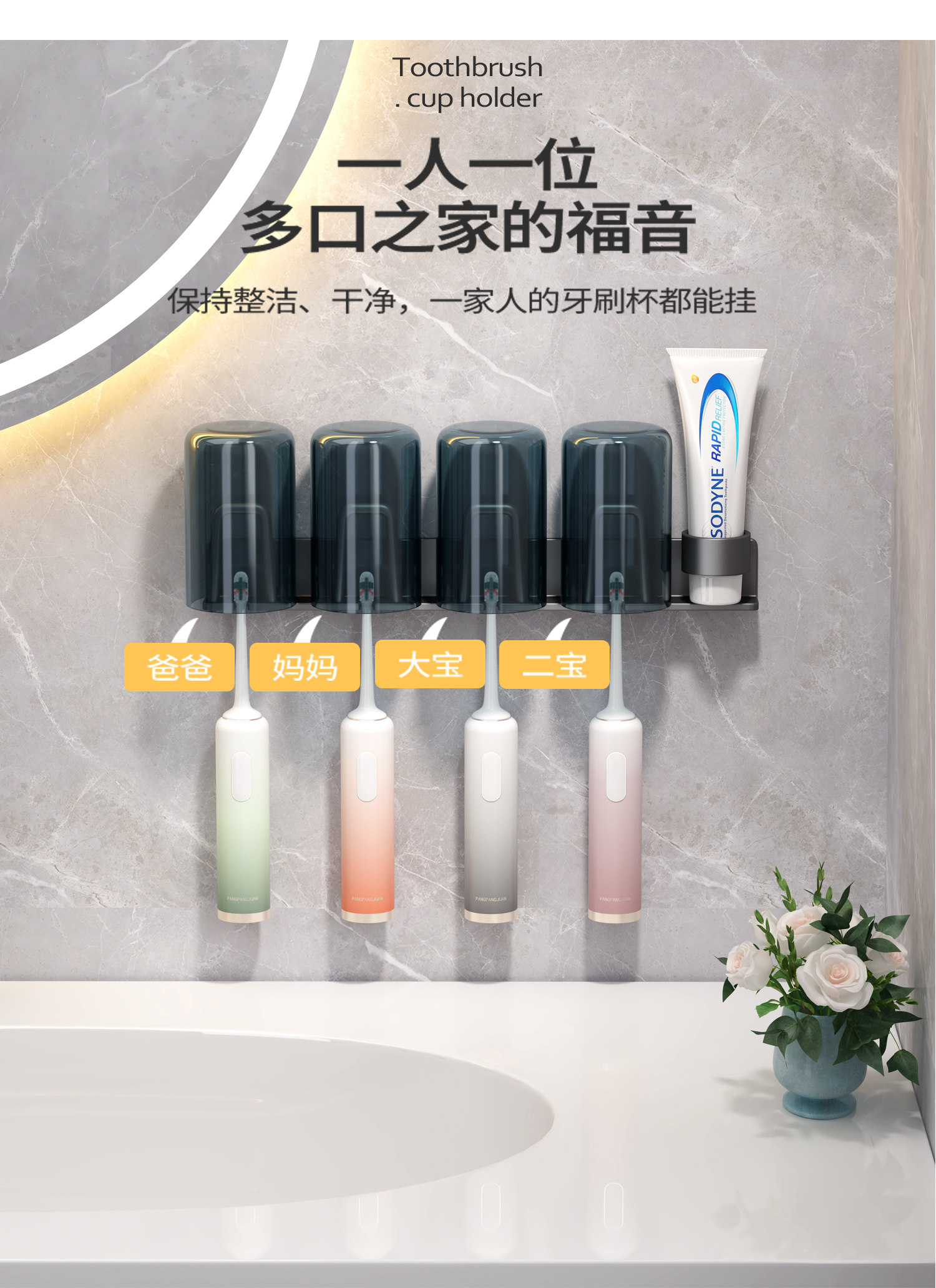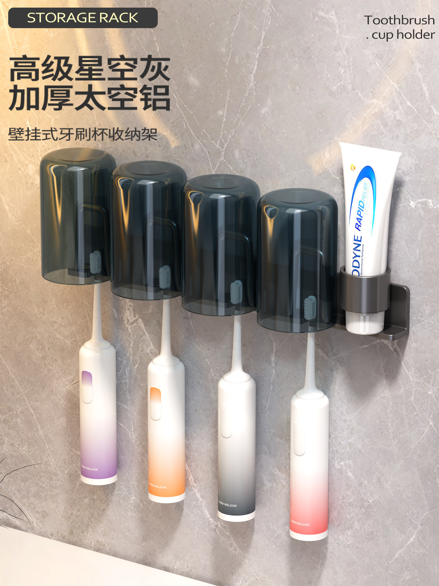 Toothbrush Holder, No-Drill Bathroom Toothbrush Rack for Electric Toothbrushes, Toothpaste, Mouthwash Cup, Hanging Rack, Dental Tool Holder