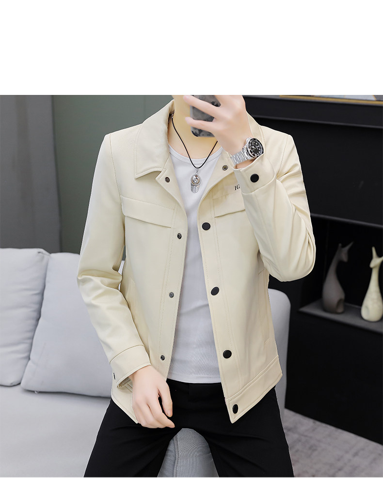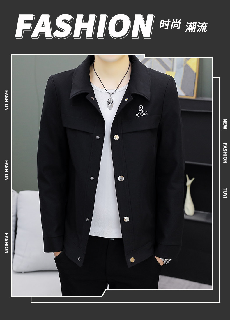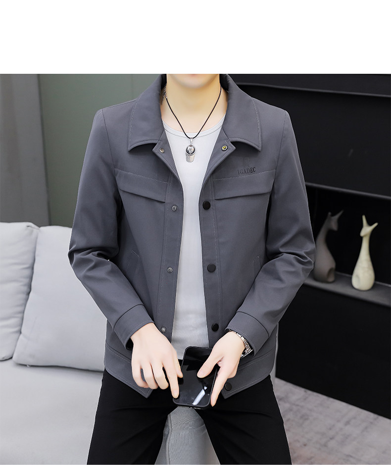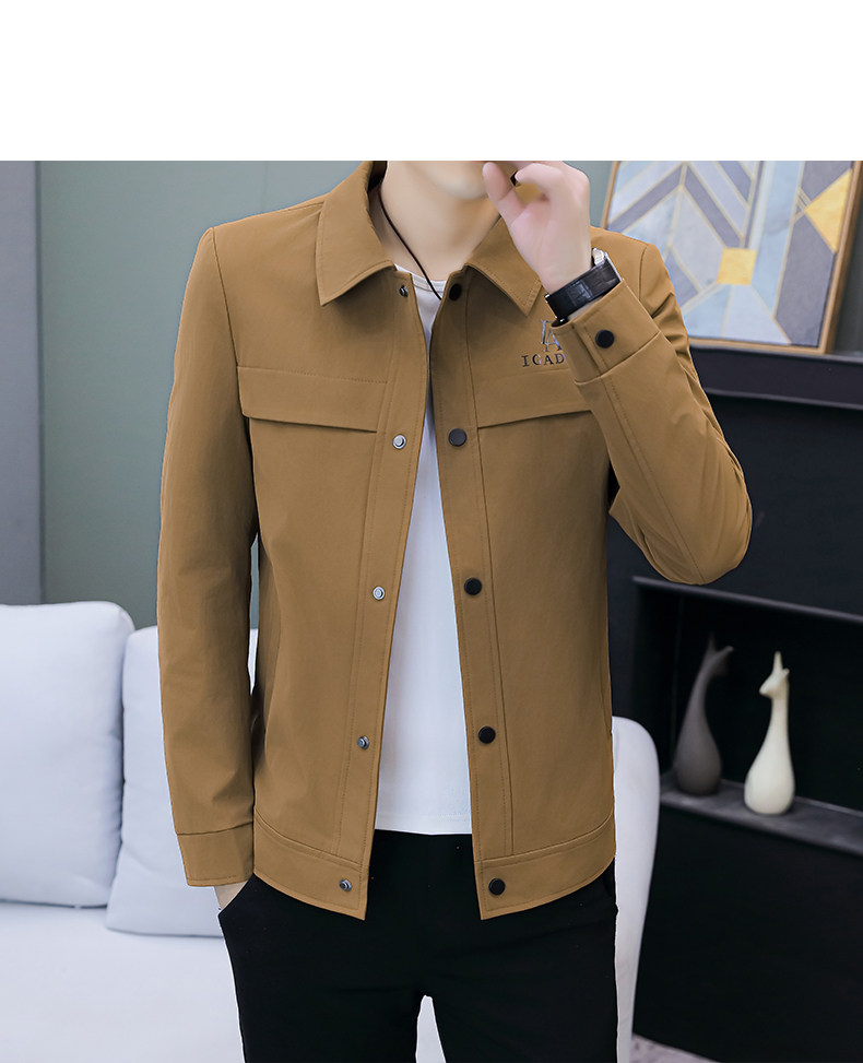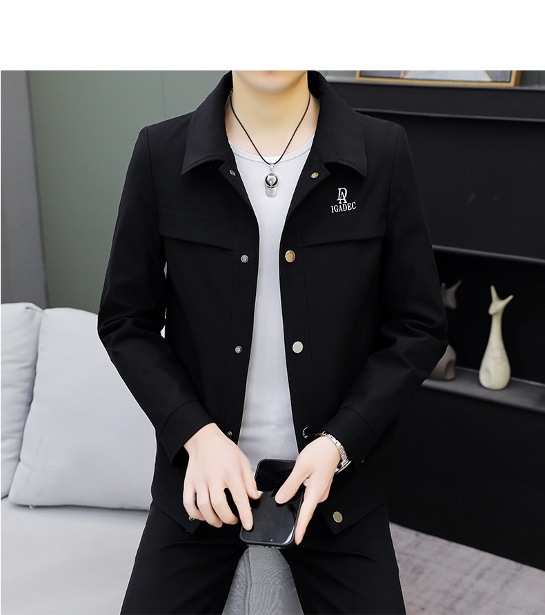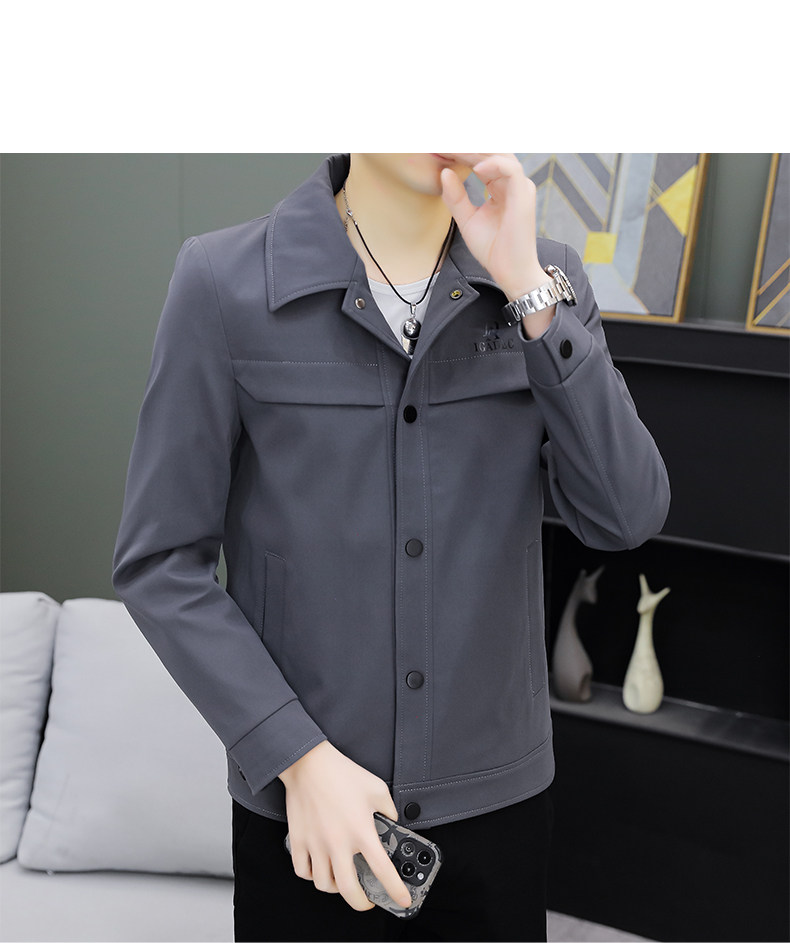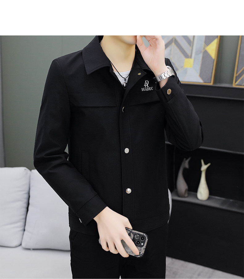 Youthful Solid Color Stylish Lapel Work Jacket Spring Men's Korean Style Trendy Casual Coat Fashionable High-End Top