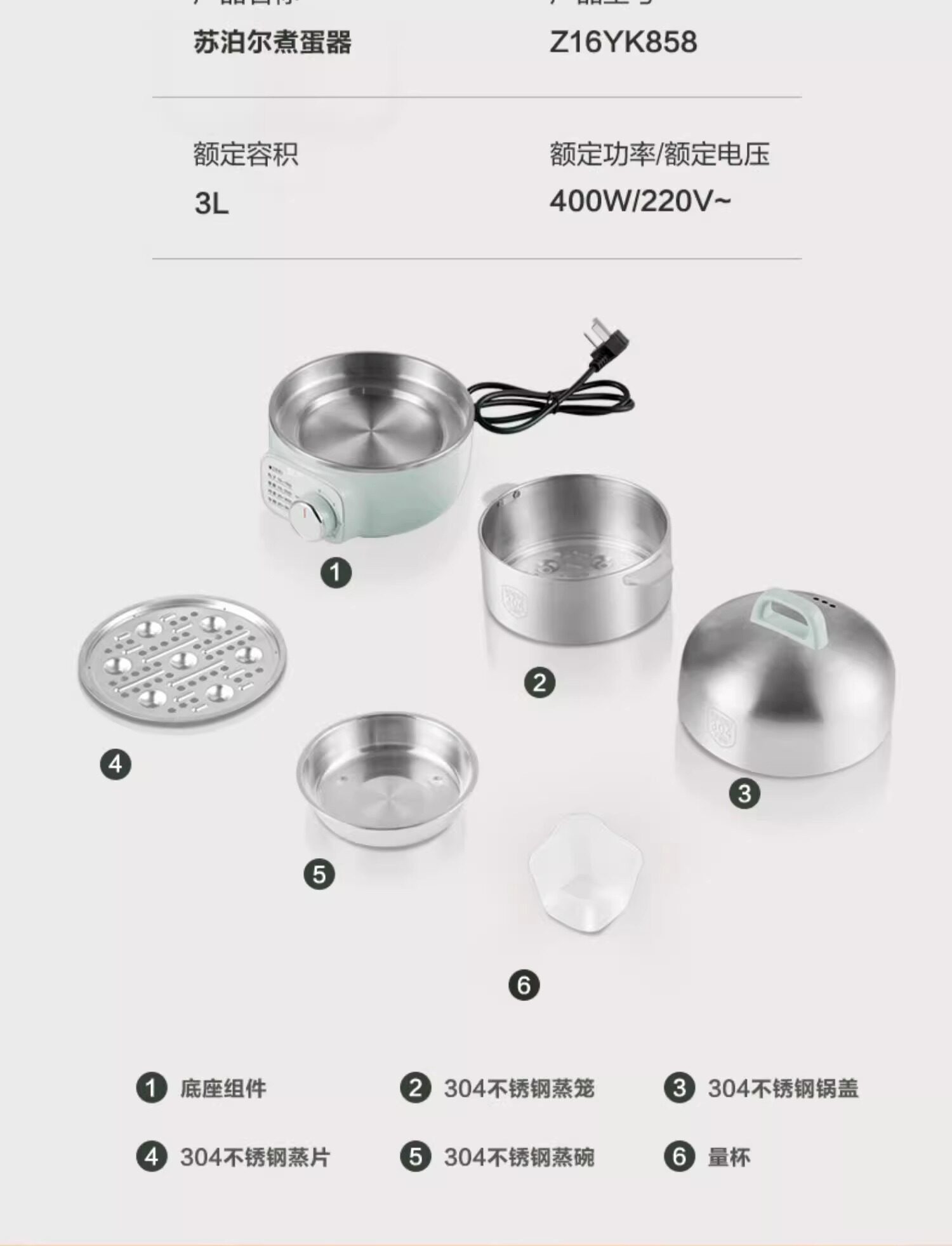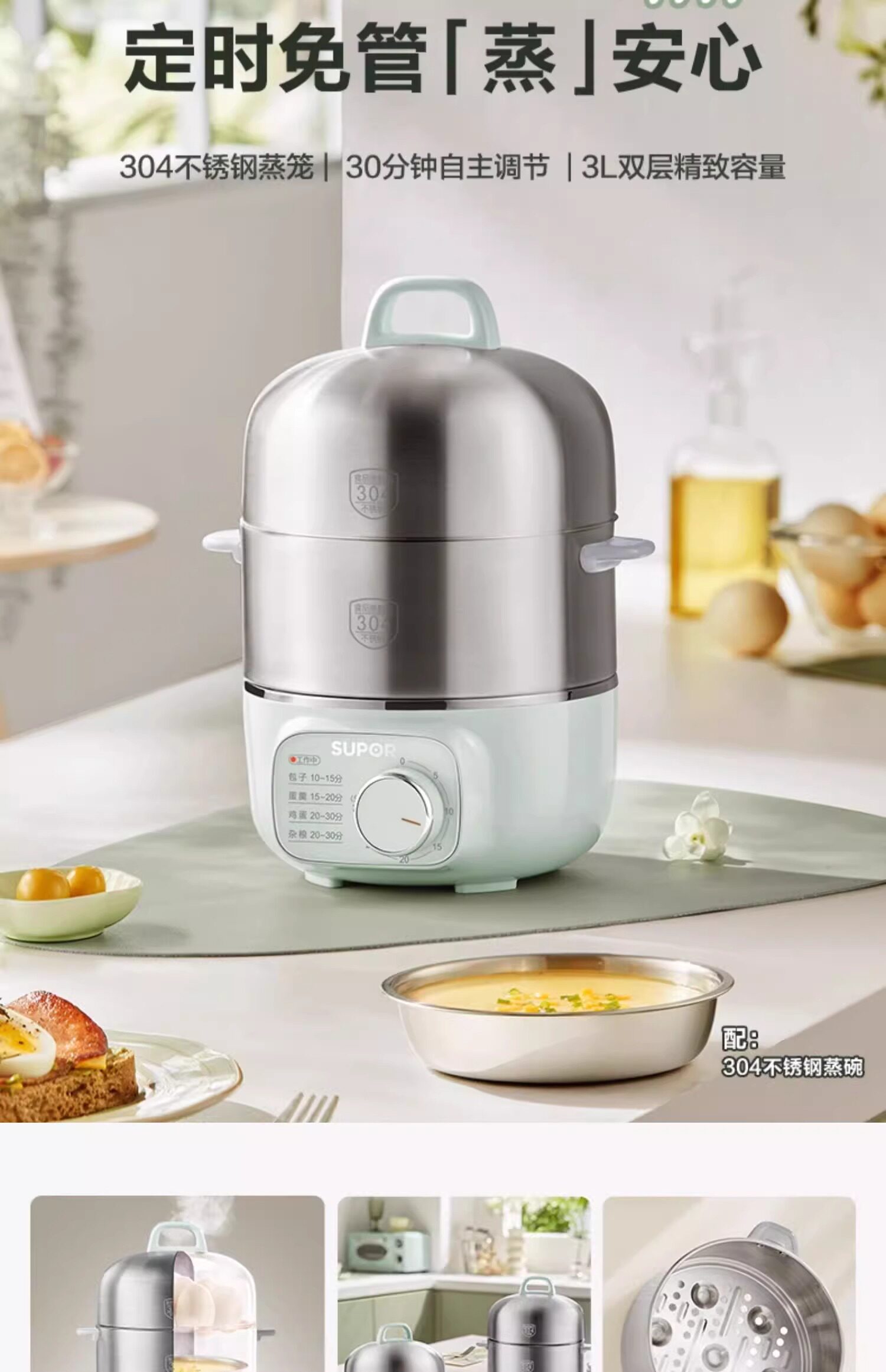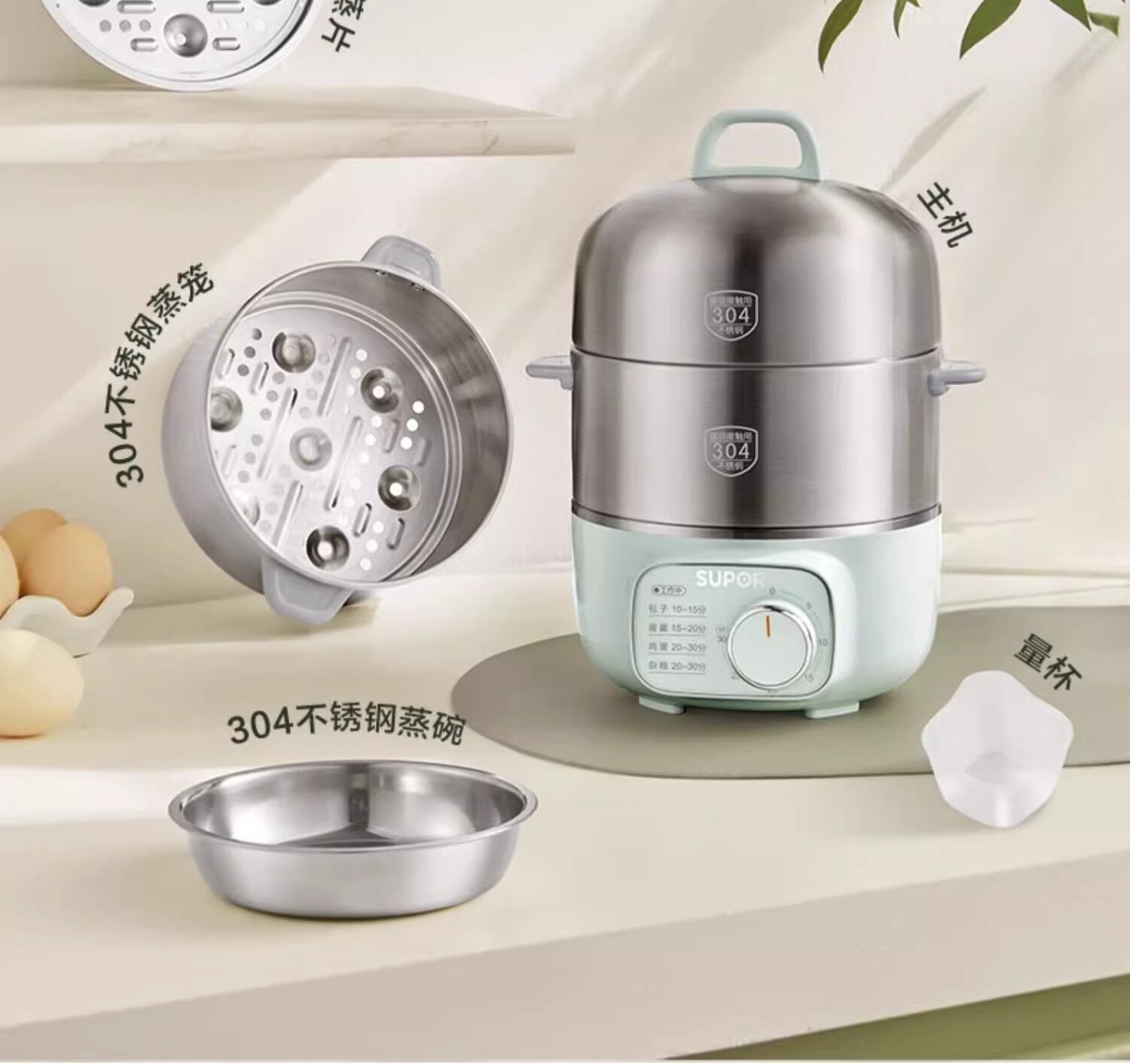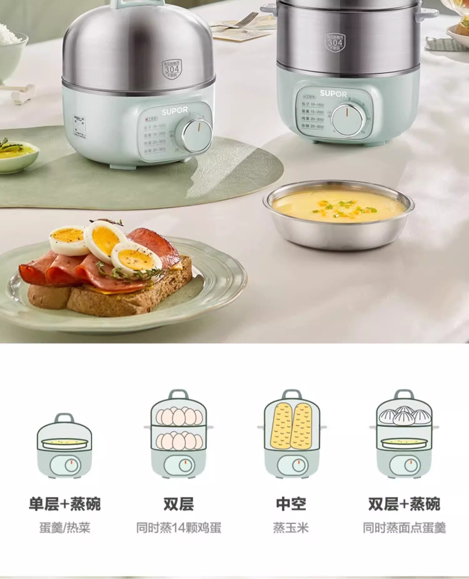 Supor Egg Steamer and Cooker, Small Household Stainless Steel Egg Cooking Device, Multi-Functional Breakfast Cooking Machine for One Person