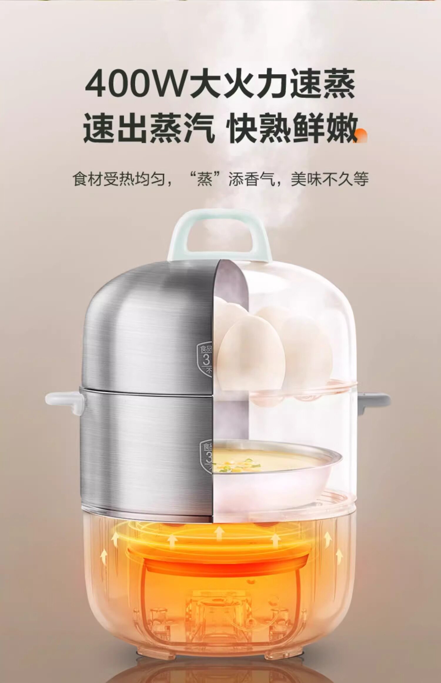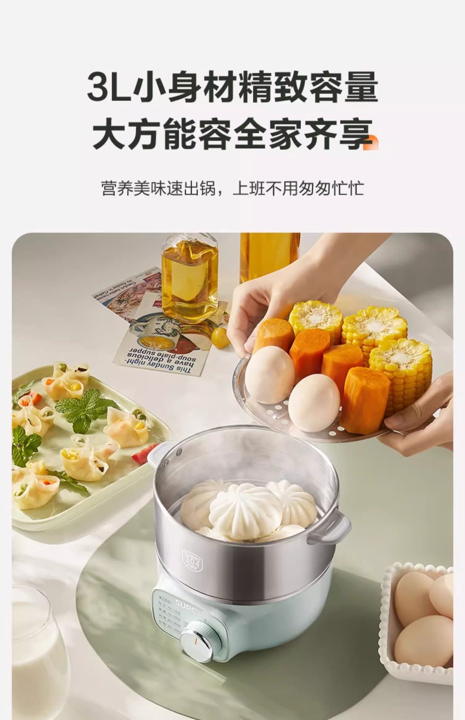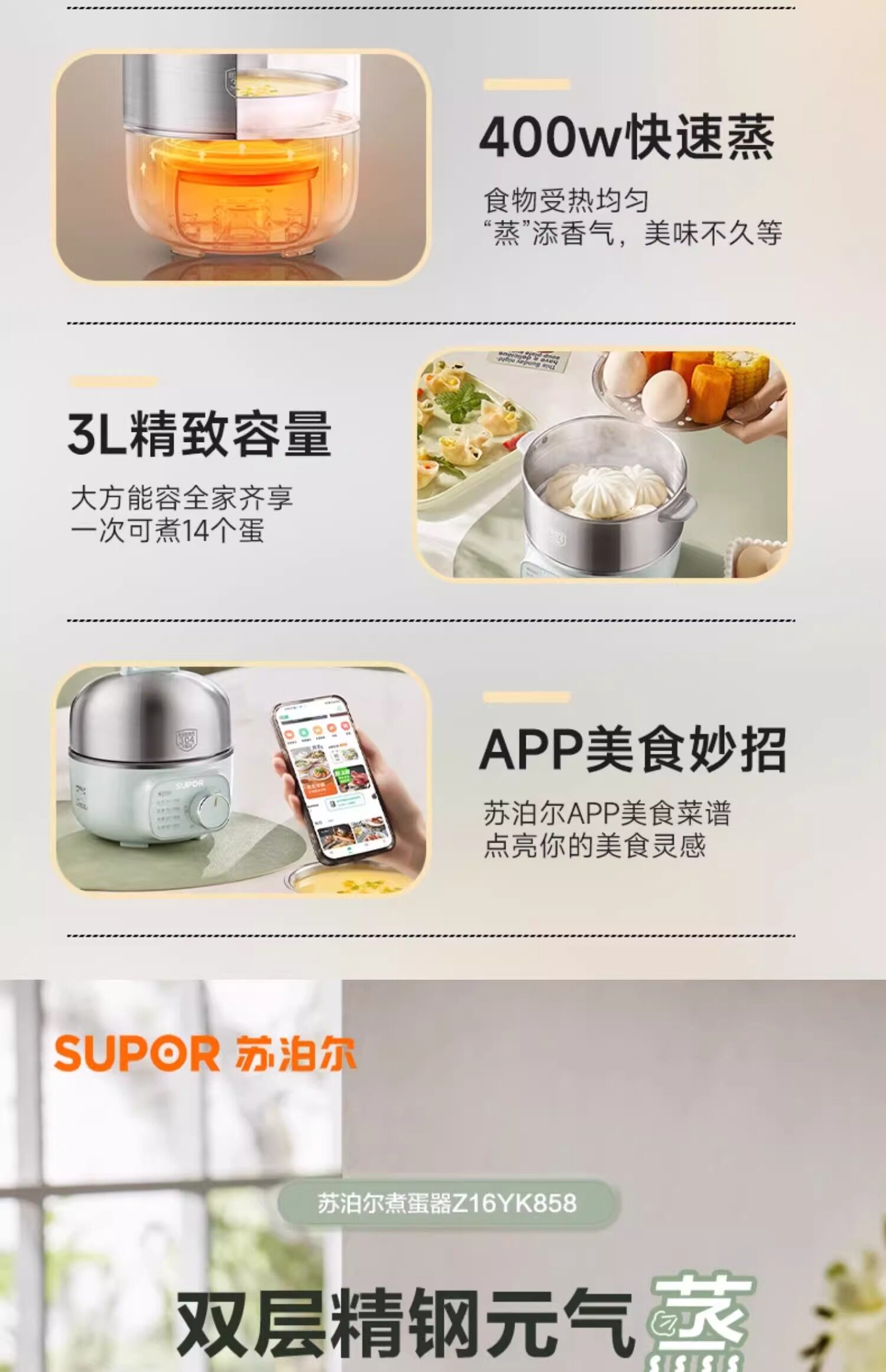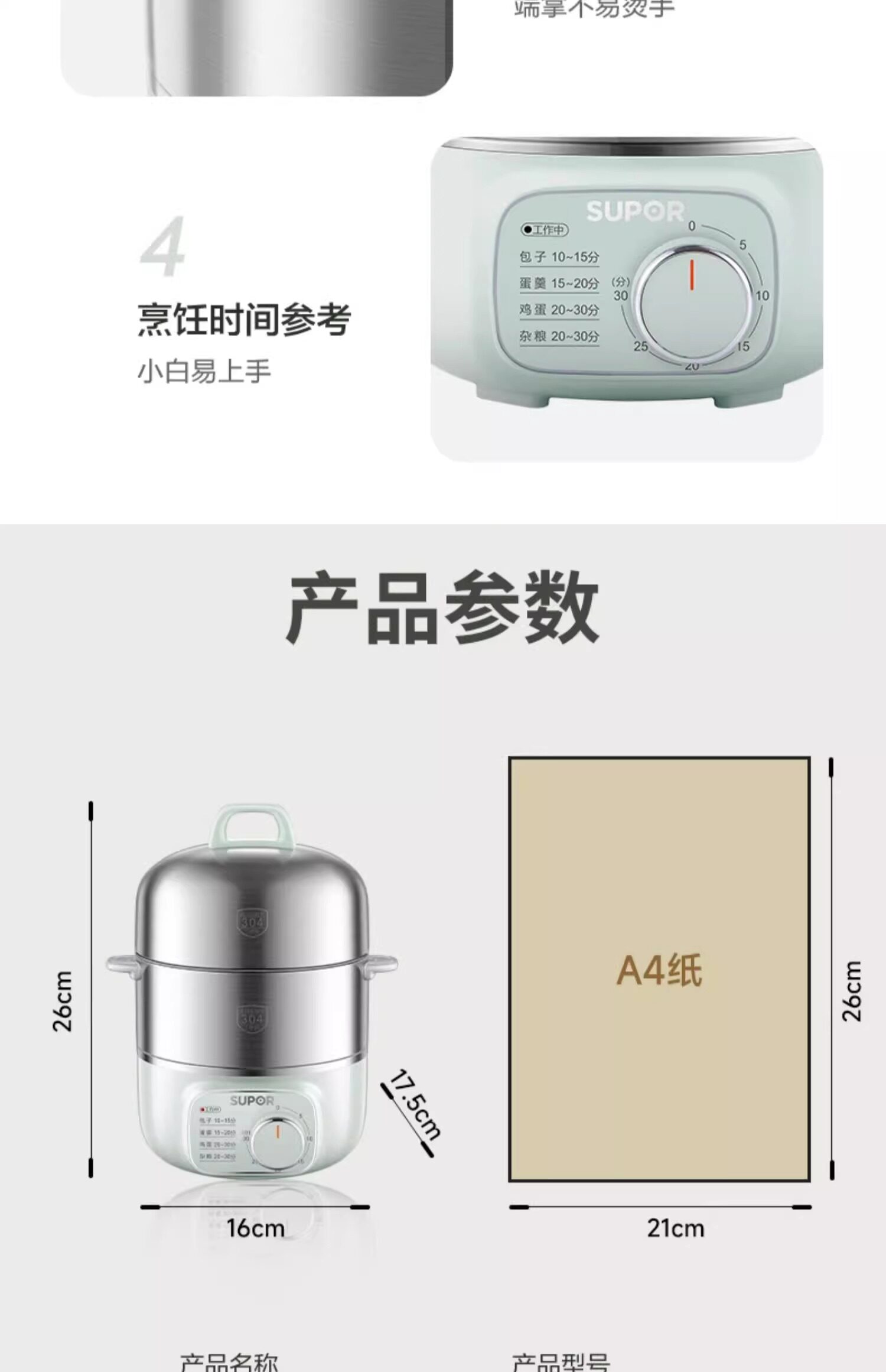 Supor Egg Steamer and Cooker, Small Household Stainless Steel Egg Cooking Device, Multi-Functional Breakfast Cooking Machine for One Person