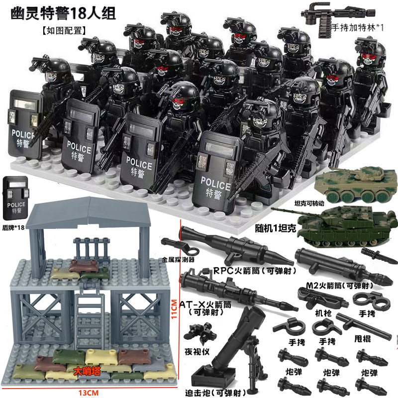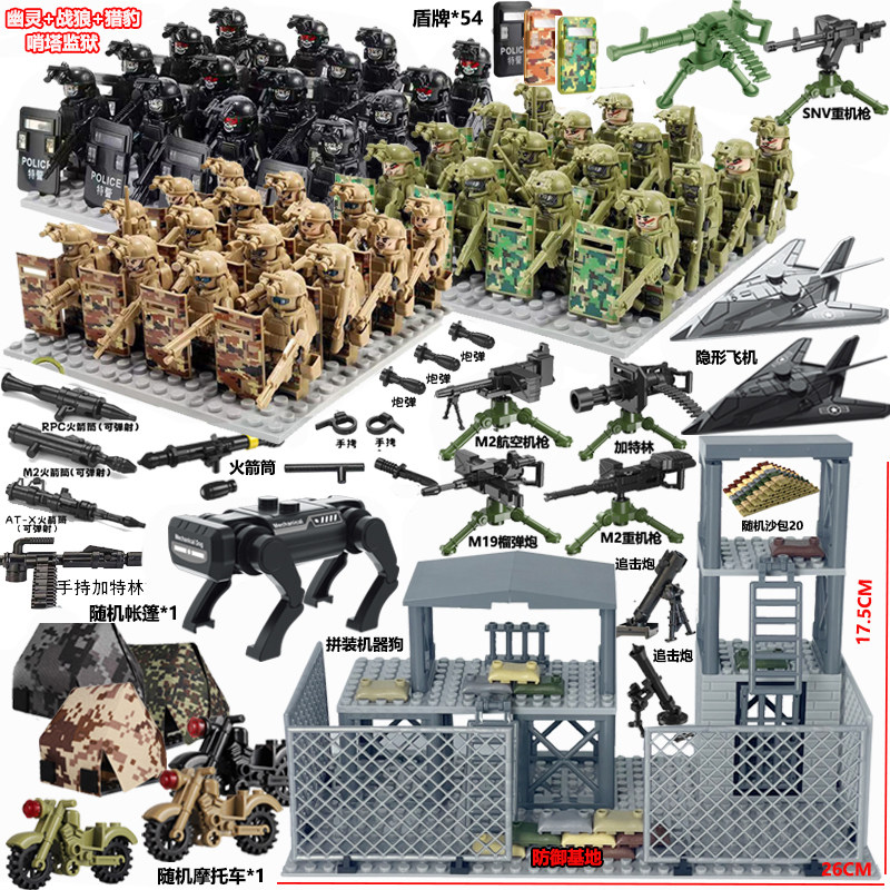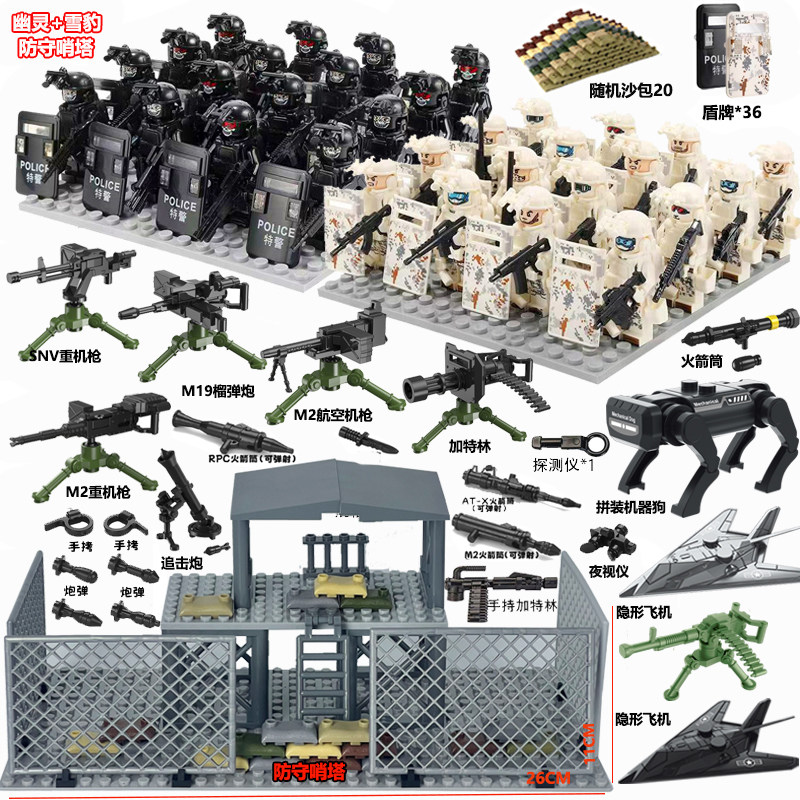 Color Classification Ghost Swat + Civilians + Robot Dog Aircraft Turret,Ghost Swat + Cheetah Force + Robot Dog Airplane Watchtower,Ghost Swat + Wolf Warrior Unit + Robot Dog Airplane Sentry,Ghost Swat + Snow Leopard Unit + Robot Dog Airplane Sentry,Wolf Warrior Unit + Cheetah Unit + Robot Dog Airplane Sentry,Ocean Guardian + Cheetah + Robot Dog Aircraft Watchtower,Commoner + Full Set of Weapons + Tank Turret Weapon,Ghost Swat + Full Set of Equipment + Tank Turret Weapons,Cheetah Unit + Full Gear Set + Tank Turret Weapon,Snow Leopard Troops + Full Set of Equipment + Tank Turret Weapons,Wolf Warrior Unit + Full Gear Set + Tank Turret Weapon,Ocean Guardians + Full Set of Equipment,Ghost + Cheetah + Wolf Warrior + Robot Dog Airplane Scene,Ghost + Snow Leopard + Ocean + Robot Dog Airplane Scene,Special Forces 90 Battle + Robot Dog Airplane