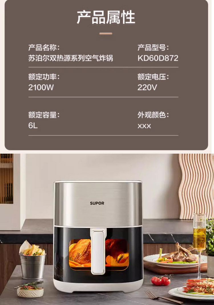 Supor Air Fryer Electric Household Large-Capacity Visible Multifunctional Oven All-In-One 2025 New Model Official Genuine Product