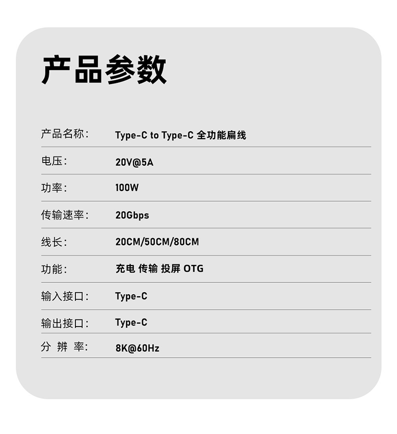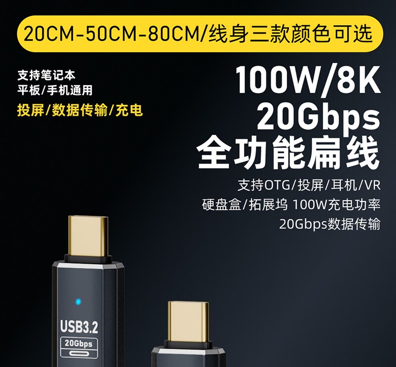Color Classification [Black]Type-C Full-Function Soft Flat Cable★100W Power Supply★20Gbps Rate★8K Video Transmission_0.2m,[Yellow]Type-C Full-Function Soft Flat Cable★100W Power Supply★20Gbps Rate★8K Video Transmission_0.2m,[Green]Type-C Full-Function Soft Flat Cable★100W Power Supply★20Gbps Rate★8K Video Transmission_0.2m,[Black]Type-C Full-Function Soft Flat Cable★100W Power Supply★20Gbps Rate★8K Video Transmission_0.5m,[Yellow]Type-C Full-Function Soft Flat Cable★100W Power Supply★20Gbps Rate★8K Video Transmission_0.5m,[Green]Type-C Full-Function Soft Flat Cable★100W Power Supply★20Gbps Rate★8K Video Transmission_0.5m,[Black]Type-C Full-Function Soft Flat Cable★100W Power Supply★20Gbps Rate★8K Video Transmission_0.8m,[Yellow]Type-C Full-Function Soft Flat Cable★100W Power Supply★20Gbps Rate★8K Video Transmission_0.8m,[Green]Type-C Full-Function Soft Flat Cable★100W Power Supply★20Gbps Rate★8K Video Transmission_0.8m