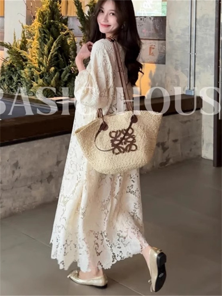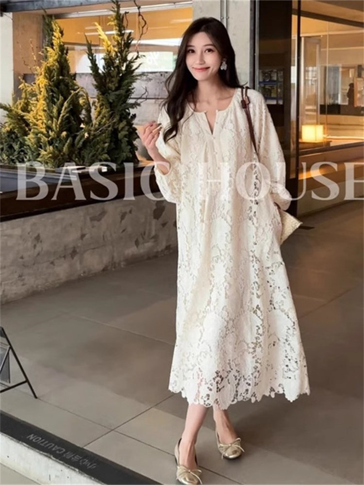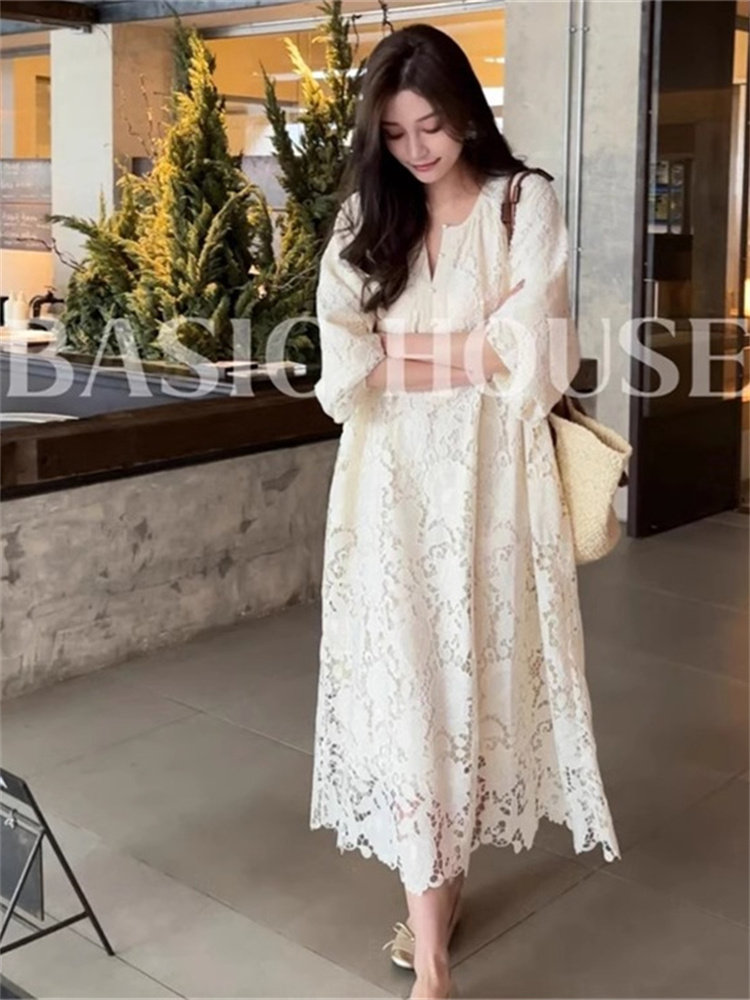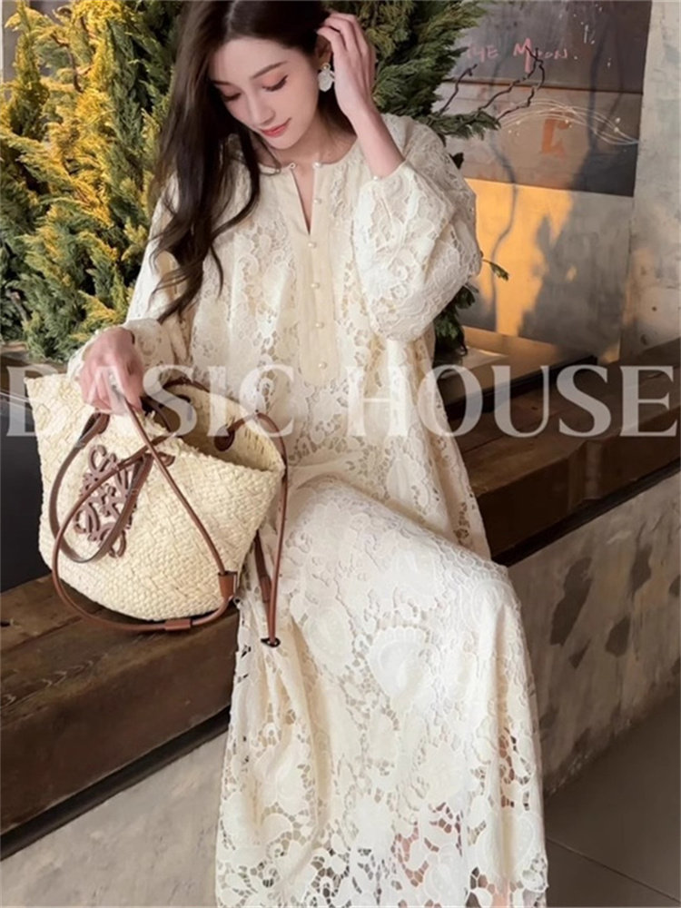 French cold style lace dress for women 2025 winter temperament new long skirt this year's popular beautiful skirt trend