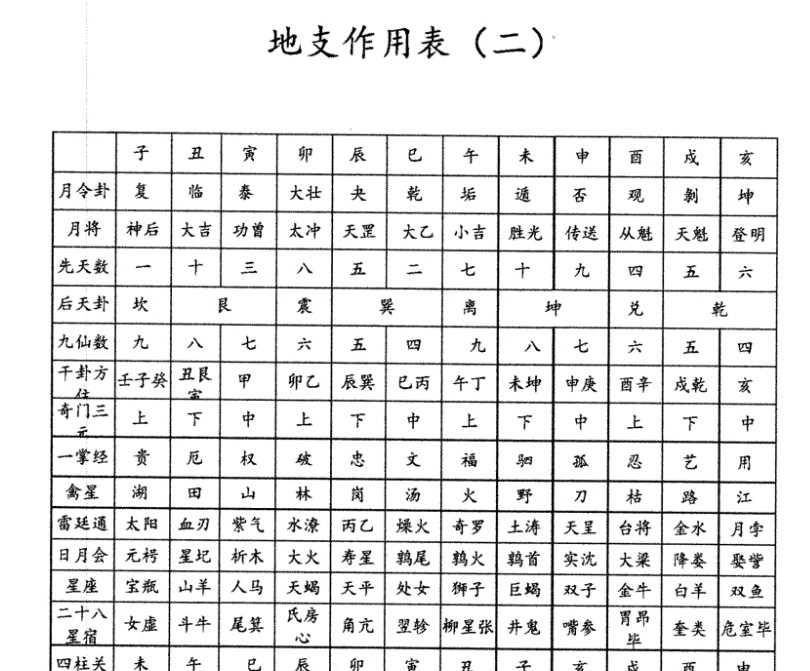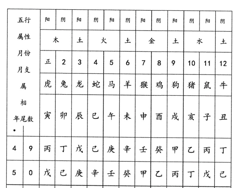Color Classification Eight-Character Table