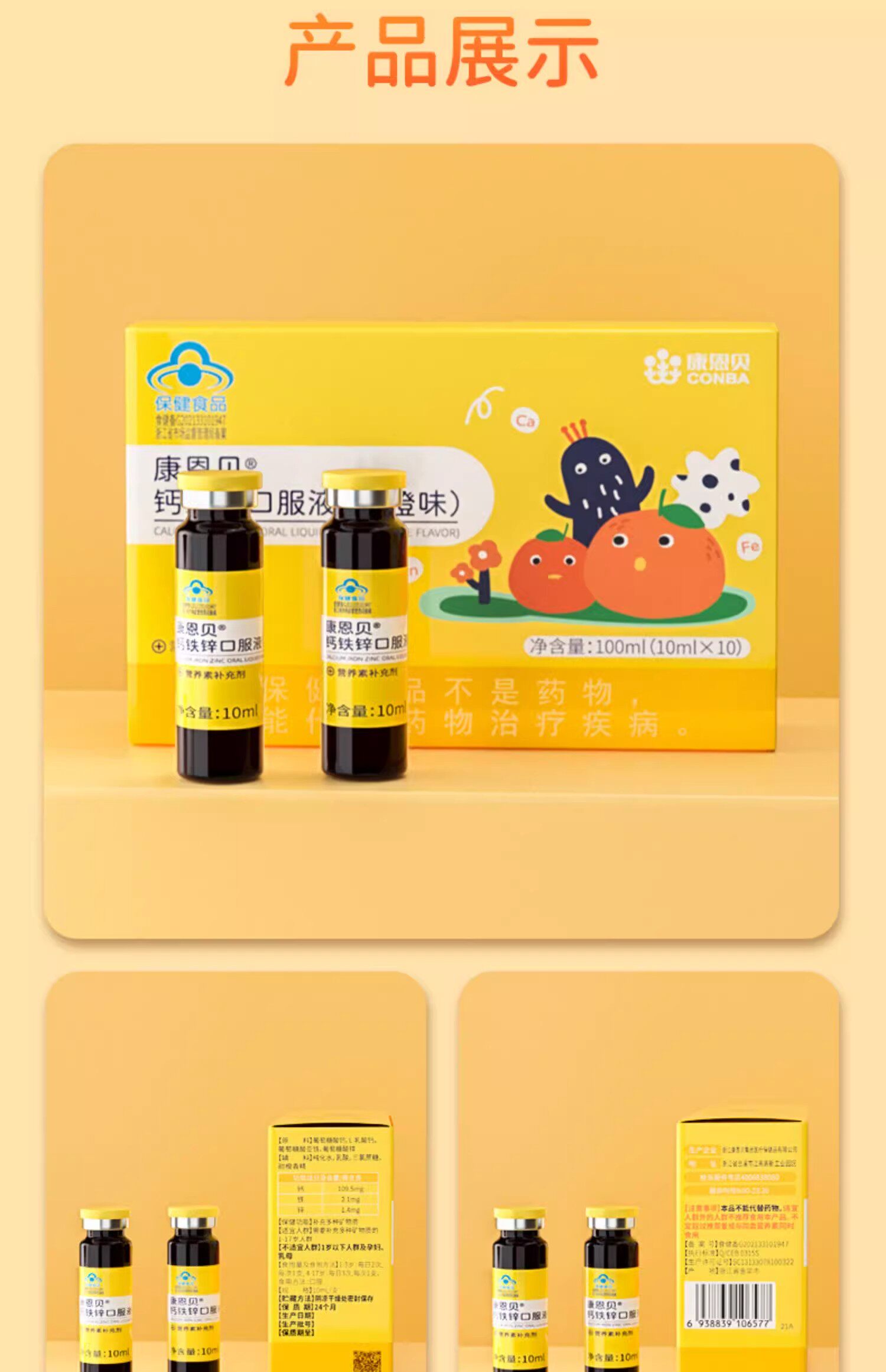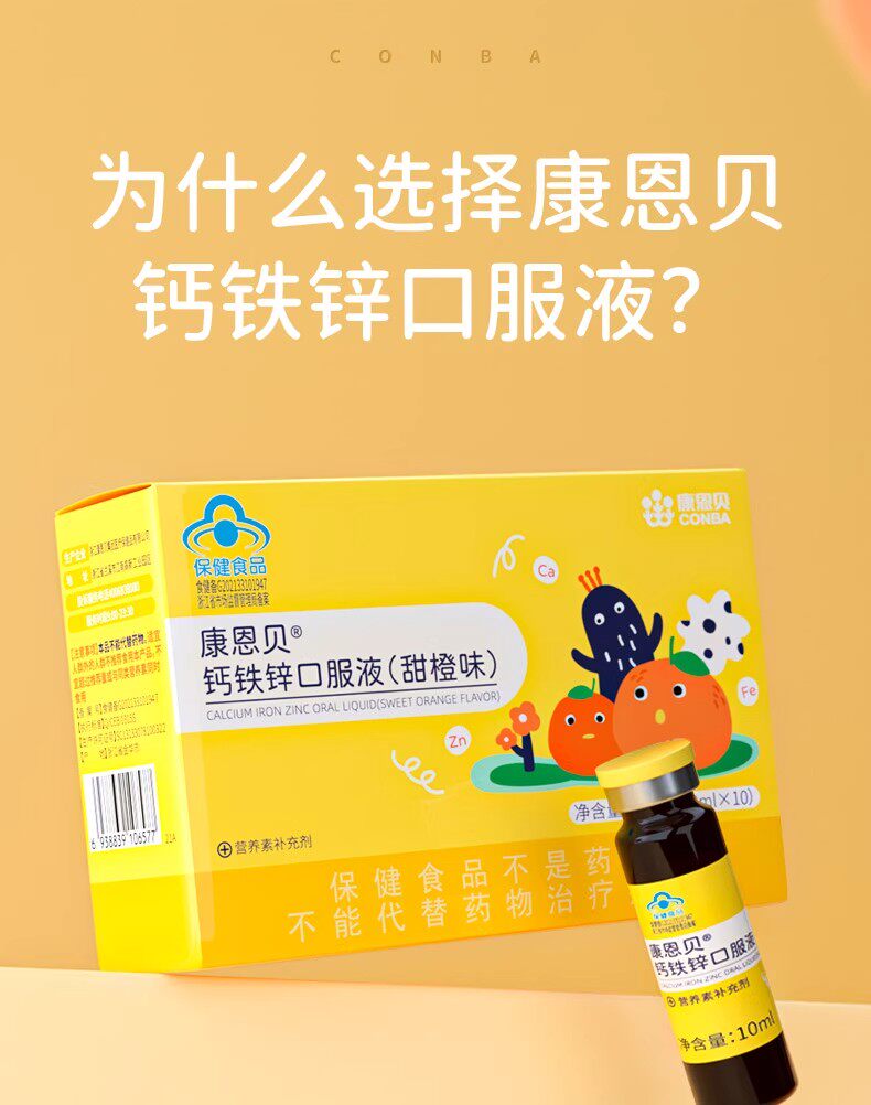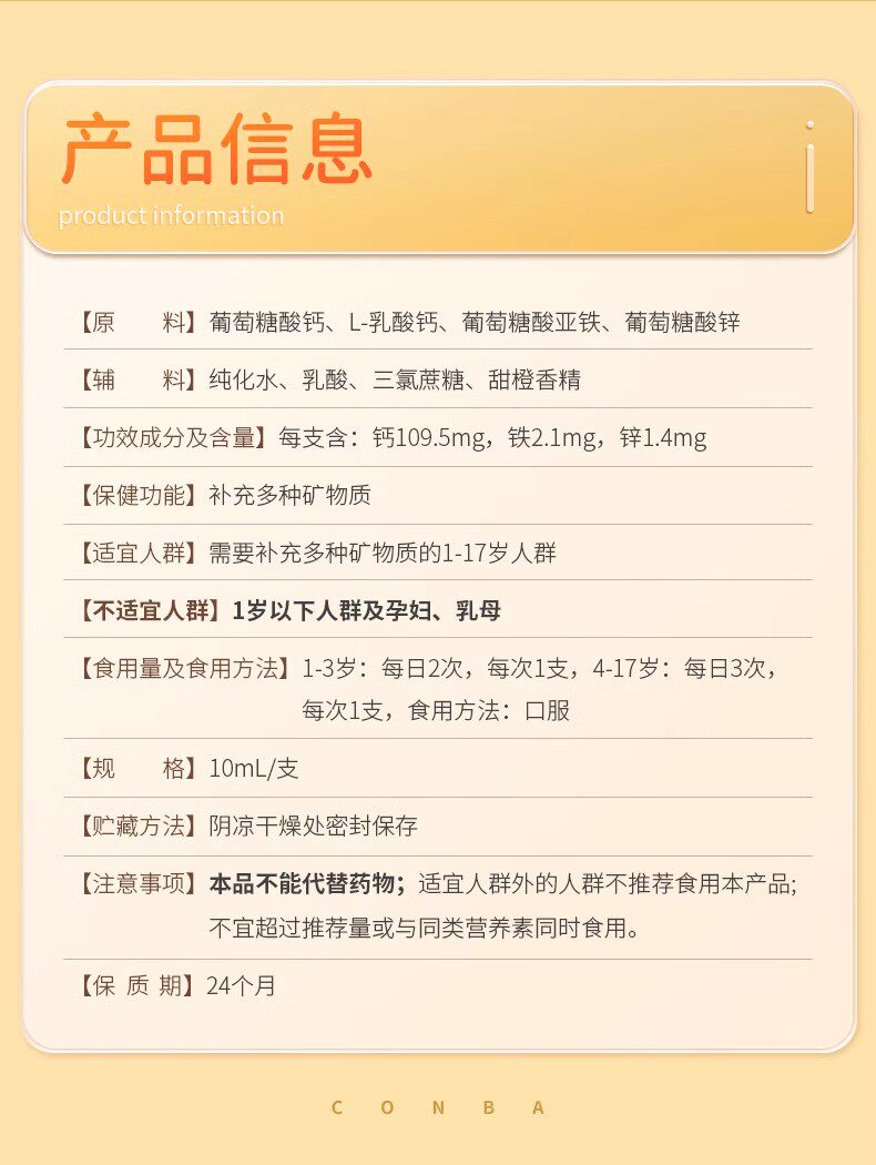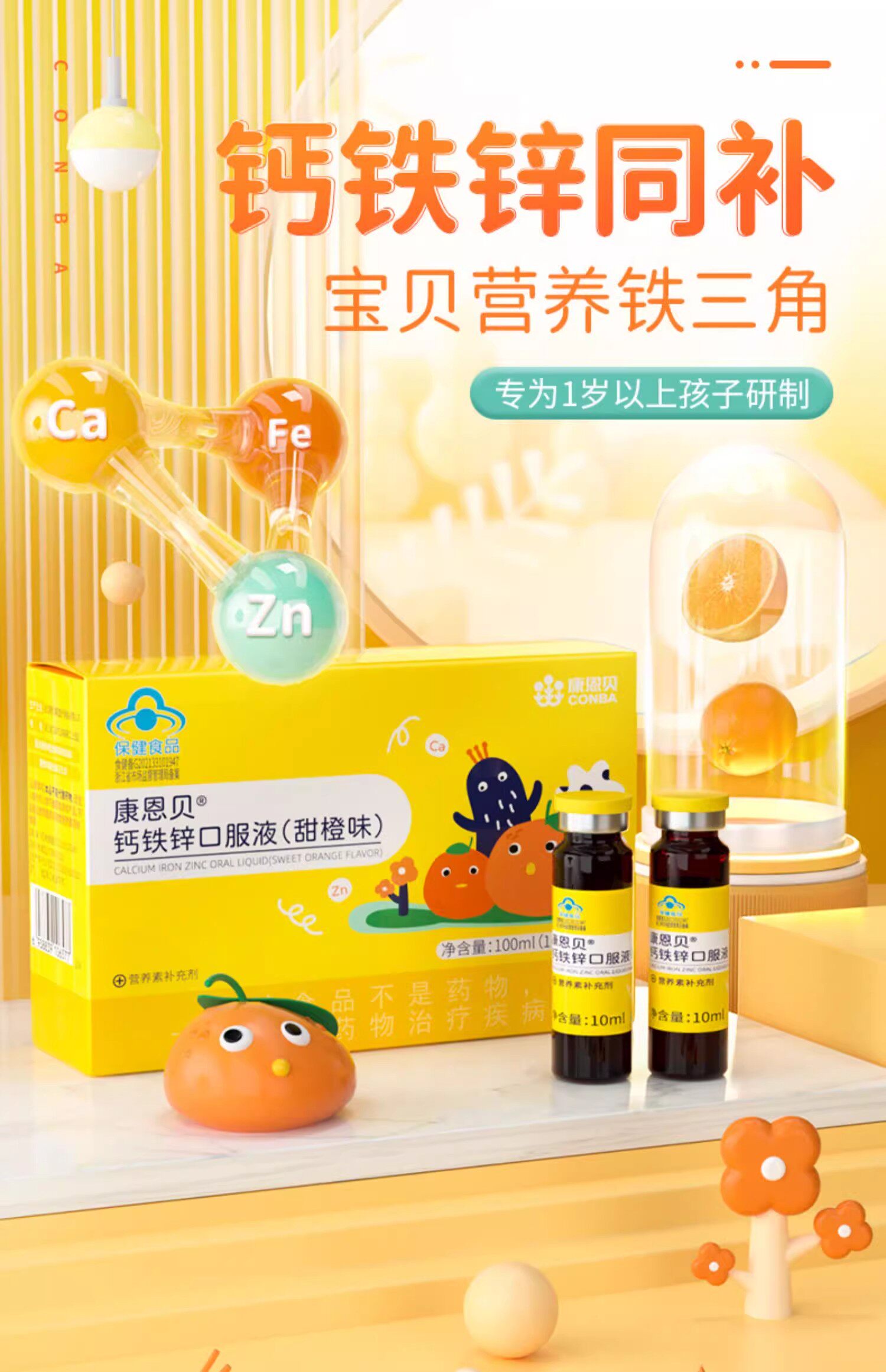 Kangenbei Calcium Iron Zinc Oral Solution for Children and Adolescents, Calcium Gluconate Zinc Sweet Orange Oral Solution, Genuine Product