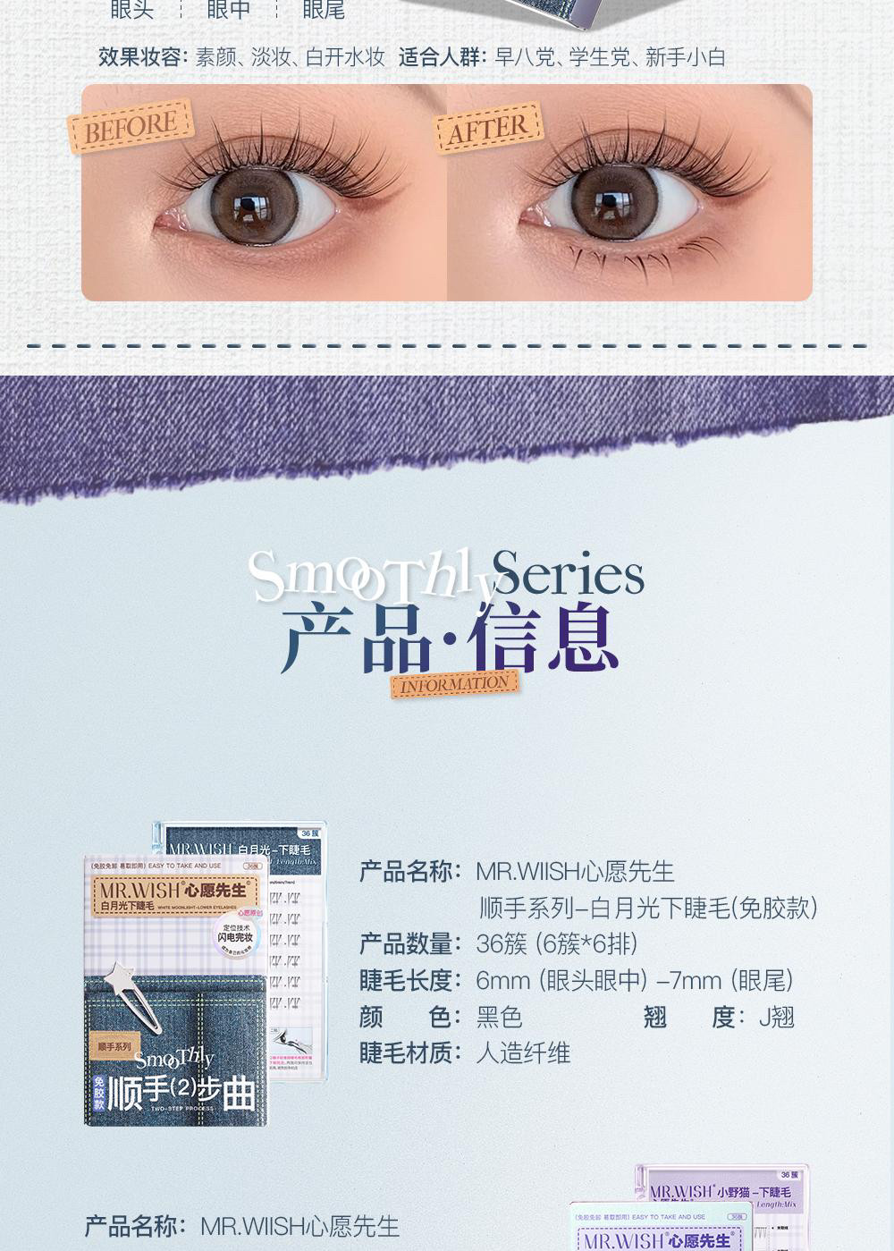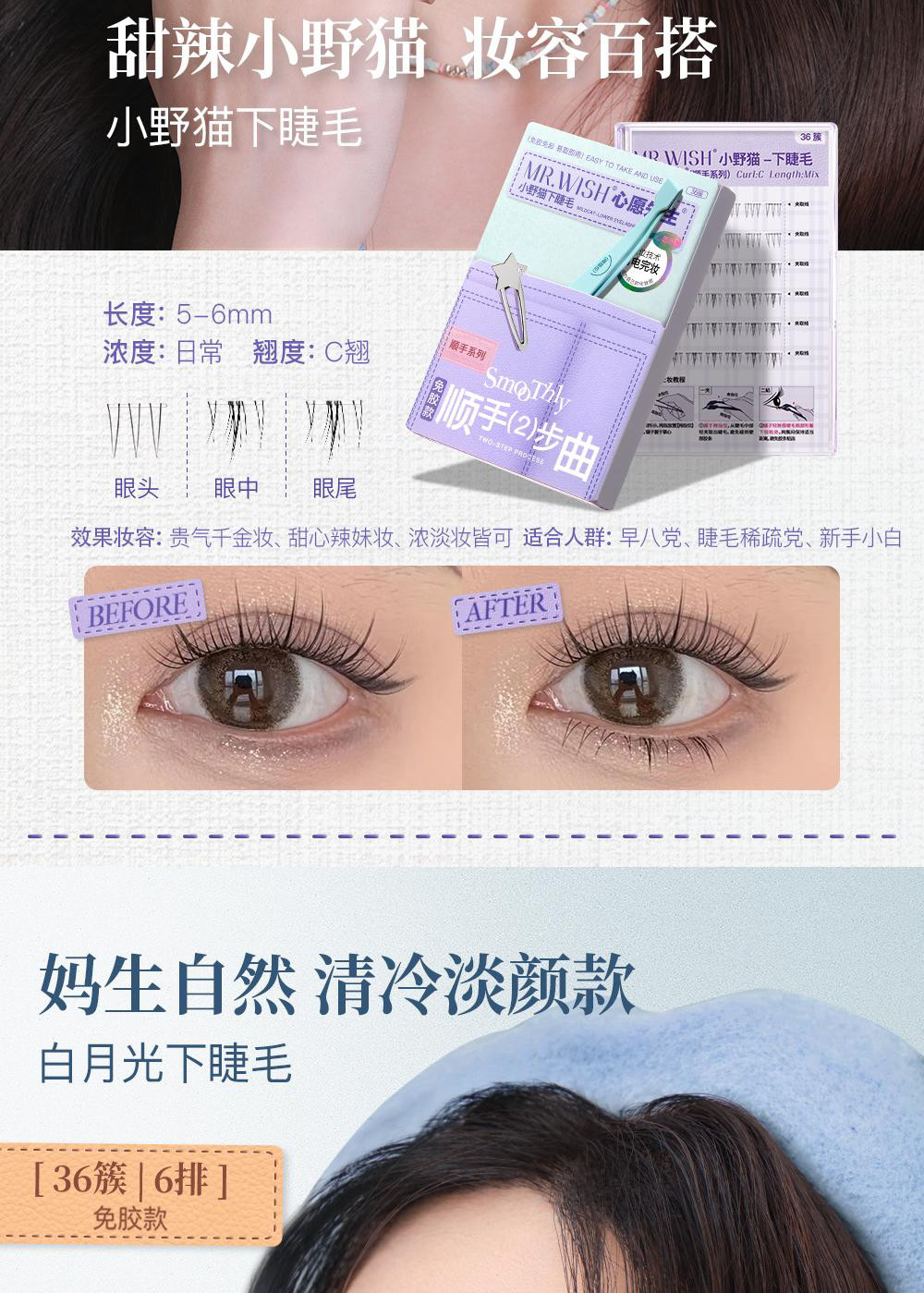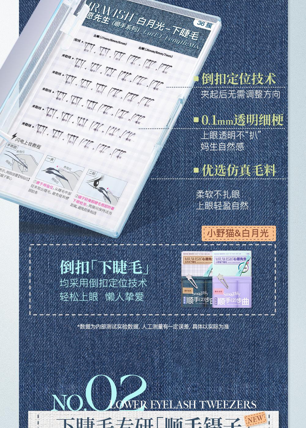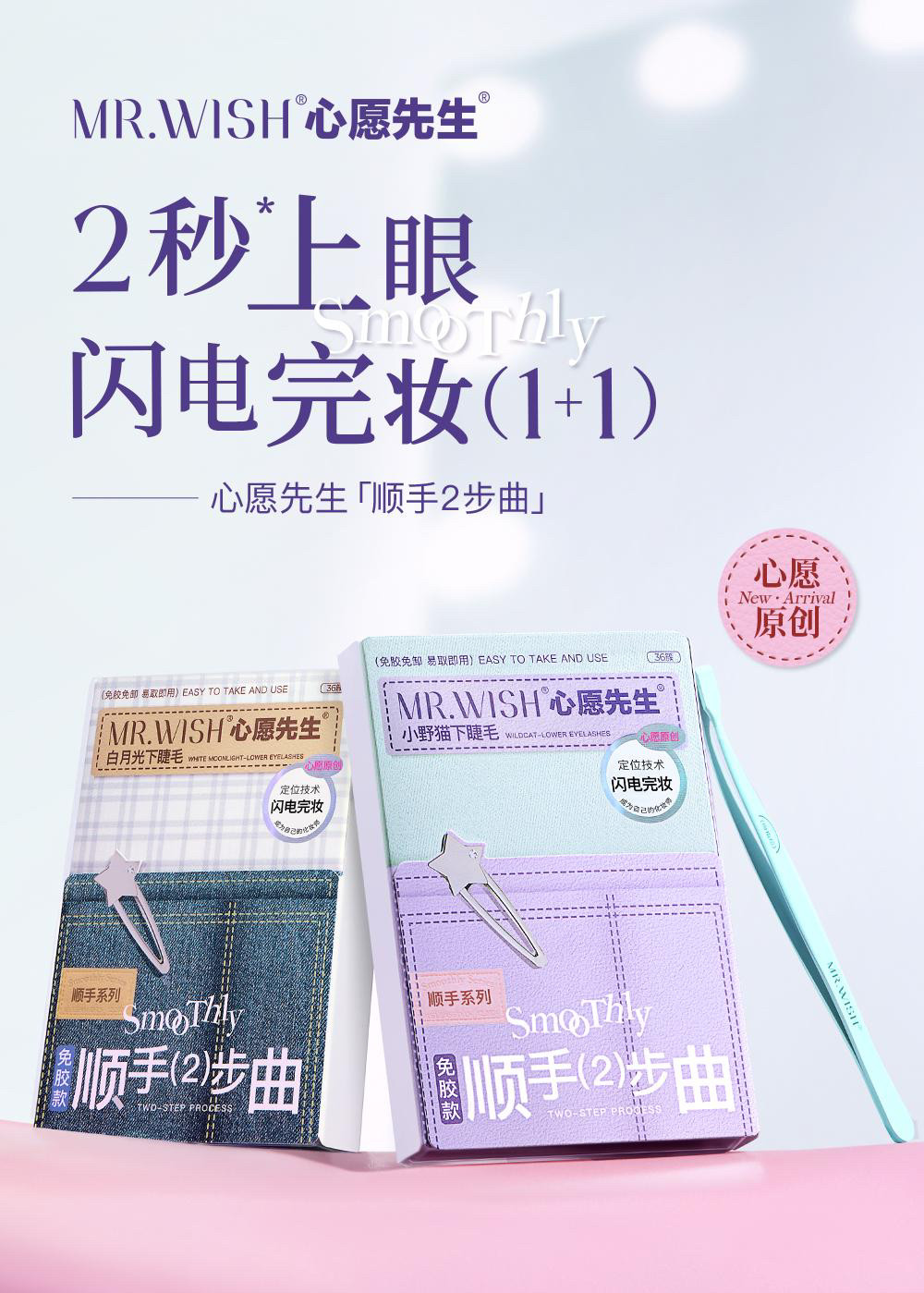 New Product: Three-Second Application for Lower Eyelashes, Breaking the Traditional Method of Applying Them. Mr. Wish's Glue-Free Lower Eyelashes, Stemless and Formaldehyde-Free
