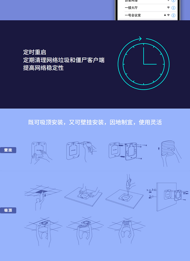 TP-LINK TL-AP453C-POE villa shopping mall hotel wifi coverage ceiling ap 450Mbps rate