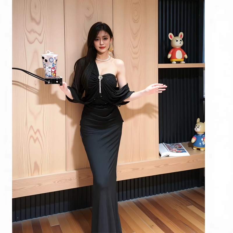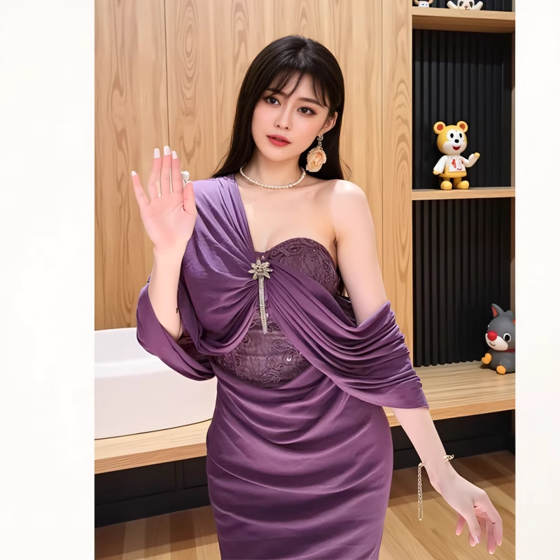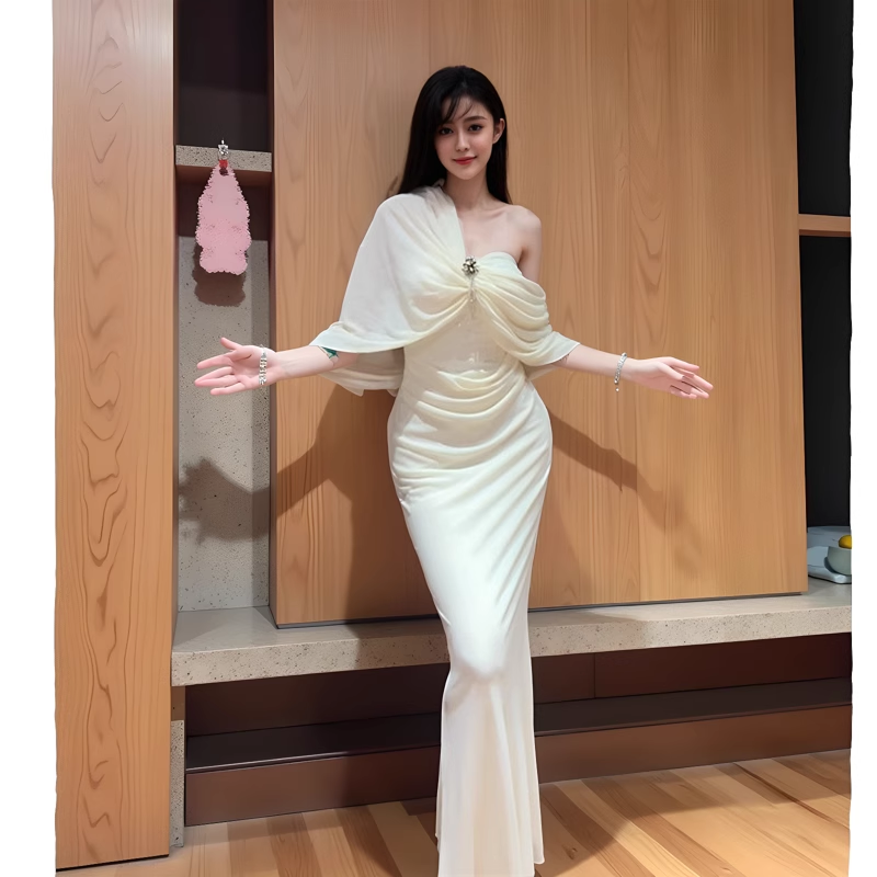 French style pure desire sexy slightly fat mm large size waist slimming one-line dress new design slim temperament long skirt