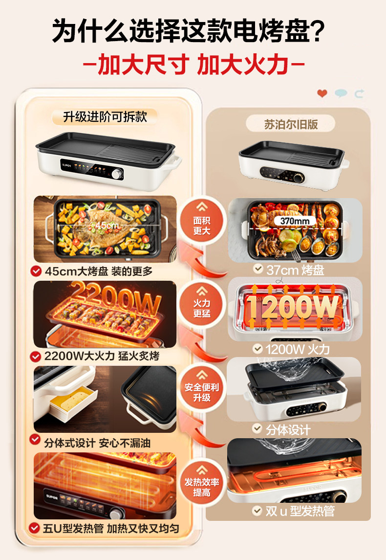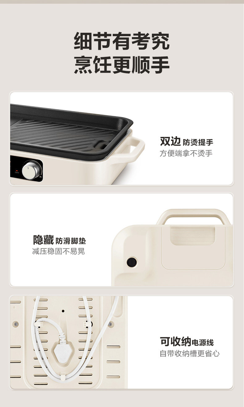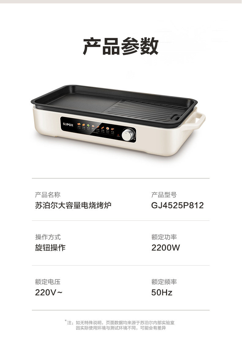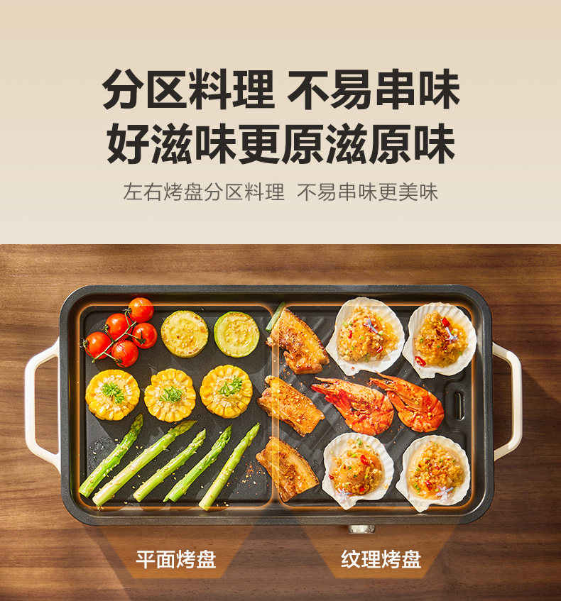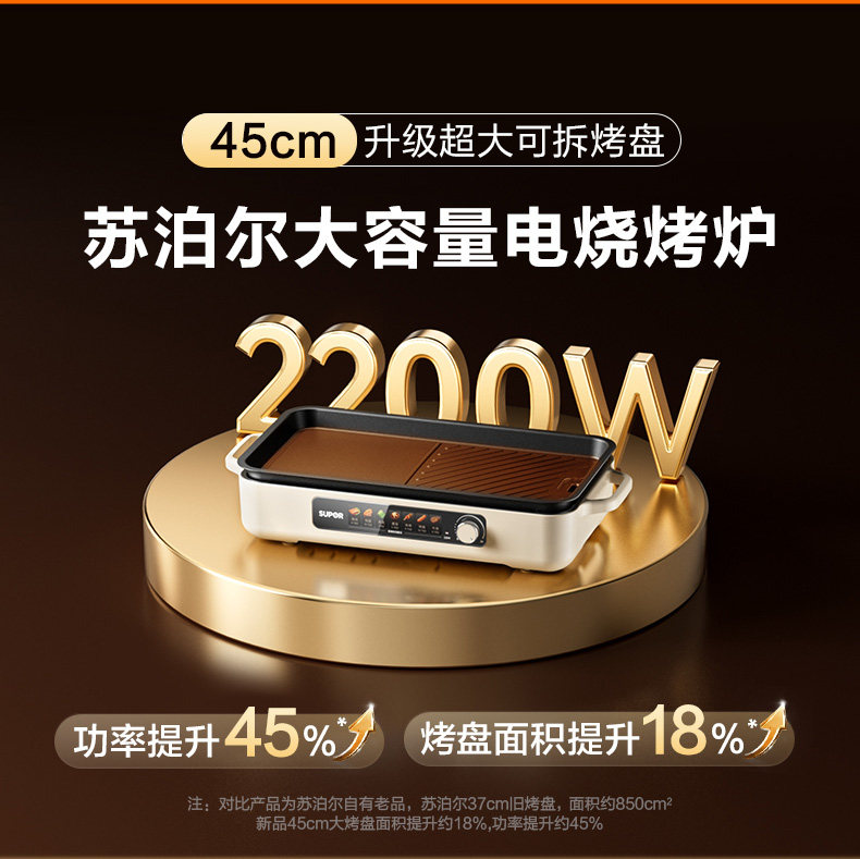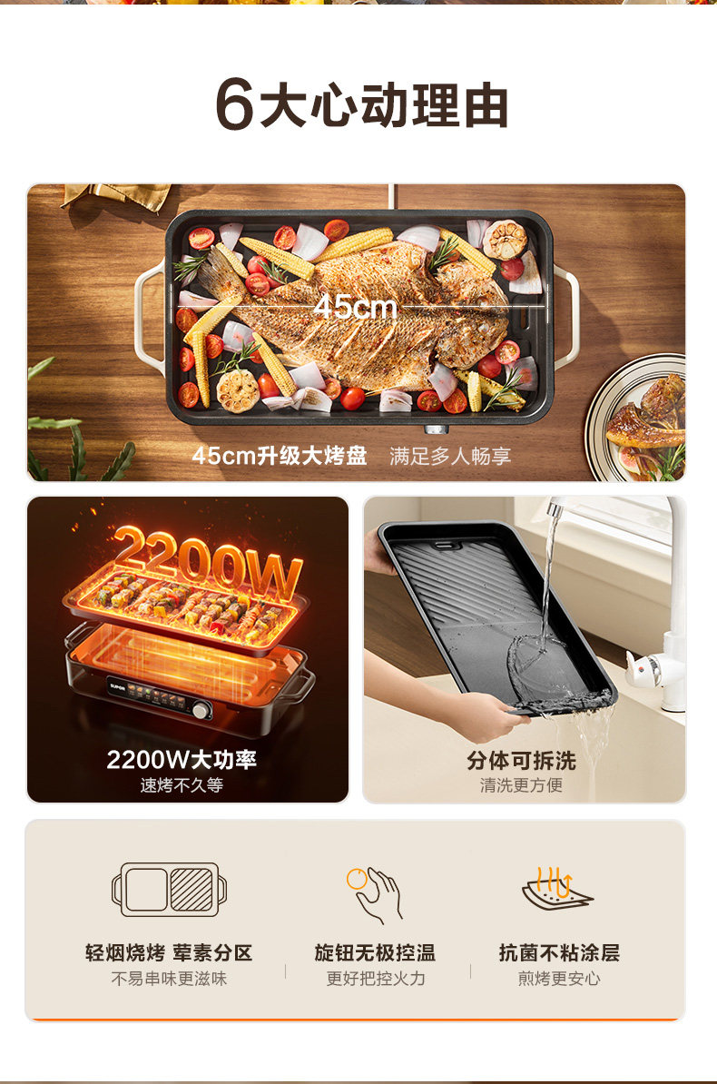 Supor Electric Grill Pan for Home Use, Non-Stick Electric Barbecue Grill, Kebab Machine, Indoor Low-Smoke Electric Grill Pot for Family Use