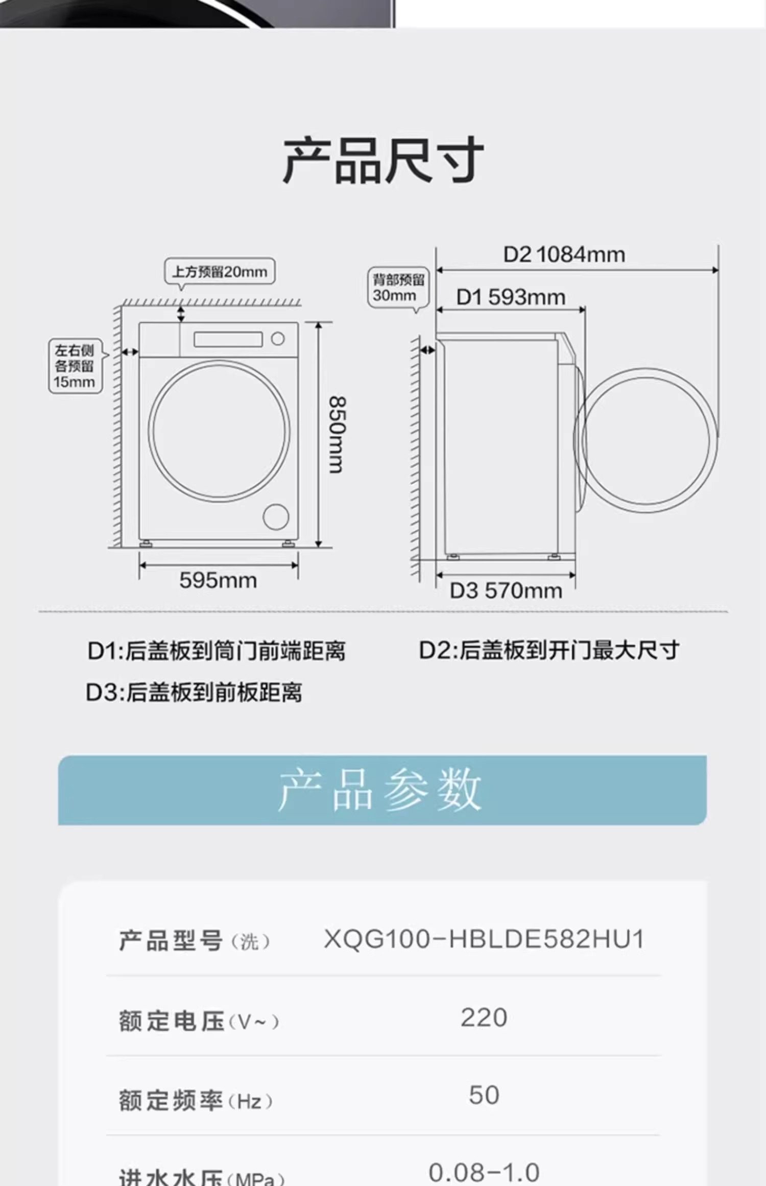 Haier/Haier Xqg100-Hblde582Hu1 Fully Automatic Direct Drive Ultra-Thin 10kg Washing and Drying Machine 582