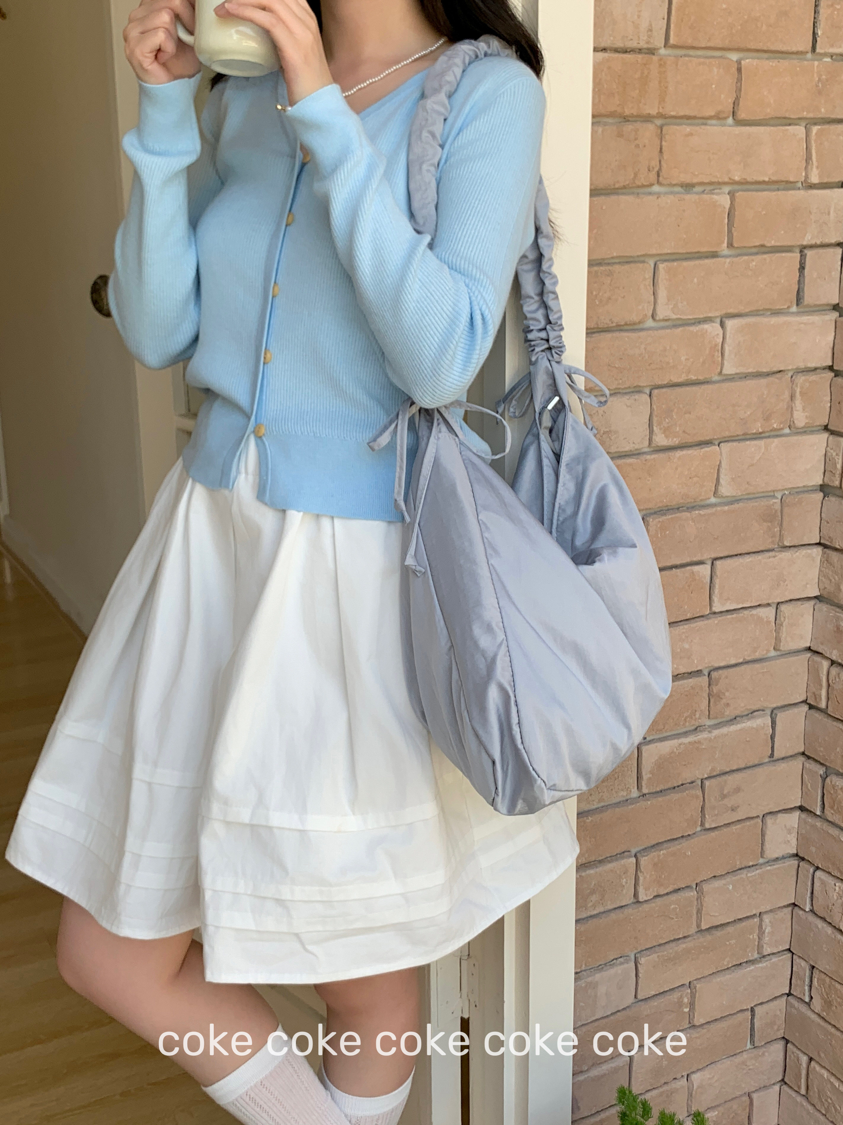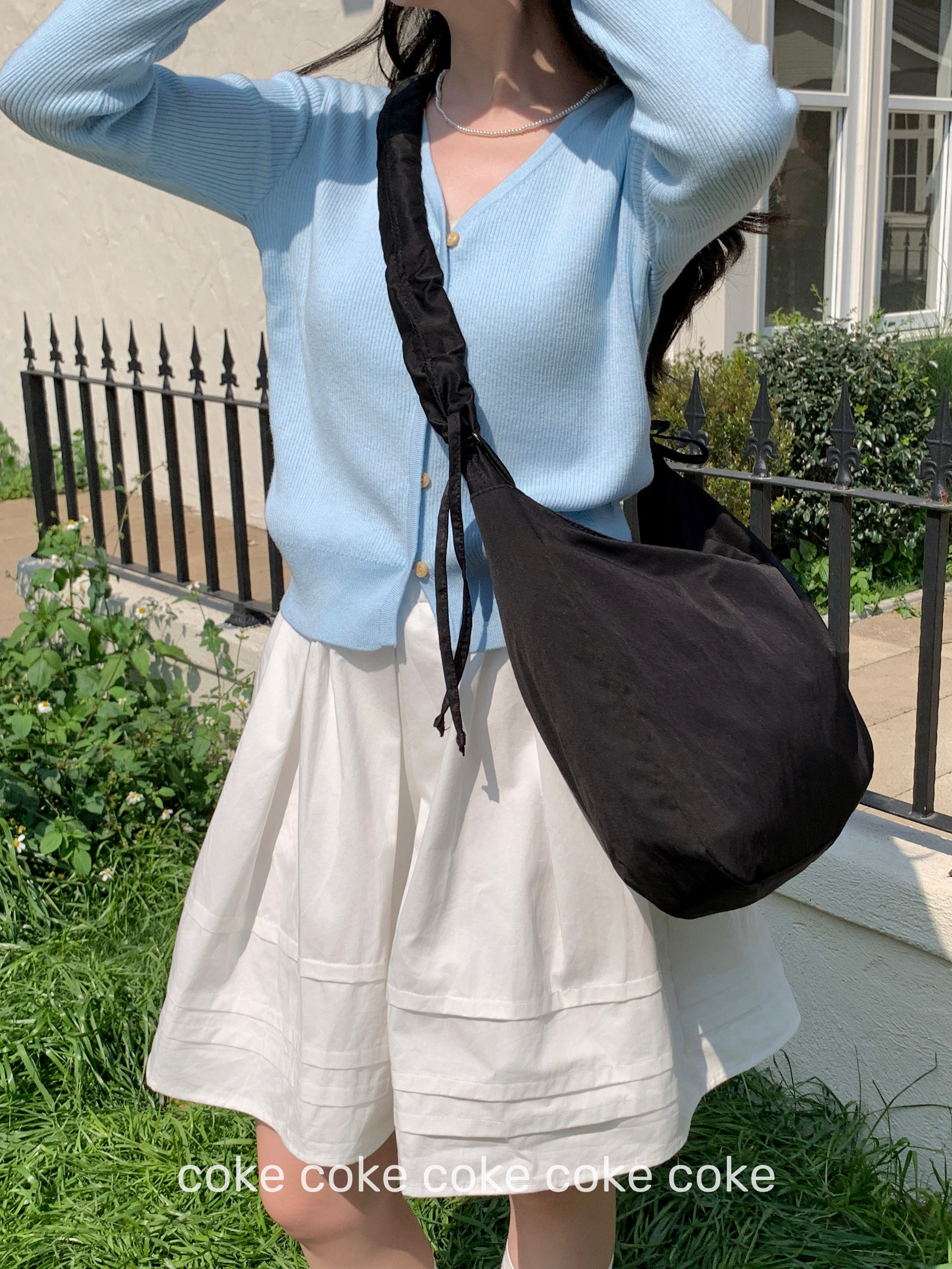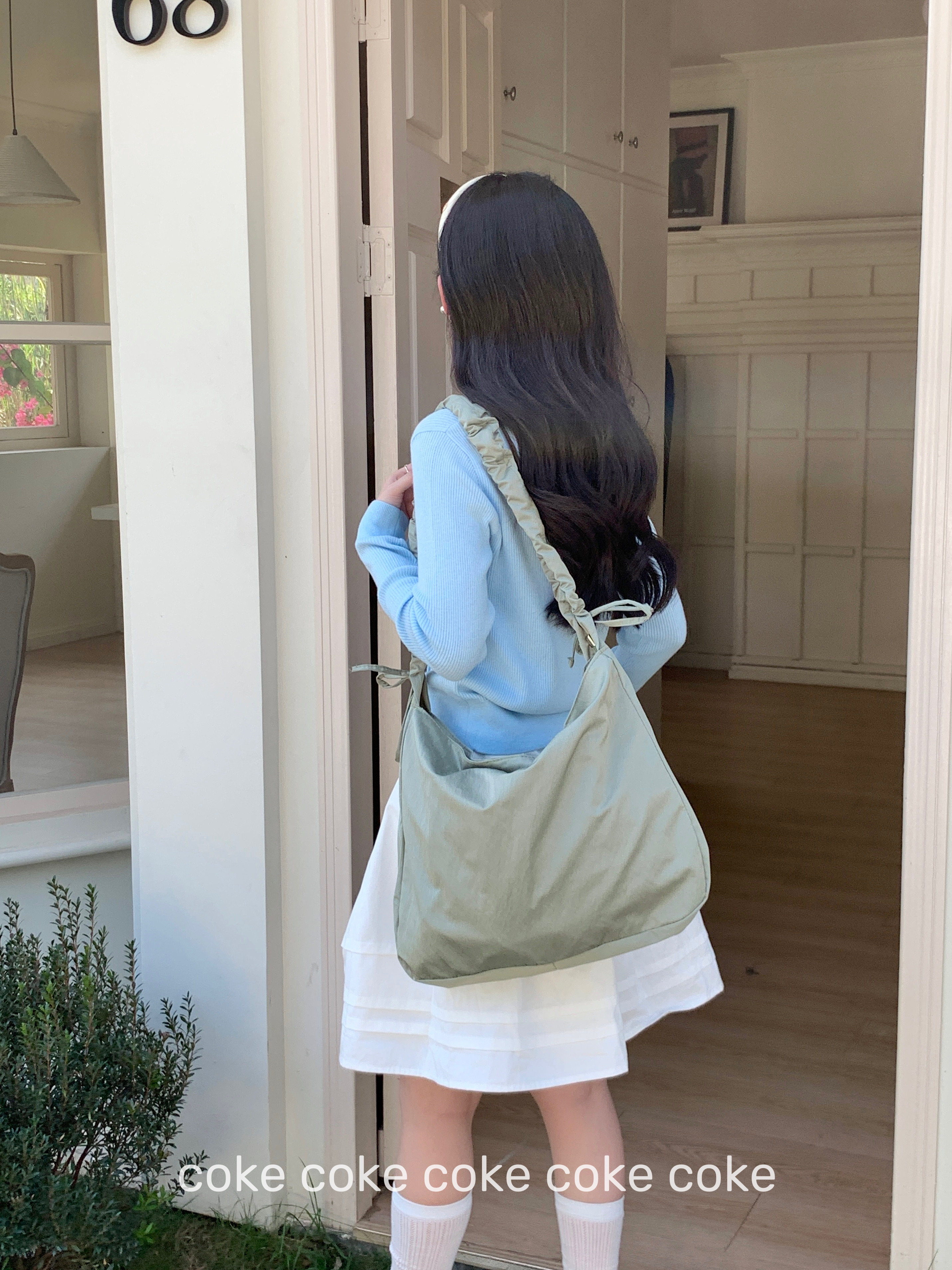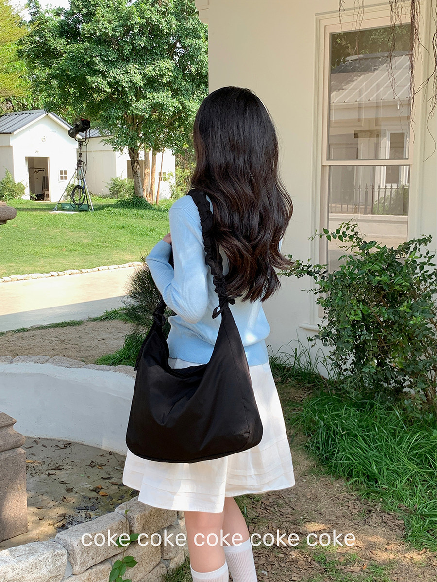 Japanese-Style Solid Color Simple Pleated Drawstring Shoulder Strap Crossbody Bag Large Capacity Cloud Casual Versatile Single Shoulder Gym Tote Bag