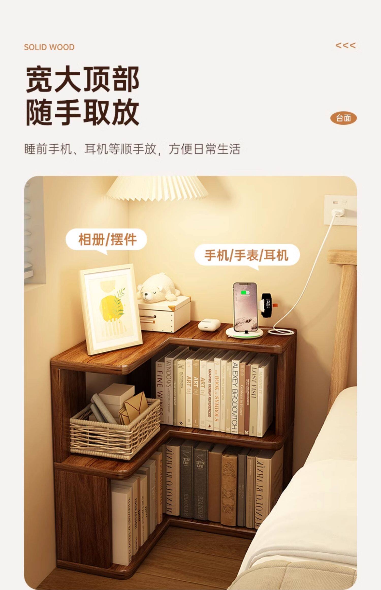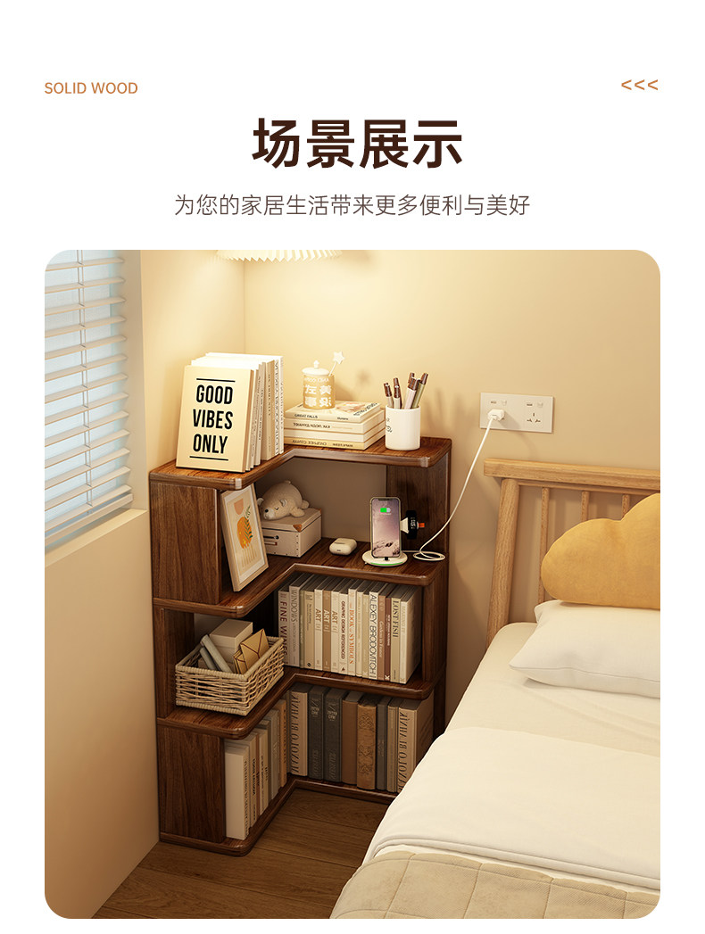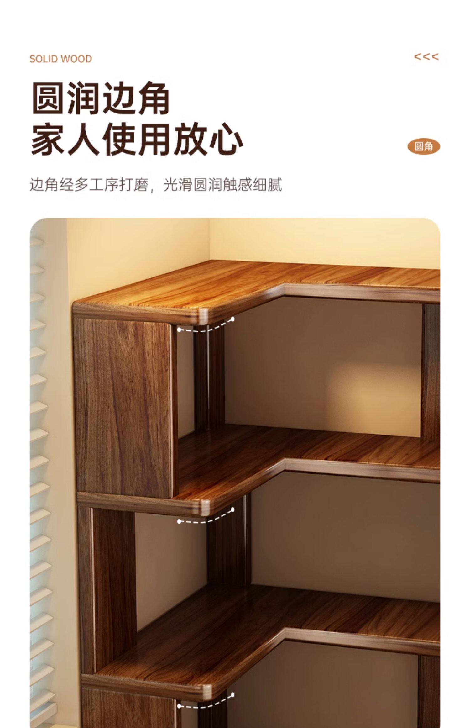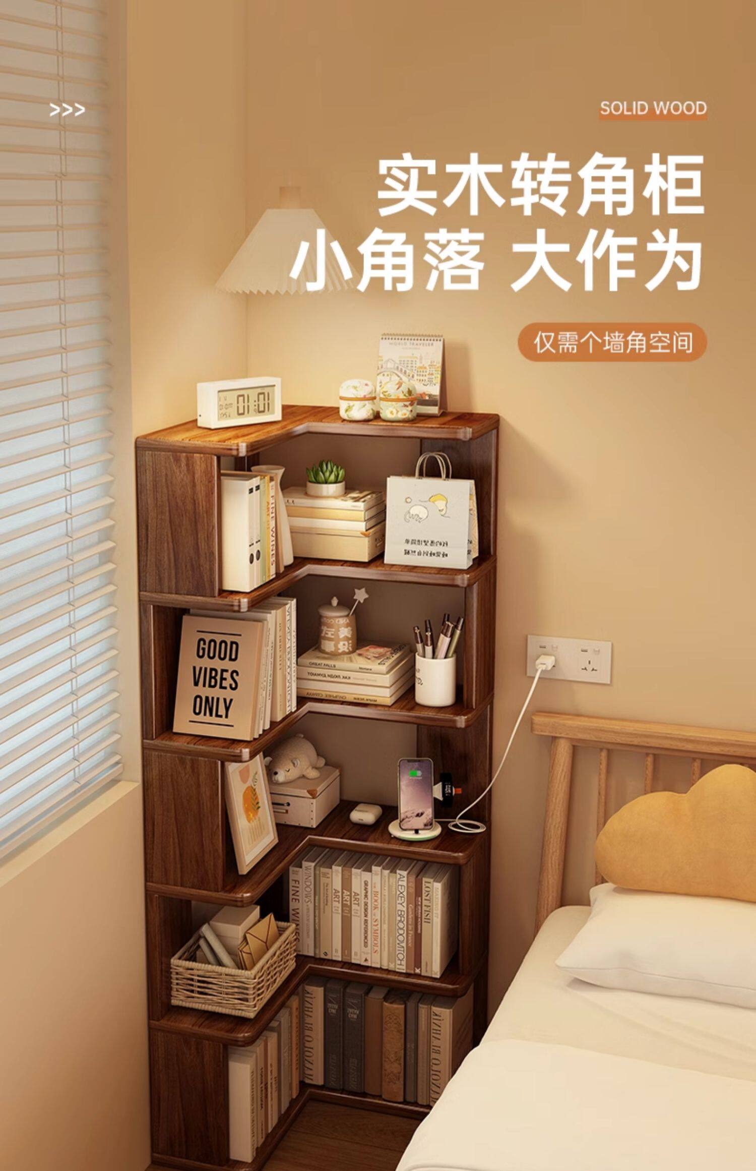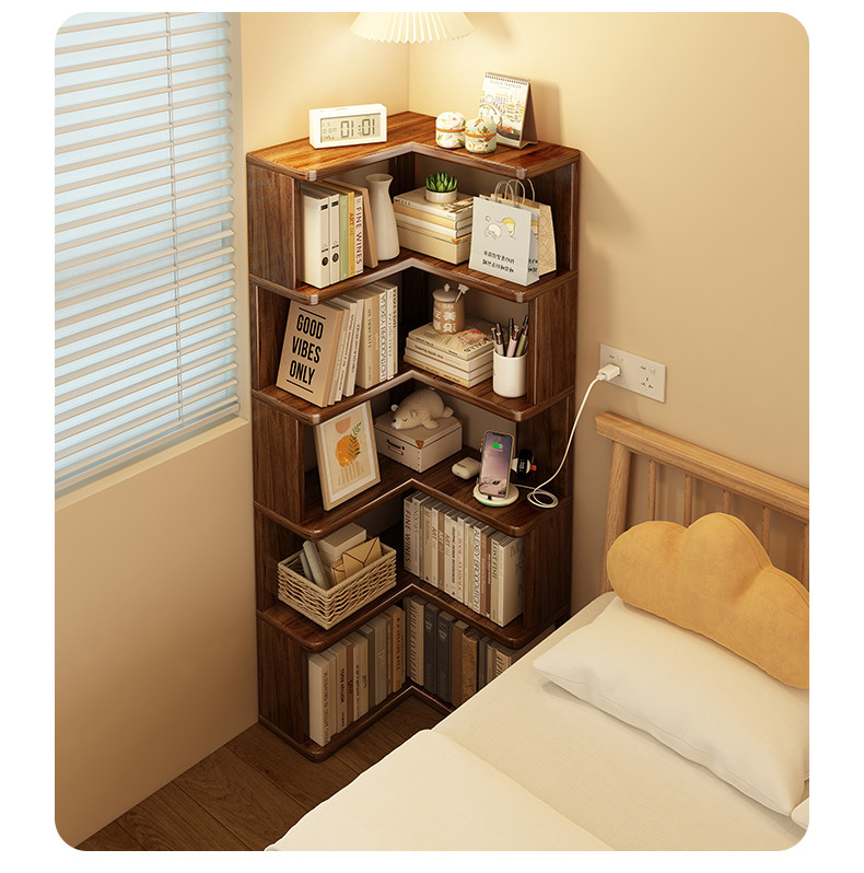 Solid Wood Corner Bookshelf Floor-Standing Storage Rack Living Room Corner Cabinet Wall Corner Storage Rack Simple Corner Bedside Display Bookcase