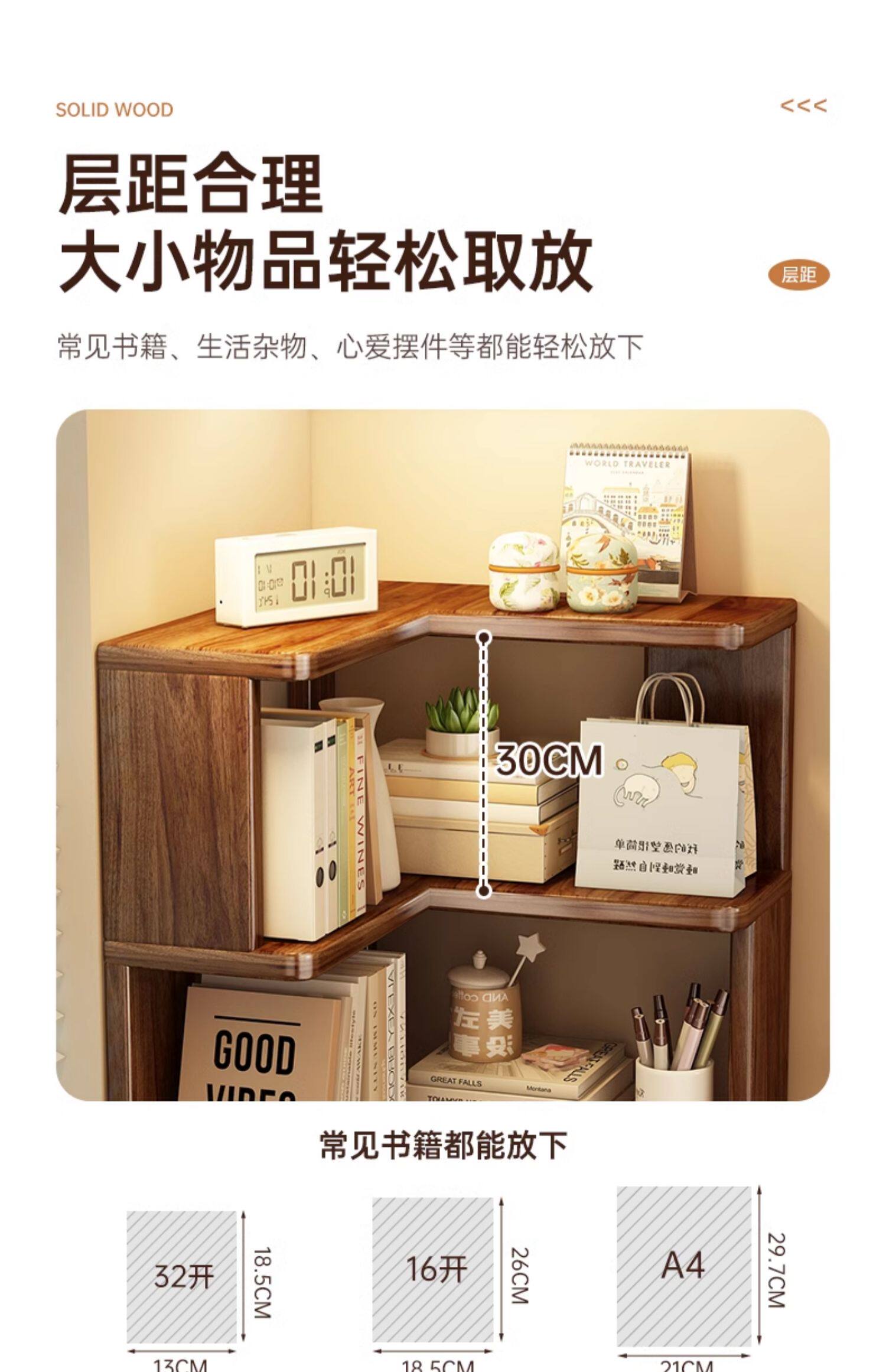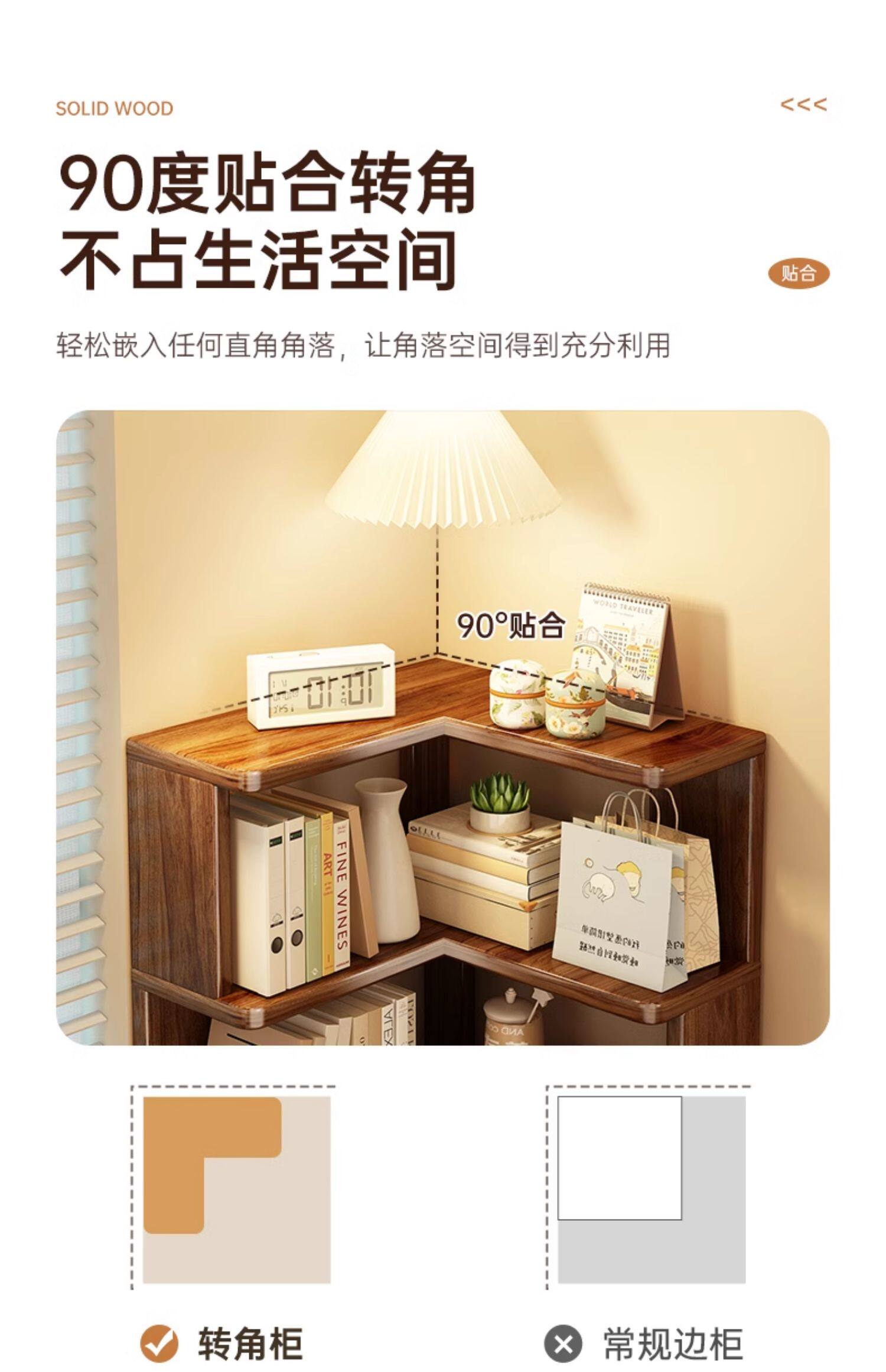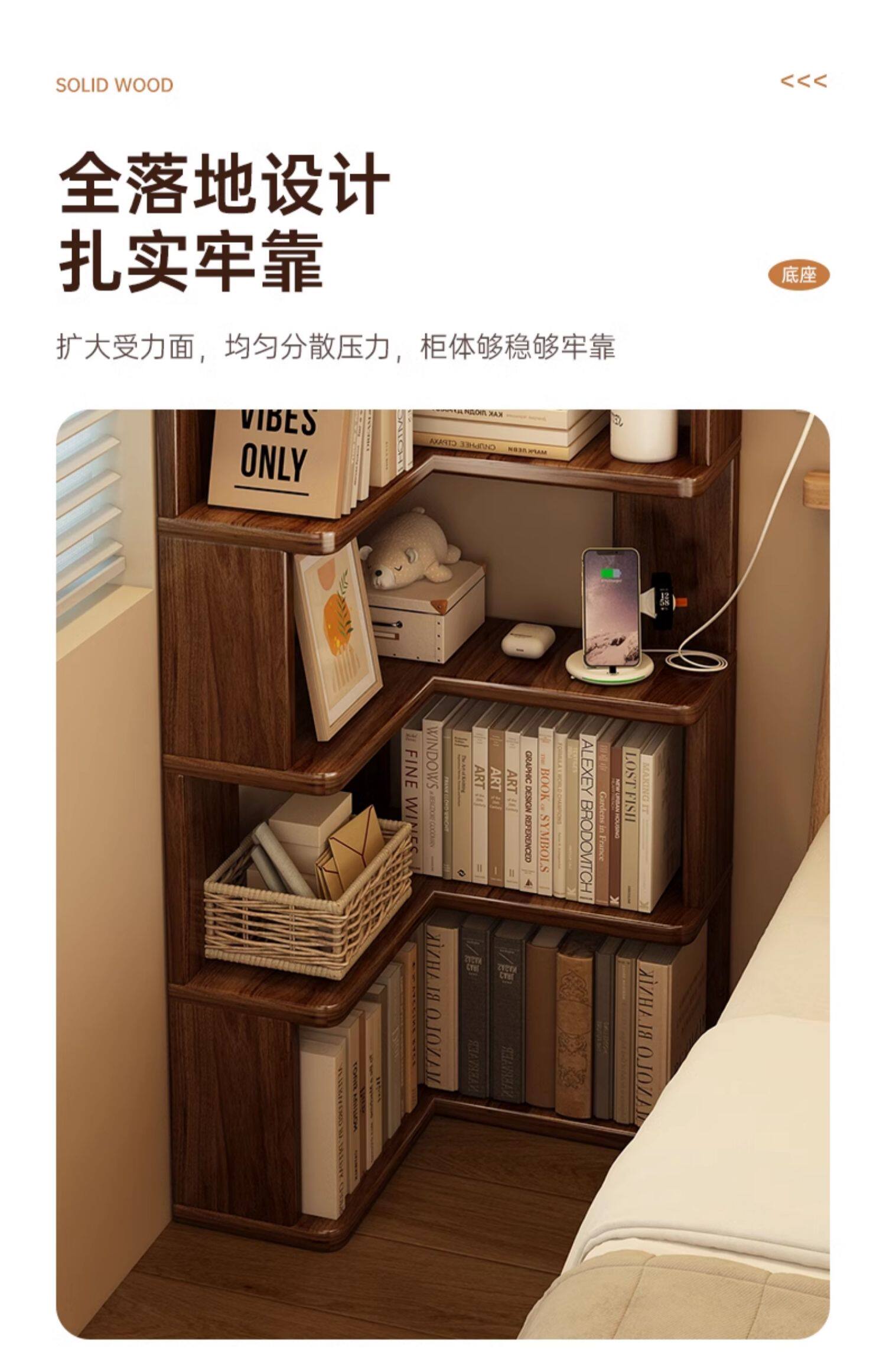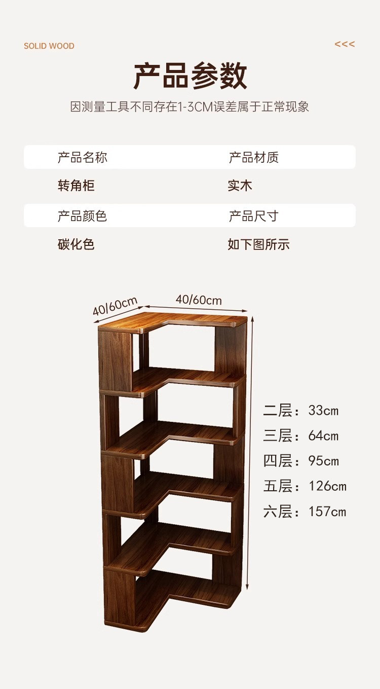 Solid Wood Corner Bookshelf Floor-Standing Storage Rack Living Room Corner Cabinet Wall Corner Storage Rack Simple Corner Bedside Display Bookcase
