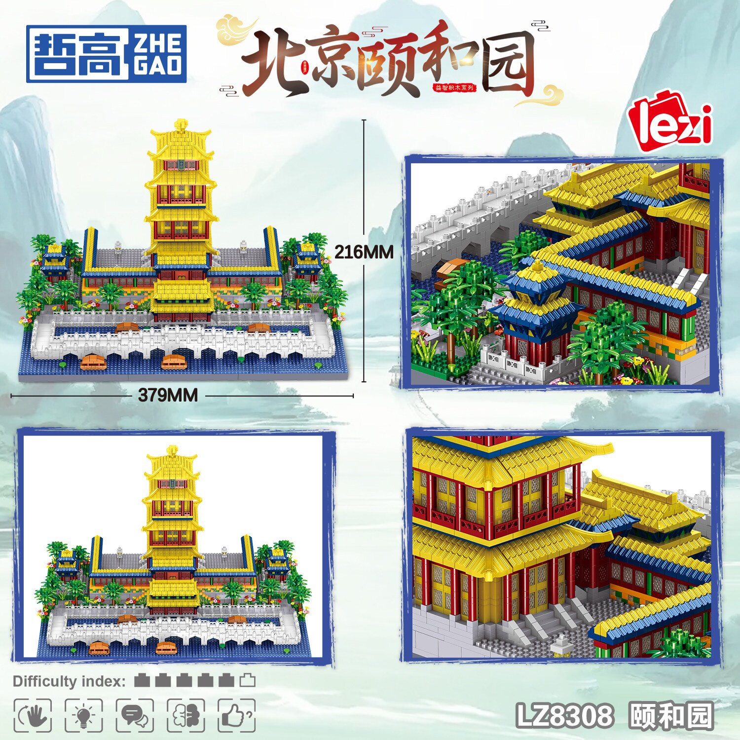 Ancient Chinese Style Lz8308 Beijing Yiheyuan Building Blocks Adult Version Crescent Spring Educational Toy Building Street Scene