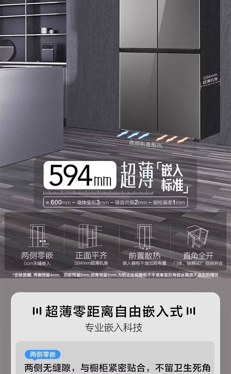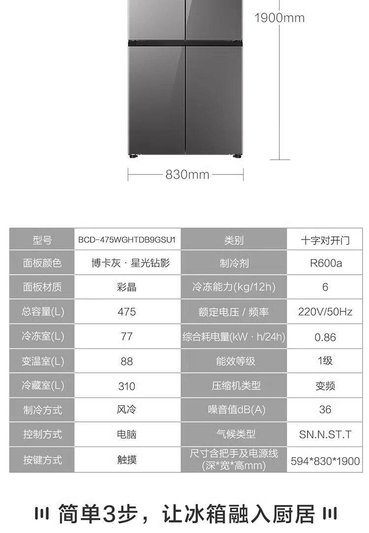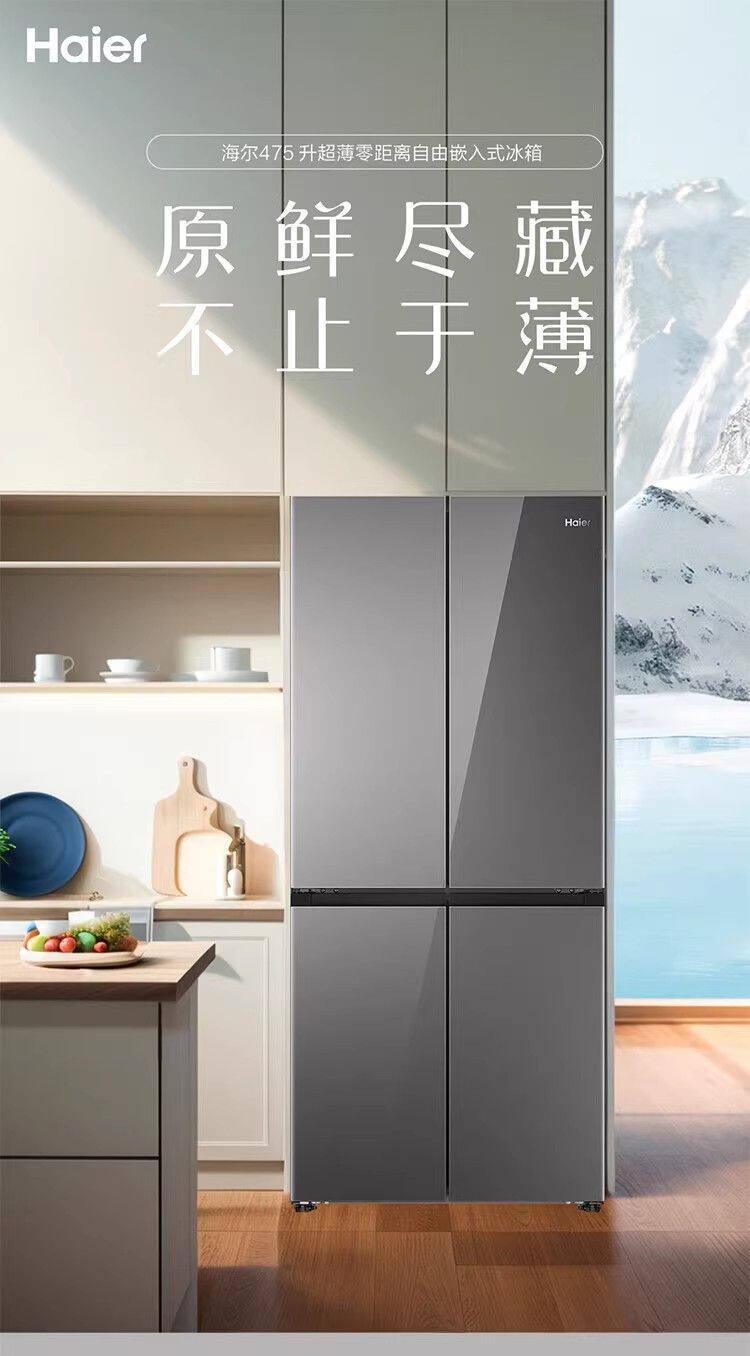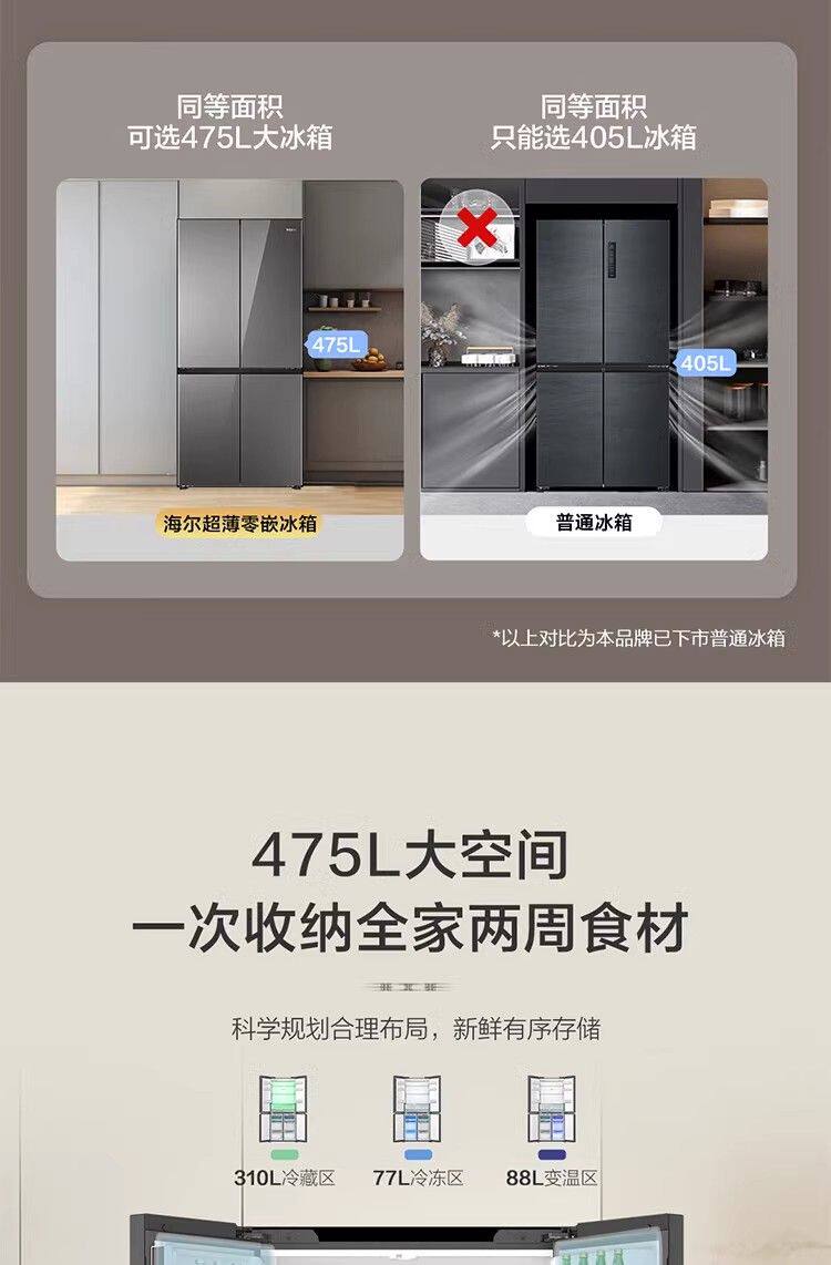 Haier refrigerator ultra-thin zero-embedded household cross-fold four-door double cycle BCD-475WGHTDB9GSU1