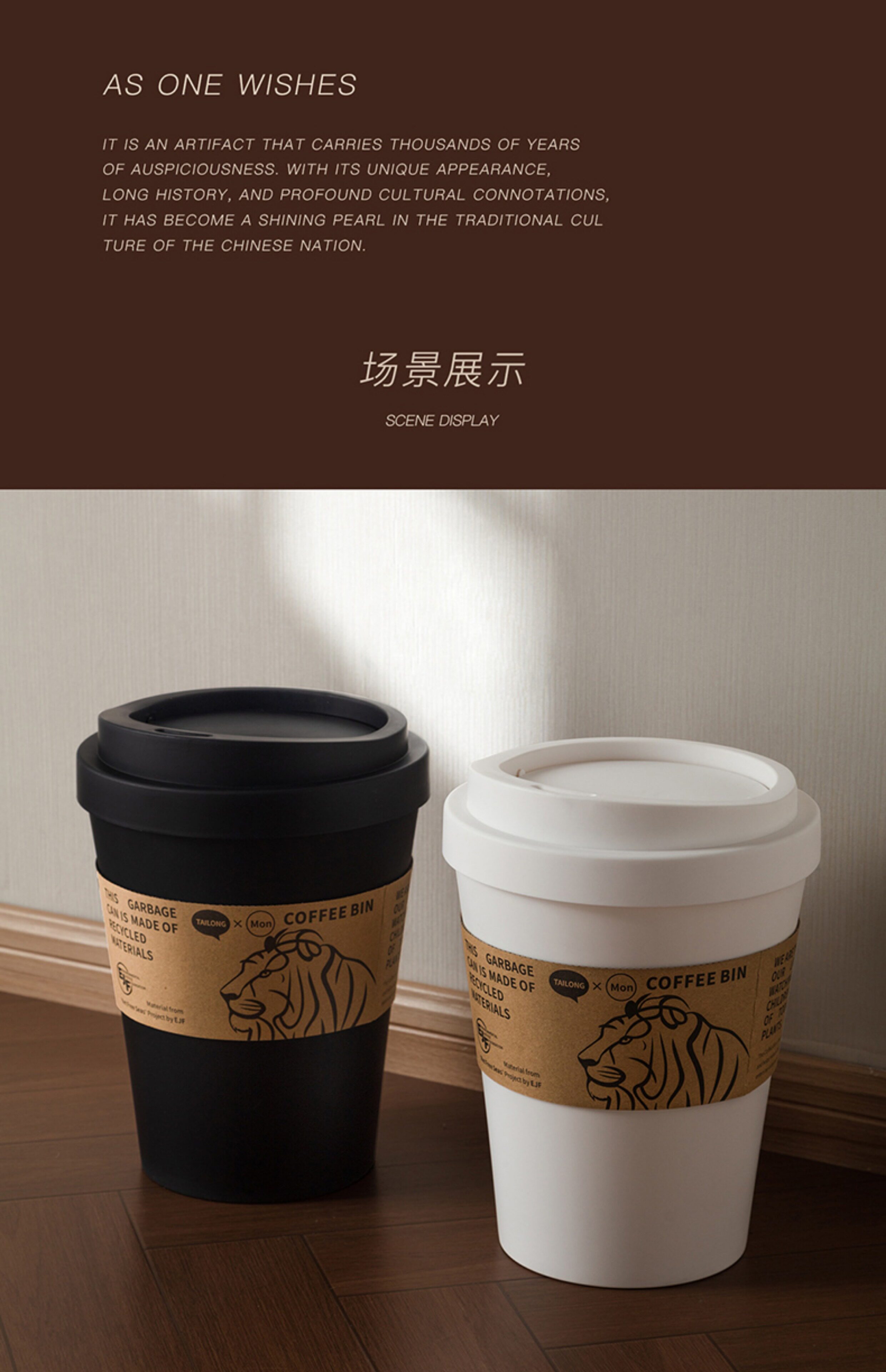 Color Classification Black-Coffee Cup Trash Can,White-Coffee Cup Trash Can
