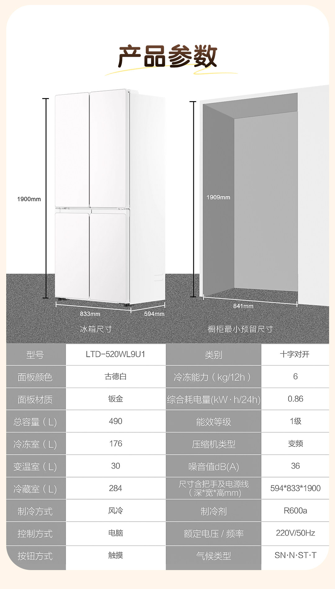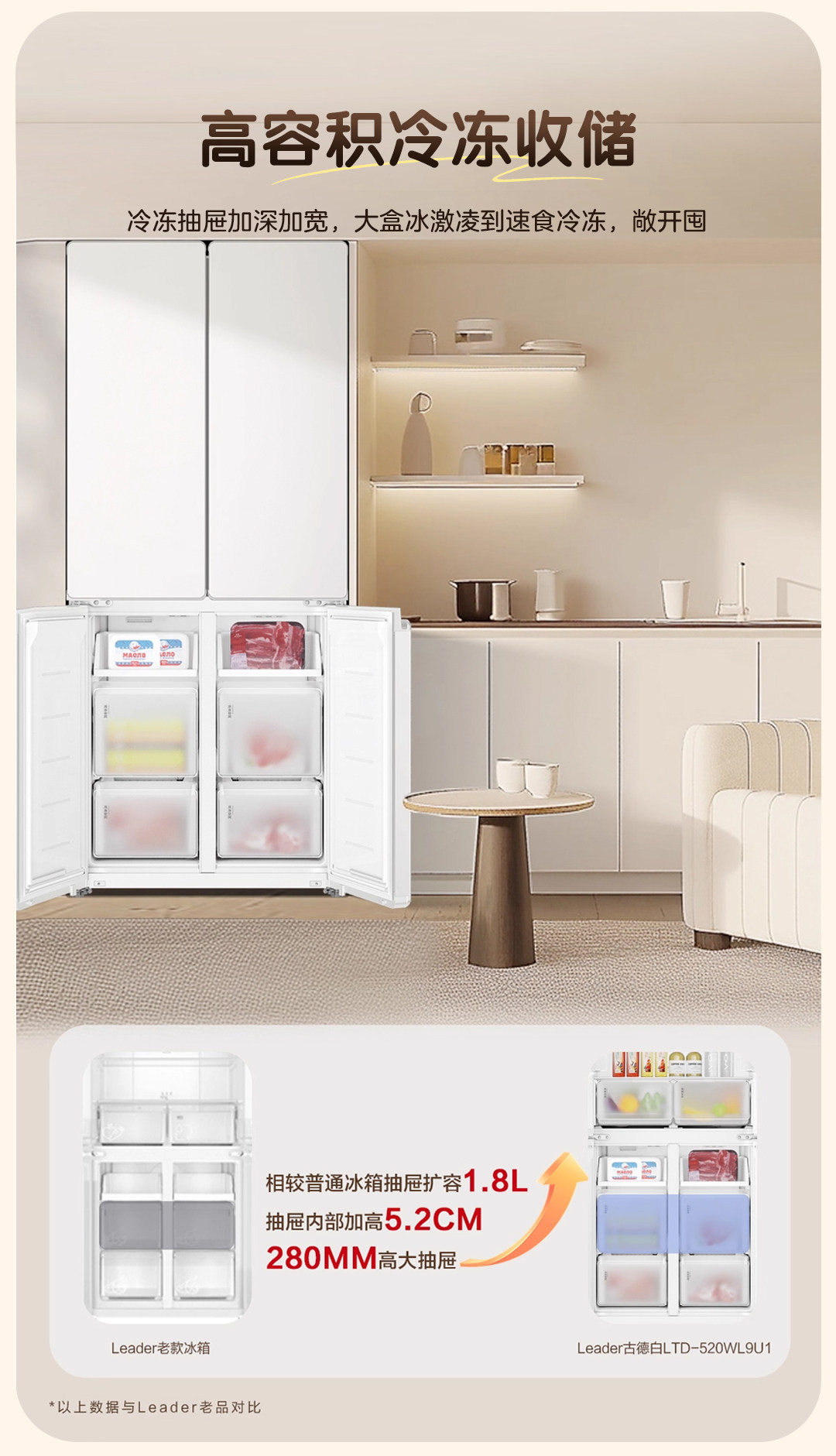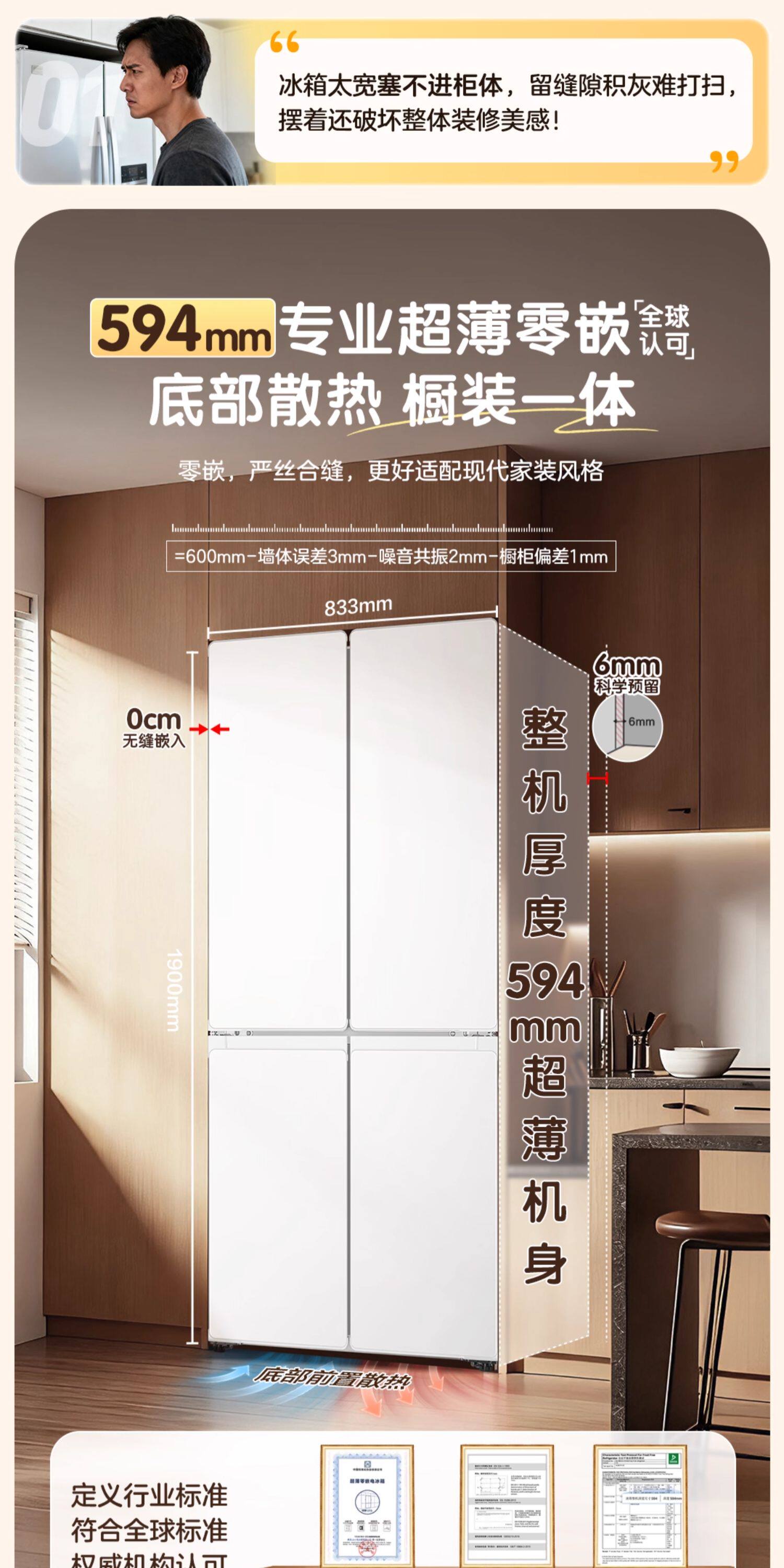 Haier produces commander haier refrigerator 520 ultra-thin zero-embedded cross door first-level energy efficiency household trade-in subsidy
