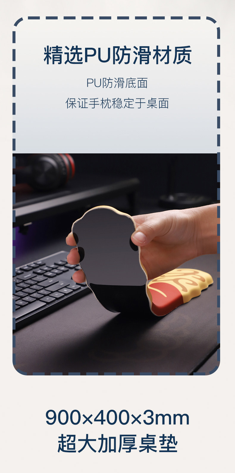 Color Classification Somersault Cloud Wrist Pad[Silicone Core Material + Pu Anti-Slip Bottom],Golden Cudgel Wrist Rest[Memory Foam Core Material + Pu Anti-Slip Bottom],Somersault Cloud Golden Cudgel Mouse Keyboard Pad[Two-Piece Set],Extra Large Desktop Mouse Pad 900*400*3mm,Somersault Cloud Golden Cudgel Oversized Desk Mat[Three Piece Suit]