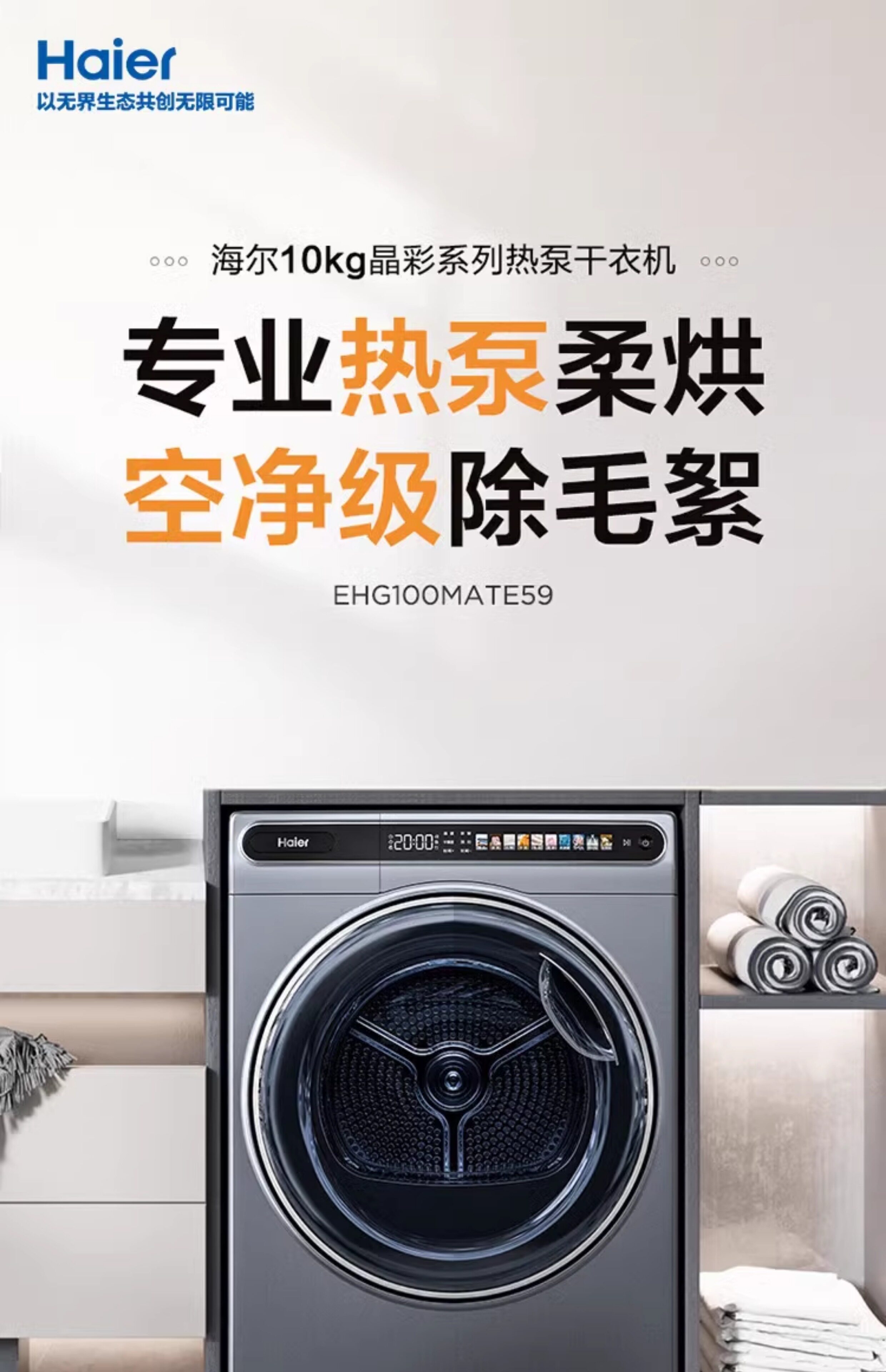 Haier Jingcai Ehg100Mate59 Dryer 10kg Heat Pump Clothes Dryer Household Sterilization Mite Removal Air Purification Filter