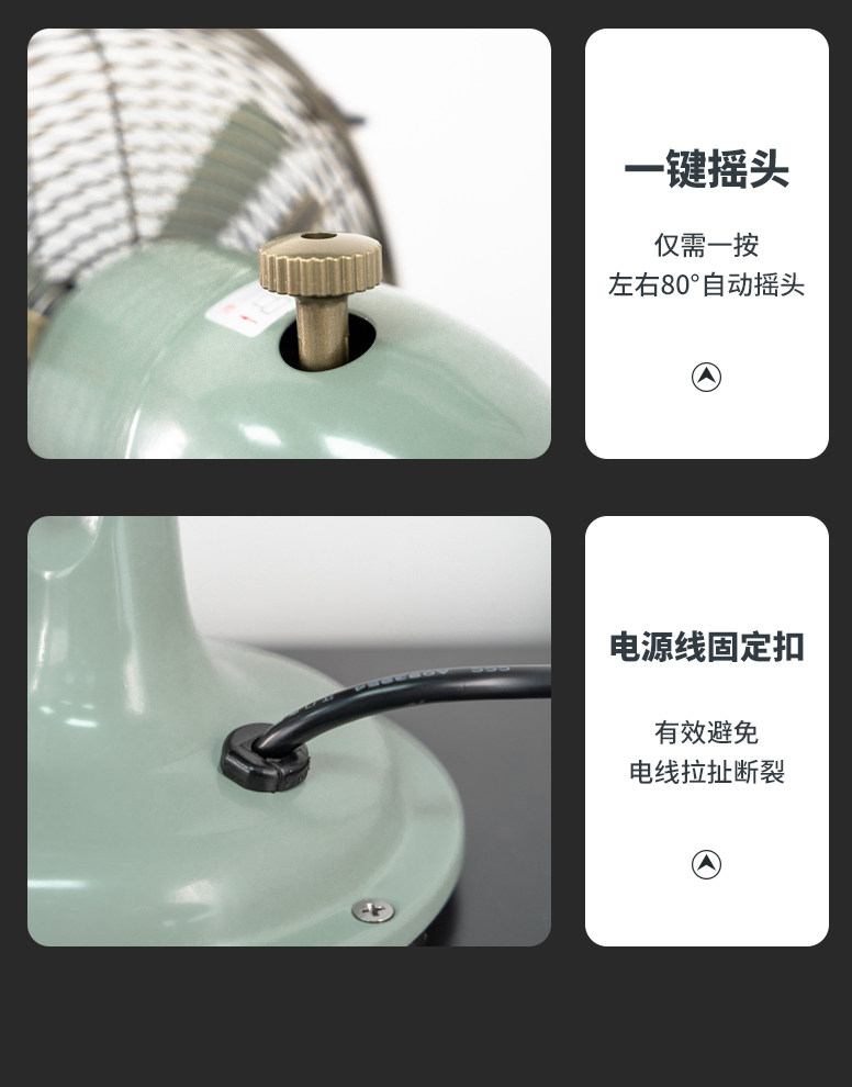Sunko Antique Table Fan Household Metal Electric Fan Desktop Commercial 12inch Strong Wind Durable Nostalgic Bronze Shaking Head