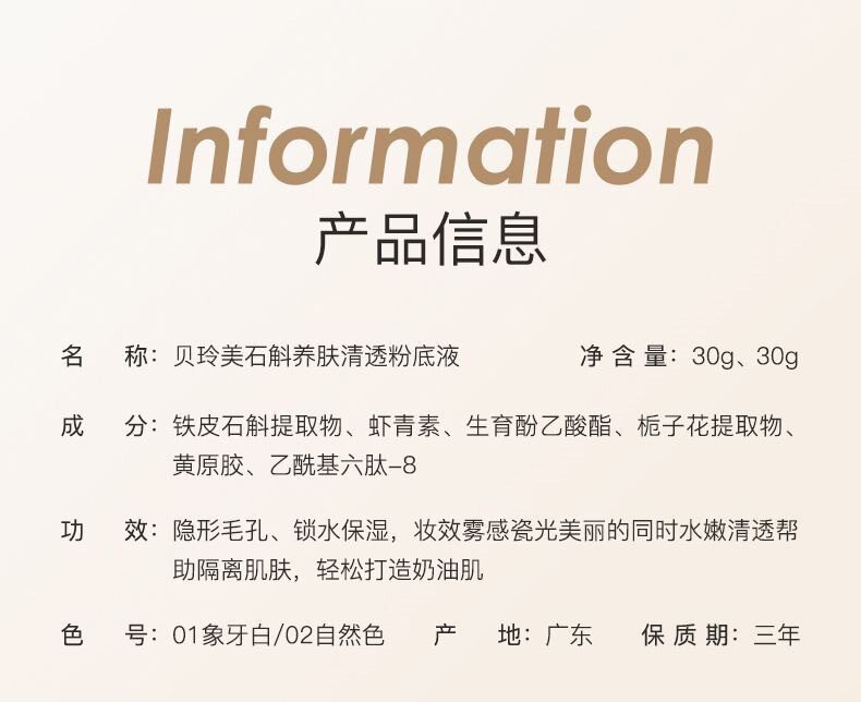 Product Name Beilingmei Dendrobium Skin-Nourishing Clear Liquid Foundation (Natural Color)
