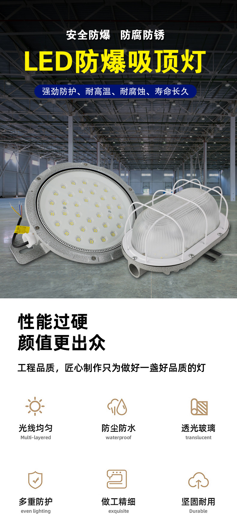Led Explosion-Proof Ceiling Light for Stairs, Corridors, Basements, and Rain Shelters, Anti-Corrosion, Waterproof, Dustproof, Moisture-Proof, Emergency Radar, Voice-Controlled