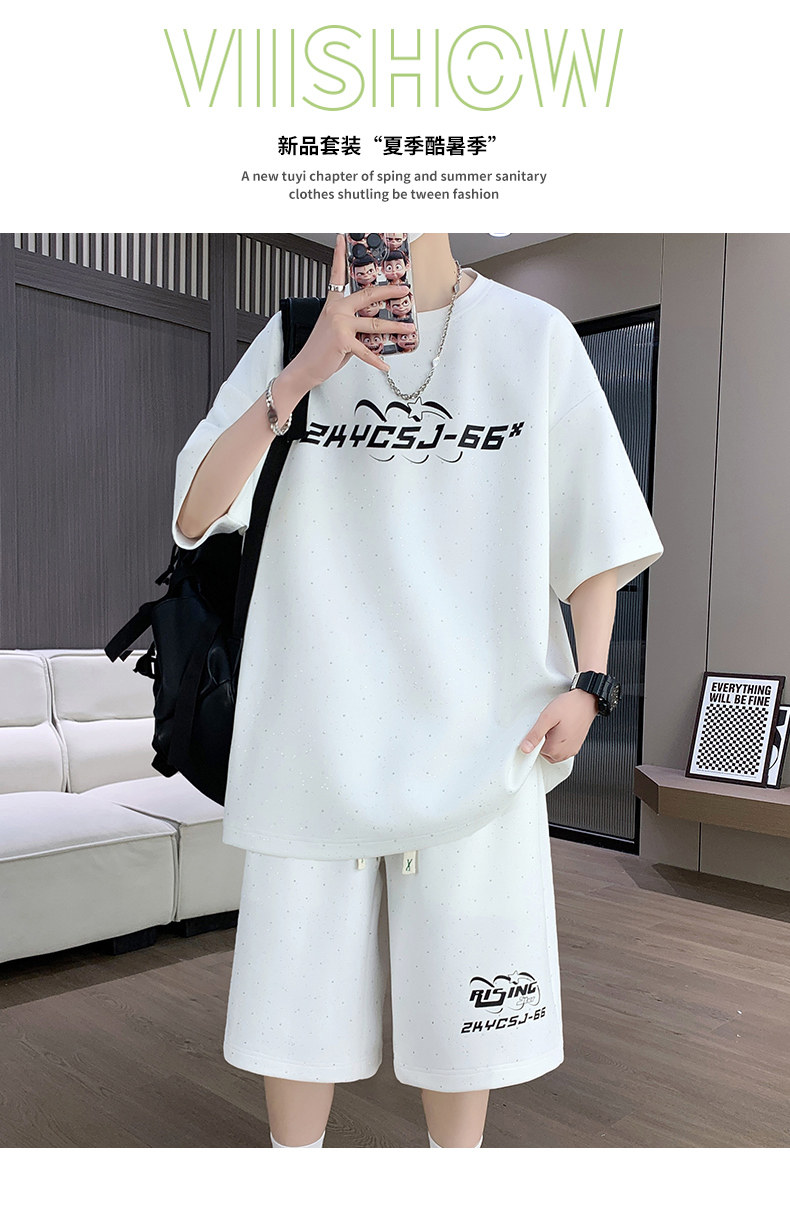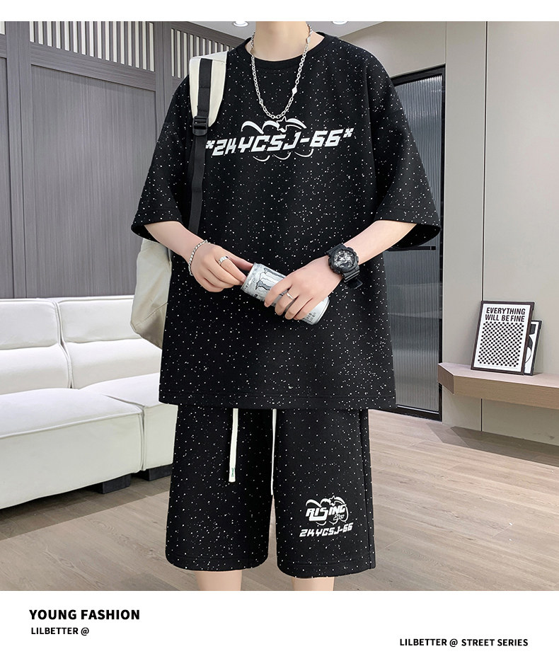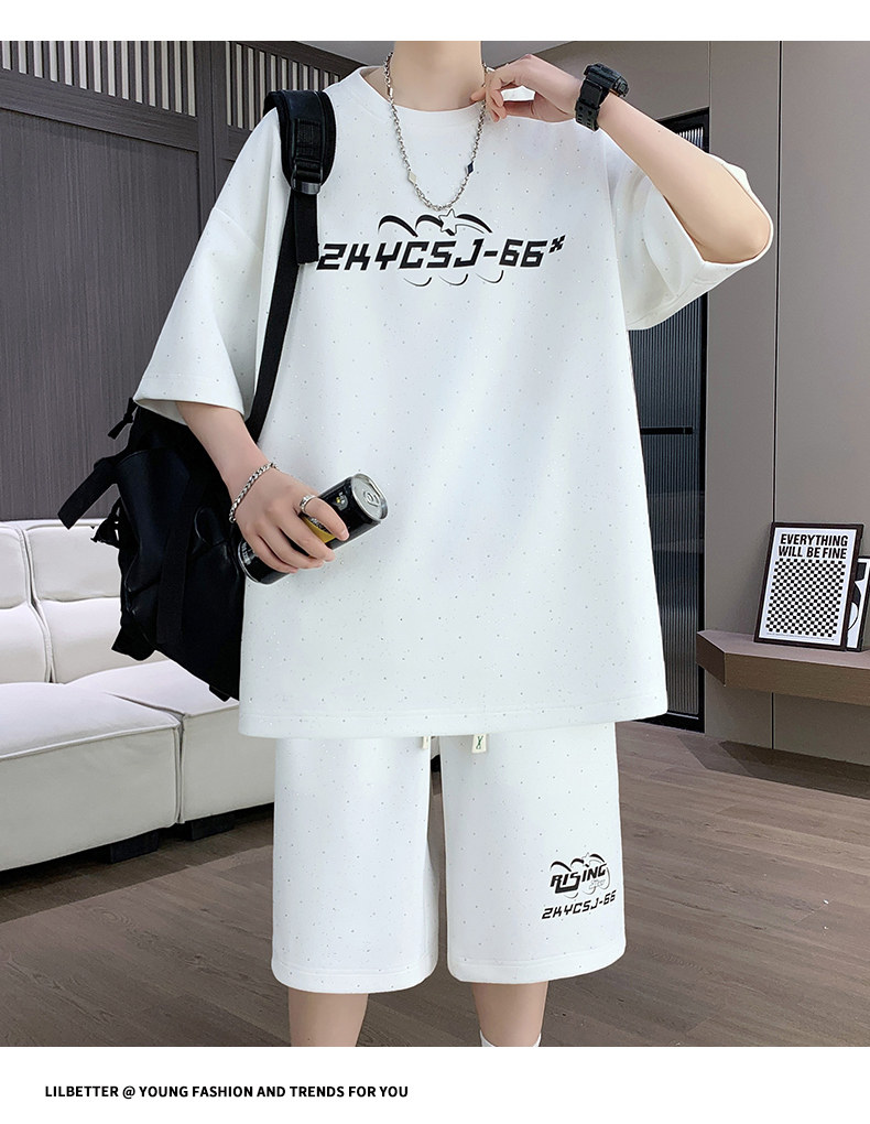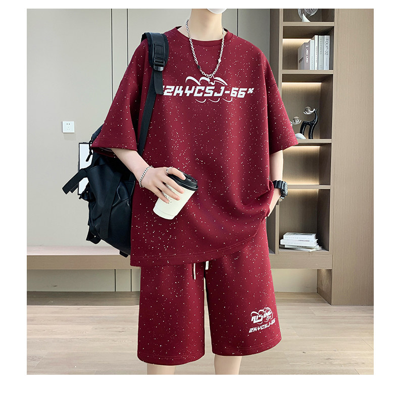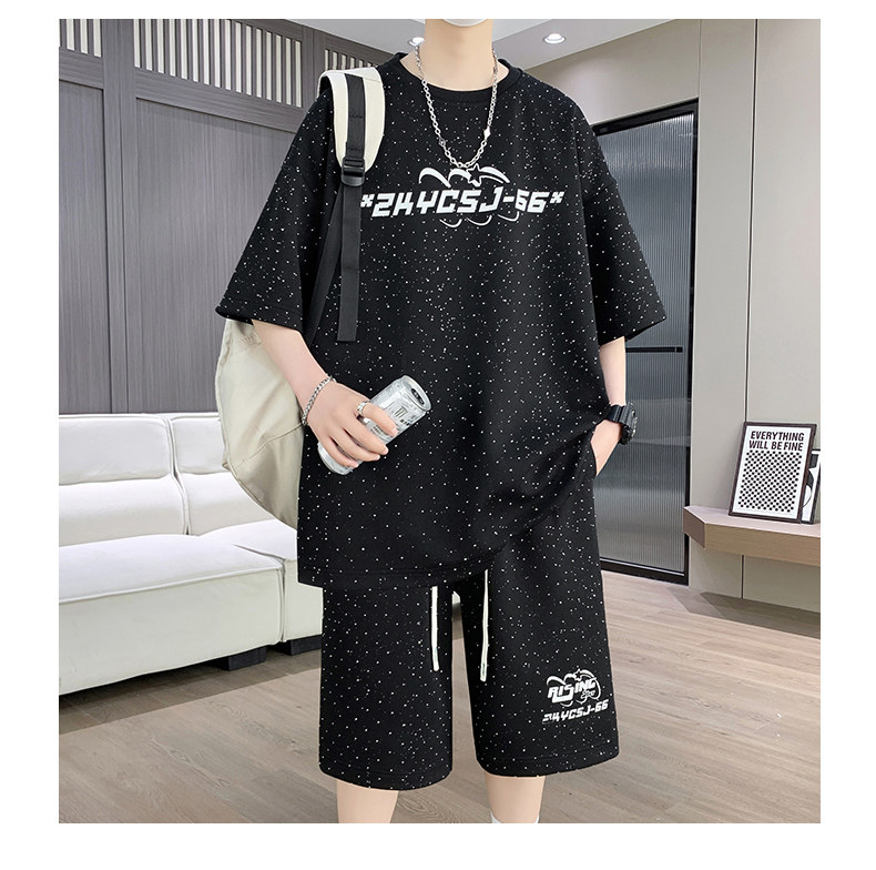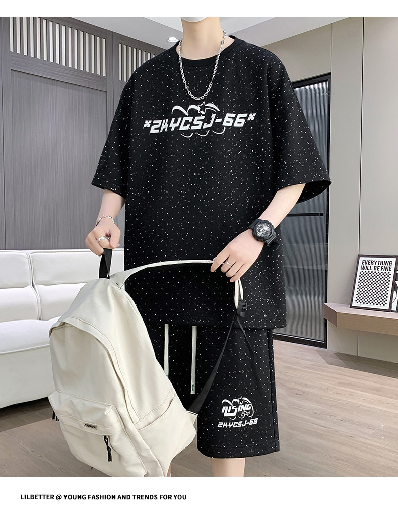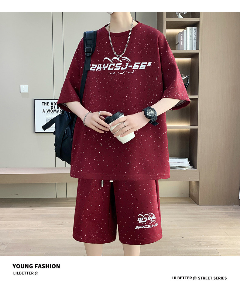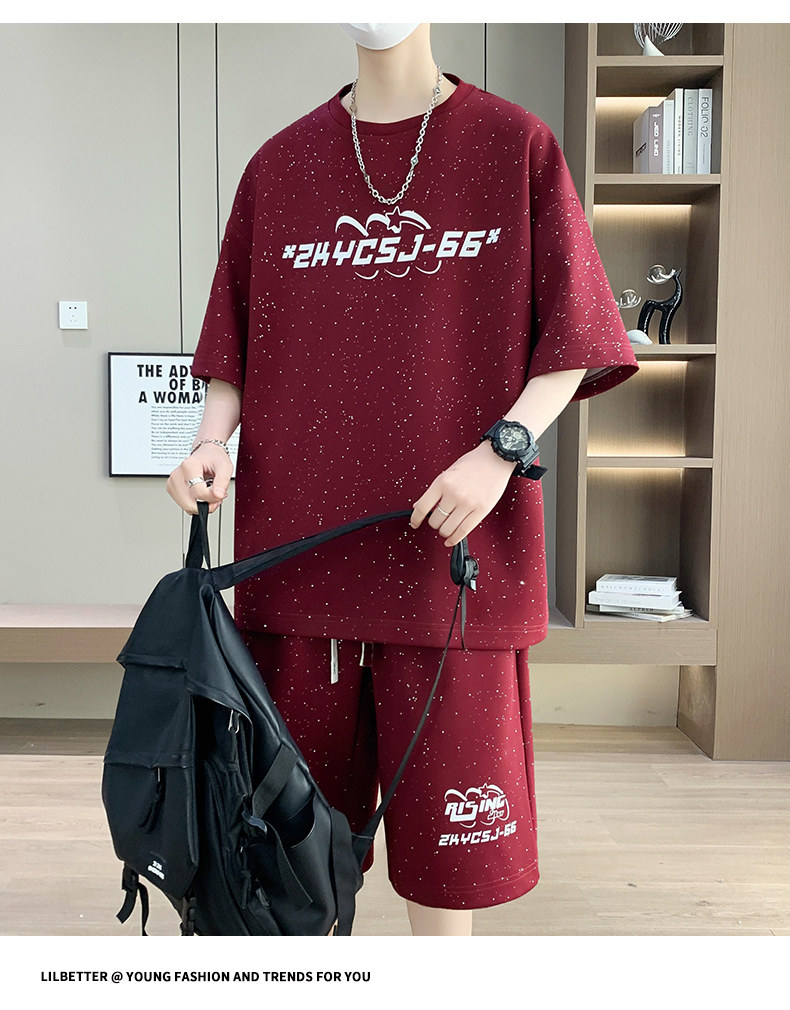 Summer Men's Short-Sleeved Suit, Casual Sports Suit, Youth Loose Trendy T-Shirt and Shorts Two-Piece Set