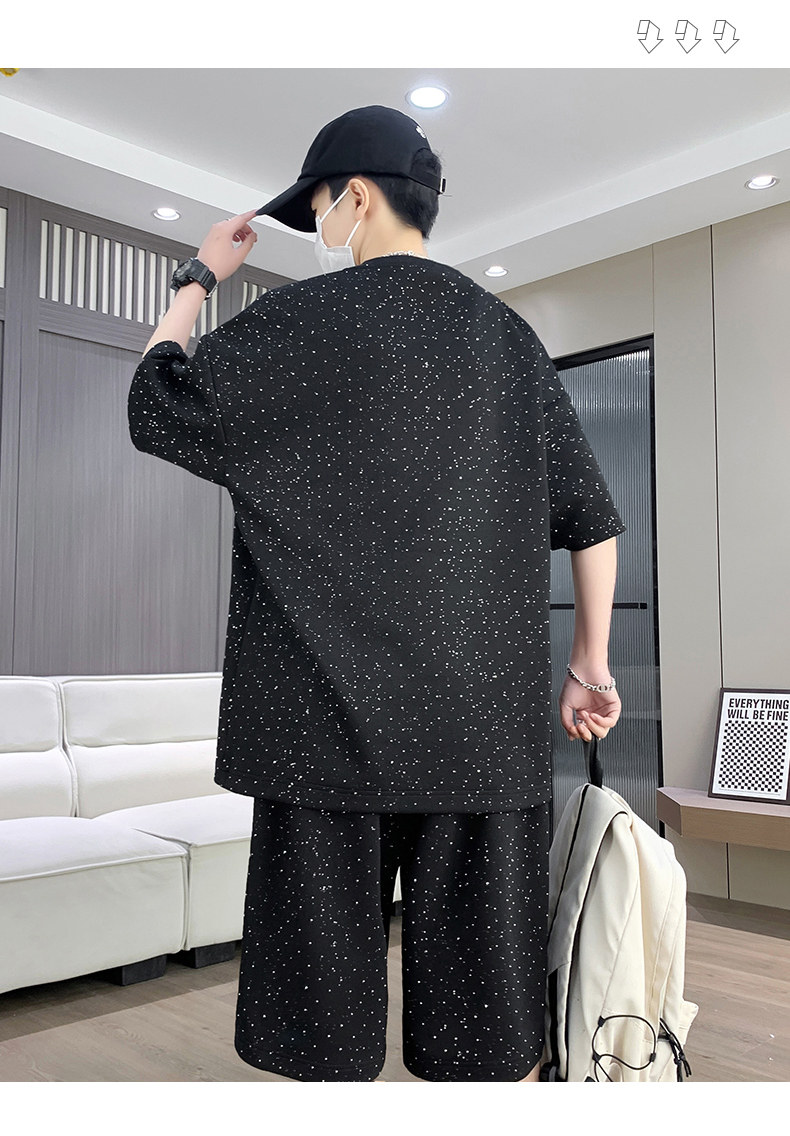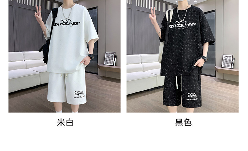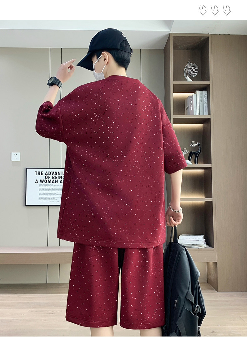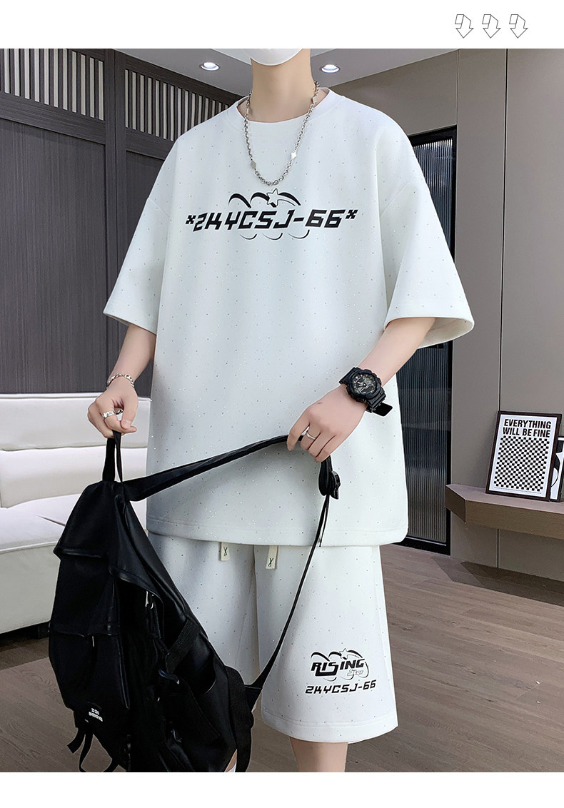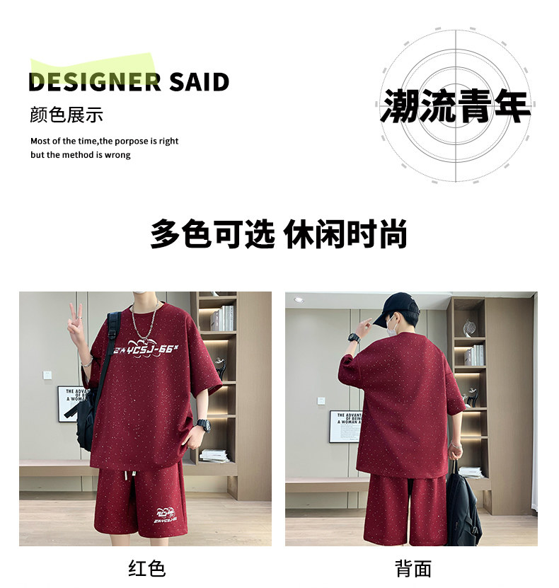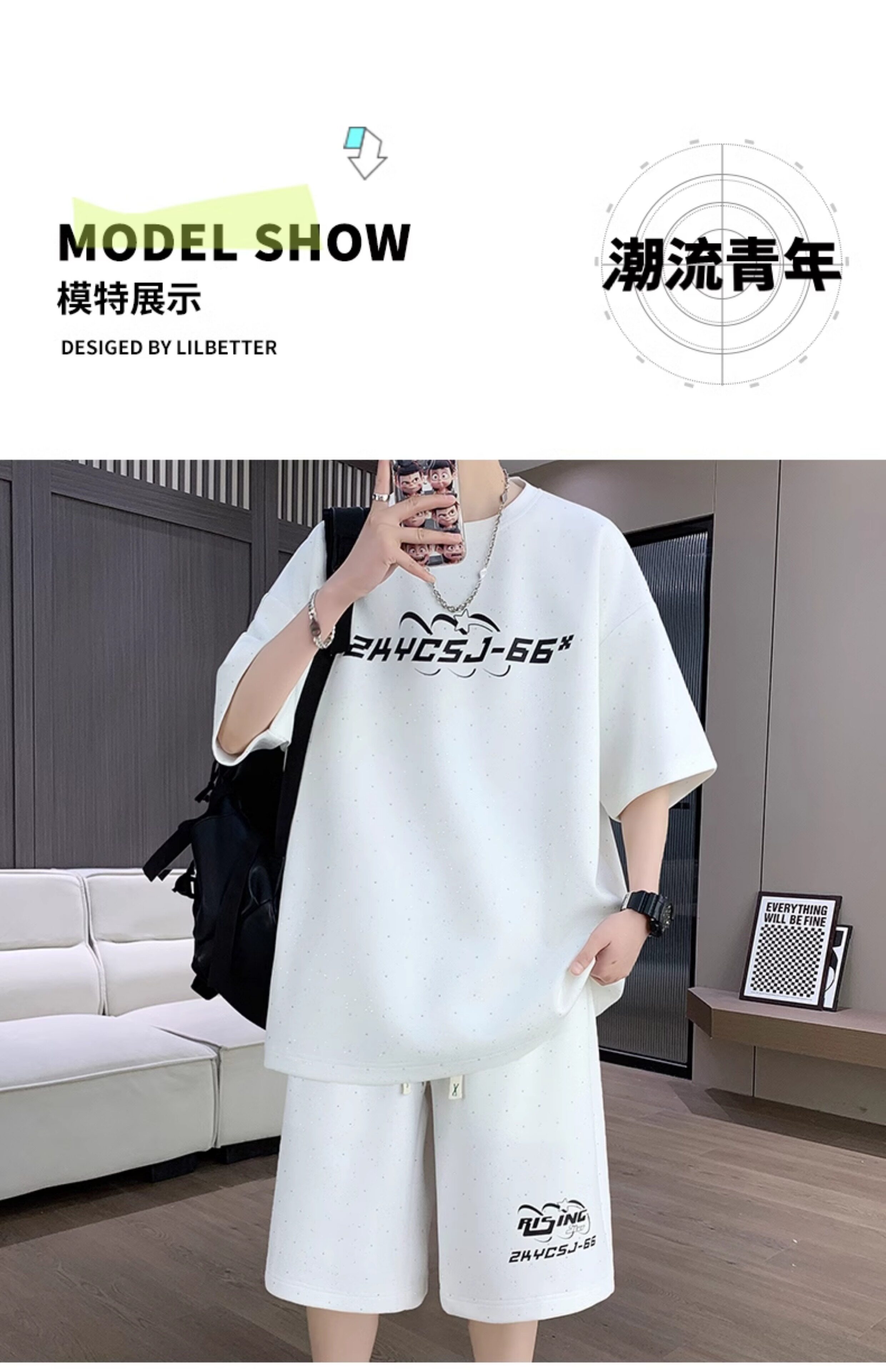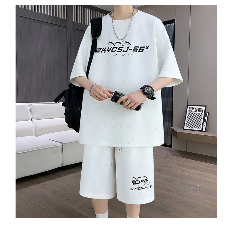 Summer Men's Short-Sleeved Suit, Casual Sports Suit, Youth Loose Trendy T-Shirt and Shorts Two-Piece Set