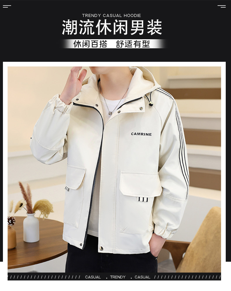 Spring and Autumn Jacket for Men, Trendy Brand, Versatile, High-End Hooded Windbreaker, Summer 2026 New Casual Top