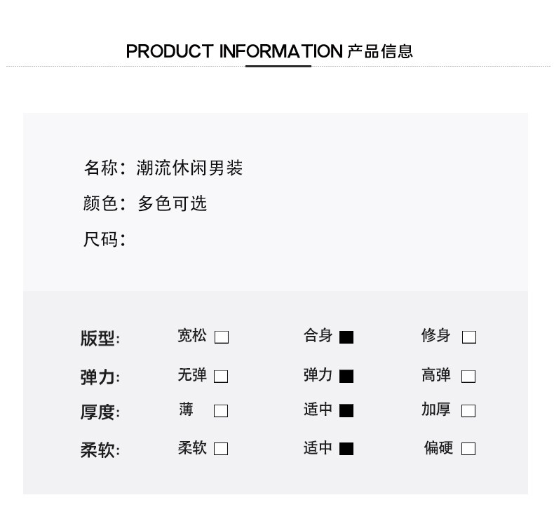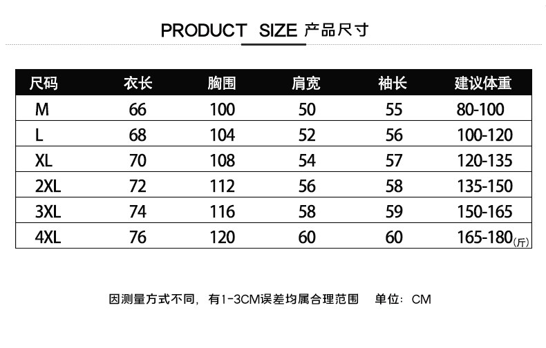 China (cm) 165 / 88-90 170 / 96-98 175 / 108-110 180 / 118-122 185 / 126-130