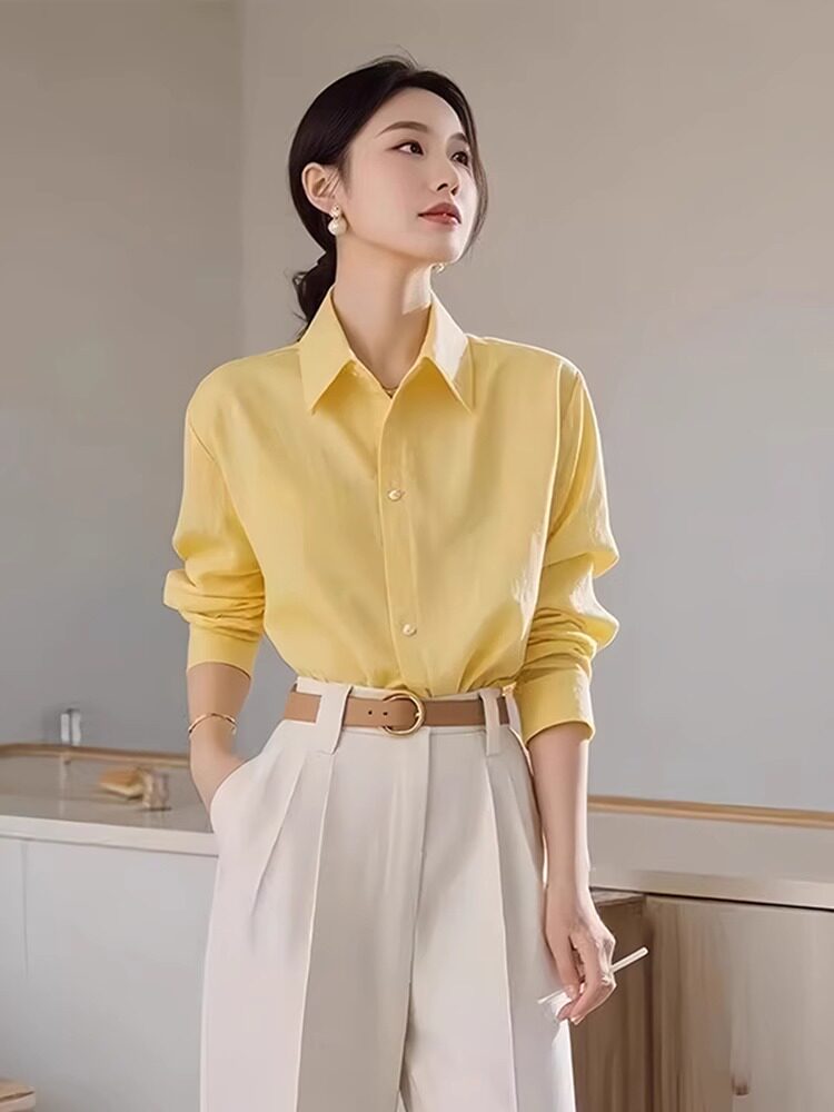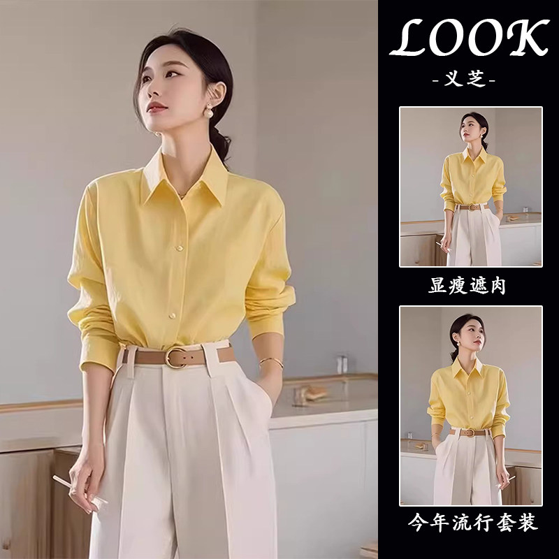 Sort by color Yellow shirt, lazy and loose top, European style shirt/Korean drama heroine's new autumn style cool and sexy women's clothing/cold style top, salt style, street-friendly, fashionable to reduce age, slimming and covering the flesh/high fashion, lively to reduce age.,White pants new autumn women's clothing/small people/fashion trendy women's clothing 2024 new style/slightly fat and slimming to cover the flesh/fashionable and stylish/this year's fashion/pear-shaped body wear/unique, chic and beautiful/autumn,Yellow shirt + white pants are popular this year and are beautiful suits/fashionable women in the hall/high-end cool and salty outfits/a and sassy/work and commuting outfits/miu suits/women's suits with light luxury and high-end feel