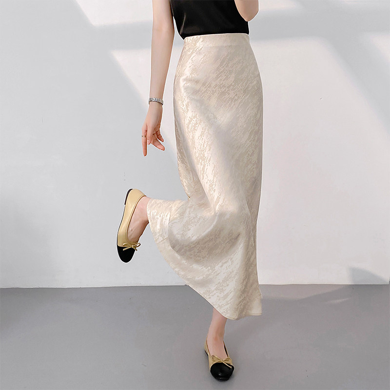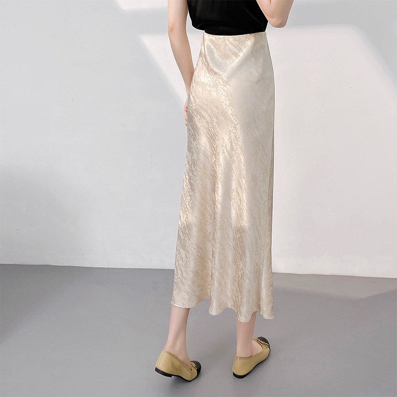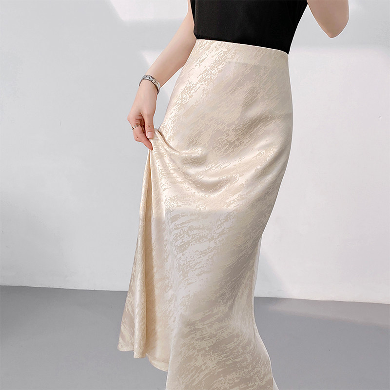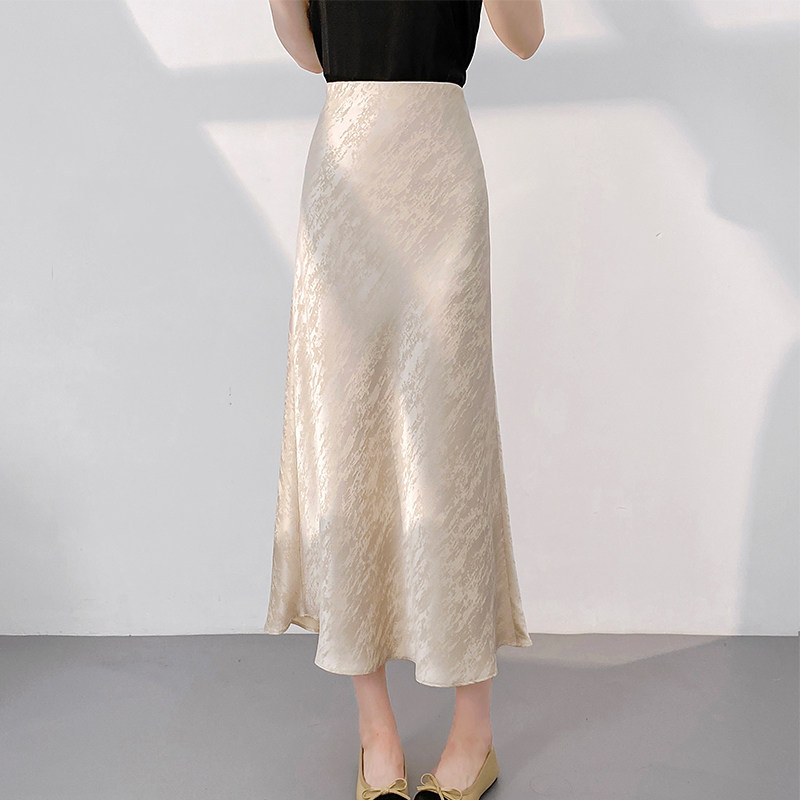 2026 New Style New Chinese Style French High-End Satin Acetate Skirt A-Line Fishtail Apricot Skirt for Women Summer