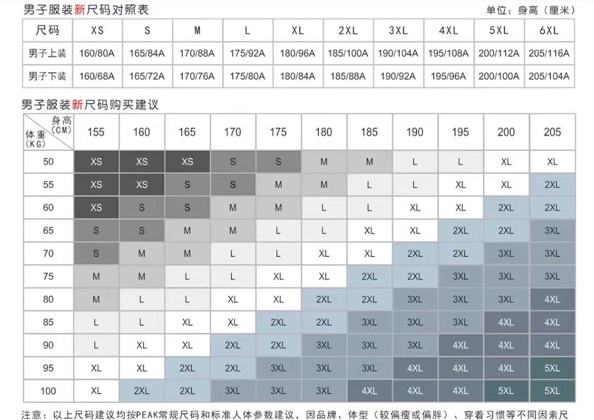 China (cm) 160-165/84-86 165-170 / 88-90 167-172 / 92-96 168-173 / 98-102 170-176 / 106-110