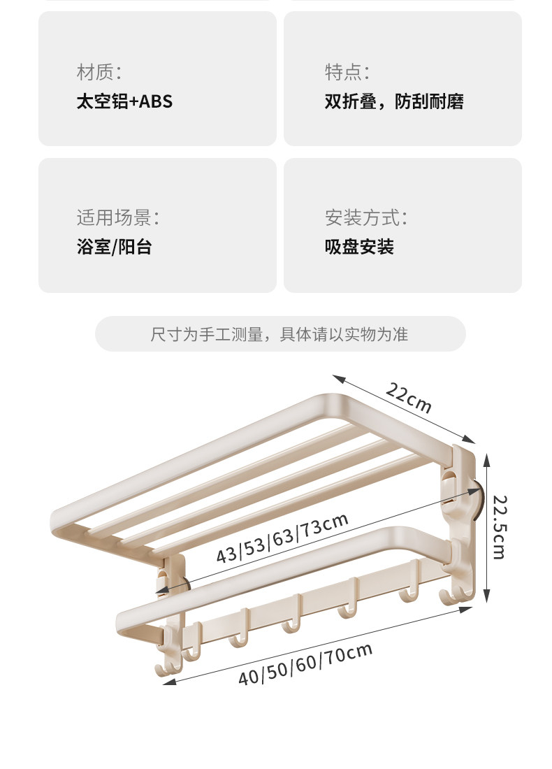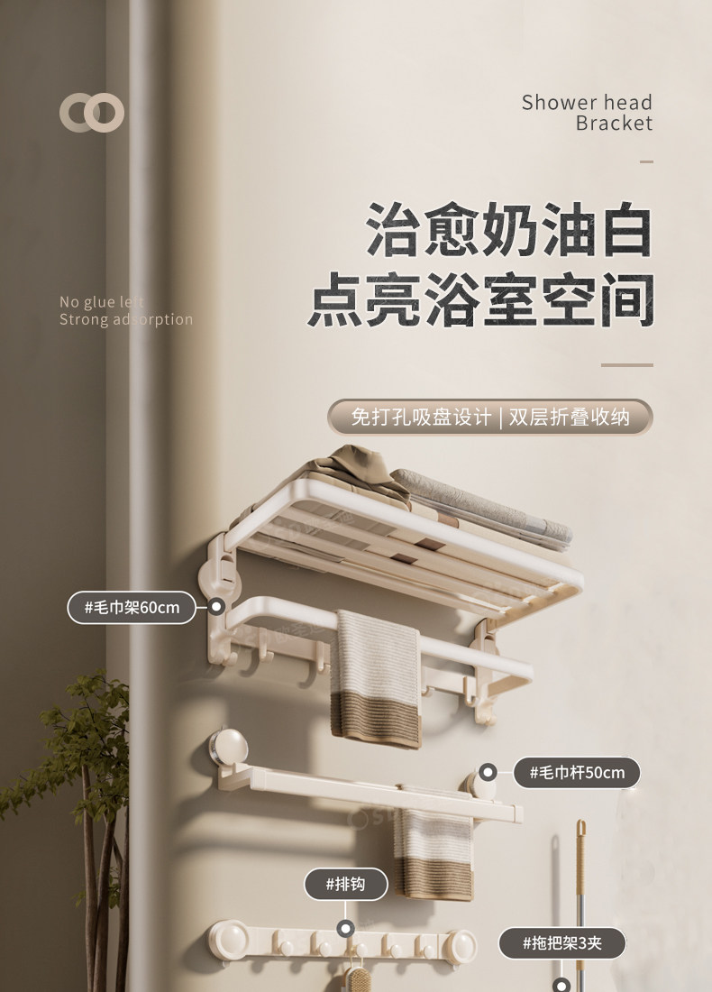 Color Classification Door-To-Door Delivery, Damage Compensation Guaranteed,[Cream White] Suction Cup Double Folding 50cm [Aviation Aluminum/Strong Load-Bearing],[Cream White] Suction Cup Double Folding 60cm [Aviation Aluminum/Strong Load-Bearing],[Cream White] Suction Cup Double Folding 70cm [Aviation Aluminum/Strong Load-Bearing],Luxury [2-Piece Set a] 60cm Bath Towel Rack + Towel Bar,Luxury [2-Piece Set B] 60cm Bath Towel Rack + Tissue Box,Luxury [2-Piece Set C] 60cm Bath Towel Rack + Hook,Luxury [3-Piece Set a] 60cm Bath Towel Rack + Towel Bar + Hook,Luxury [3-Piece Set B] 60cm Bath Towel Rack + Towel Bar + Tissue Box,Flagship [4-Piece Set a] 60cm Bath Towel Rack + Towel Bar + Toilet Brush + Hook
