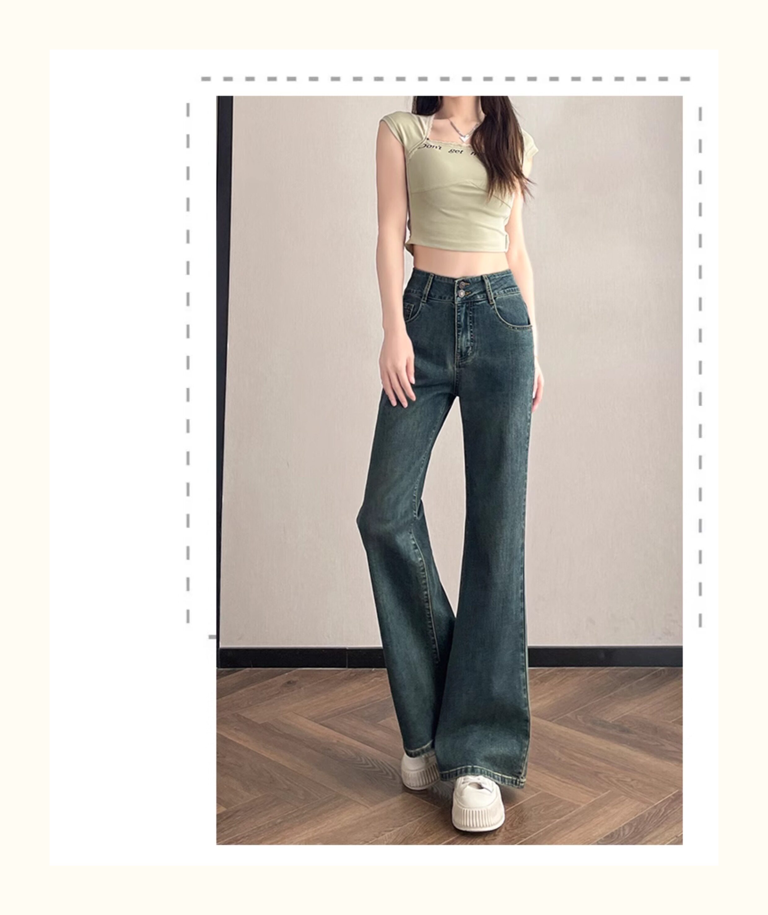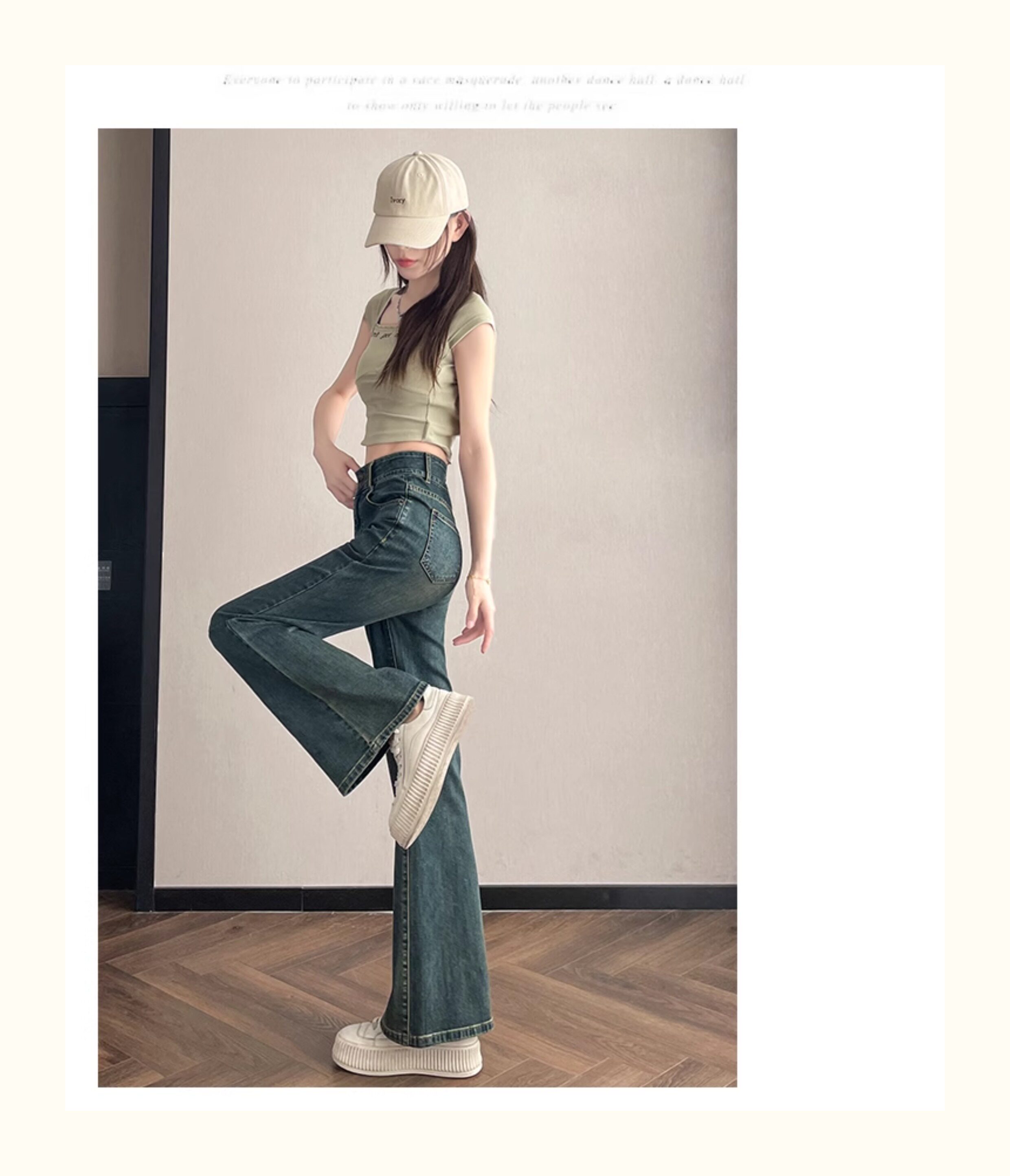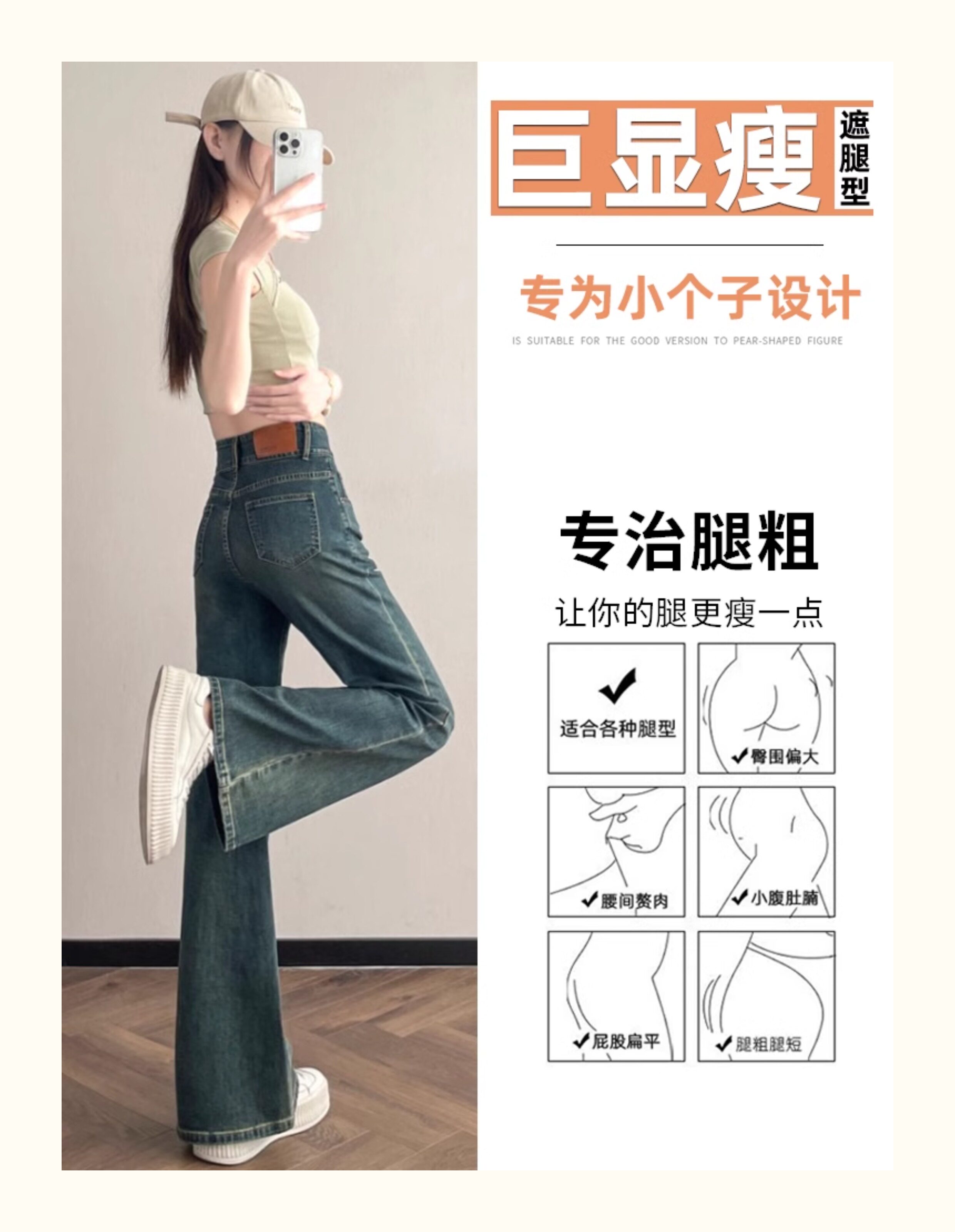 Small retro bootcut jeans for women 2026 new spring and autumn high-waisted stretch bell pants 150 high-rise pants