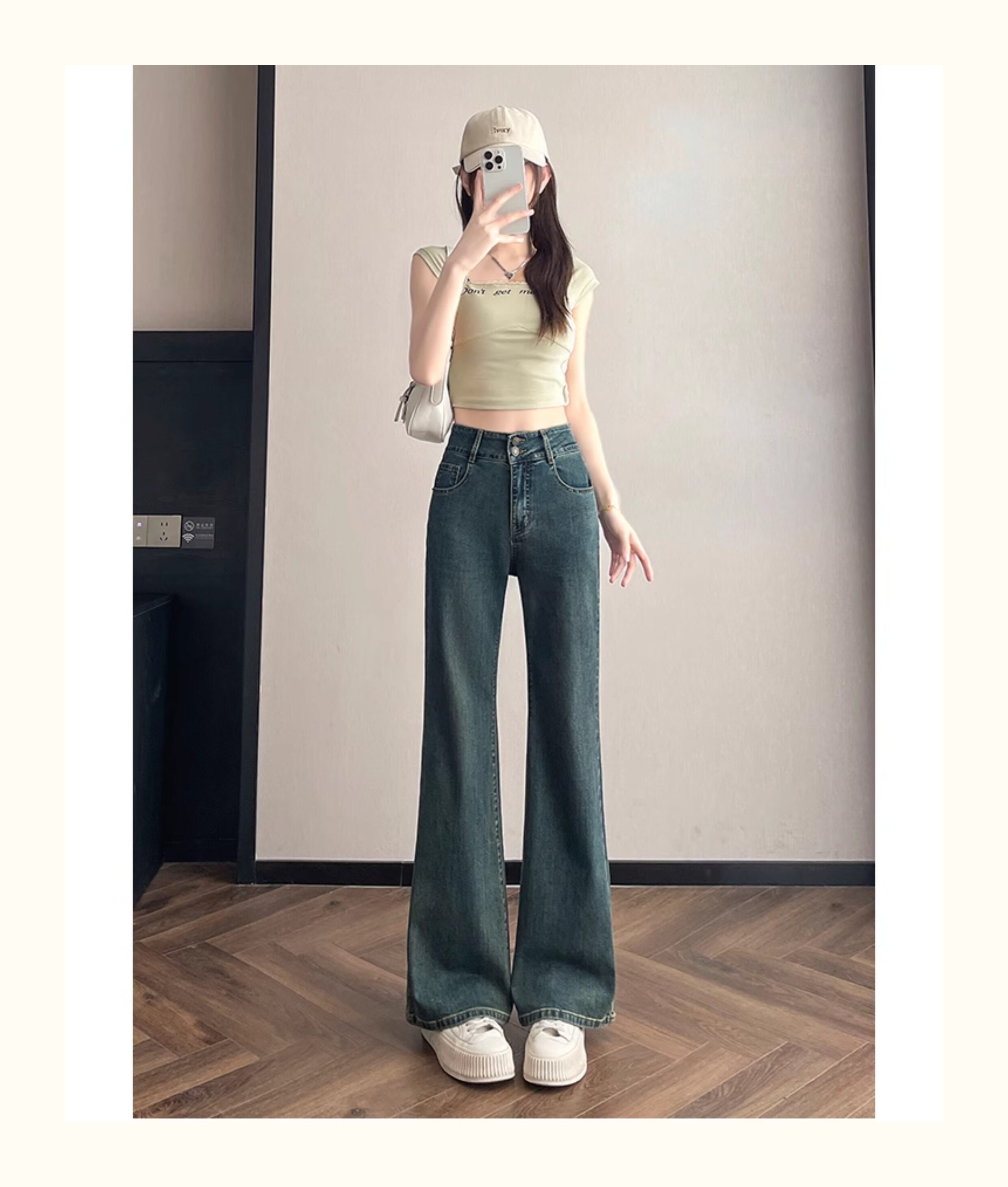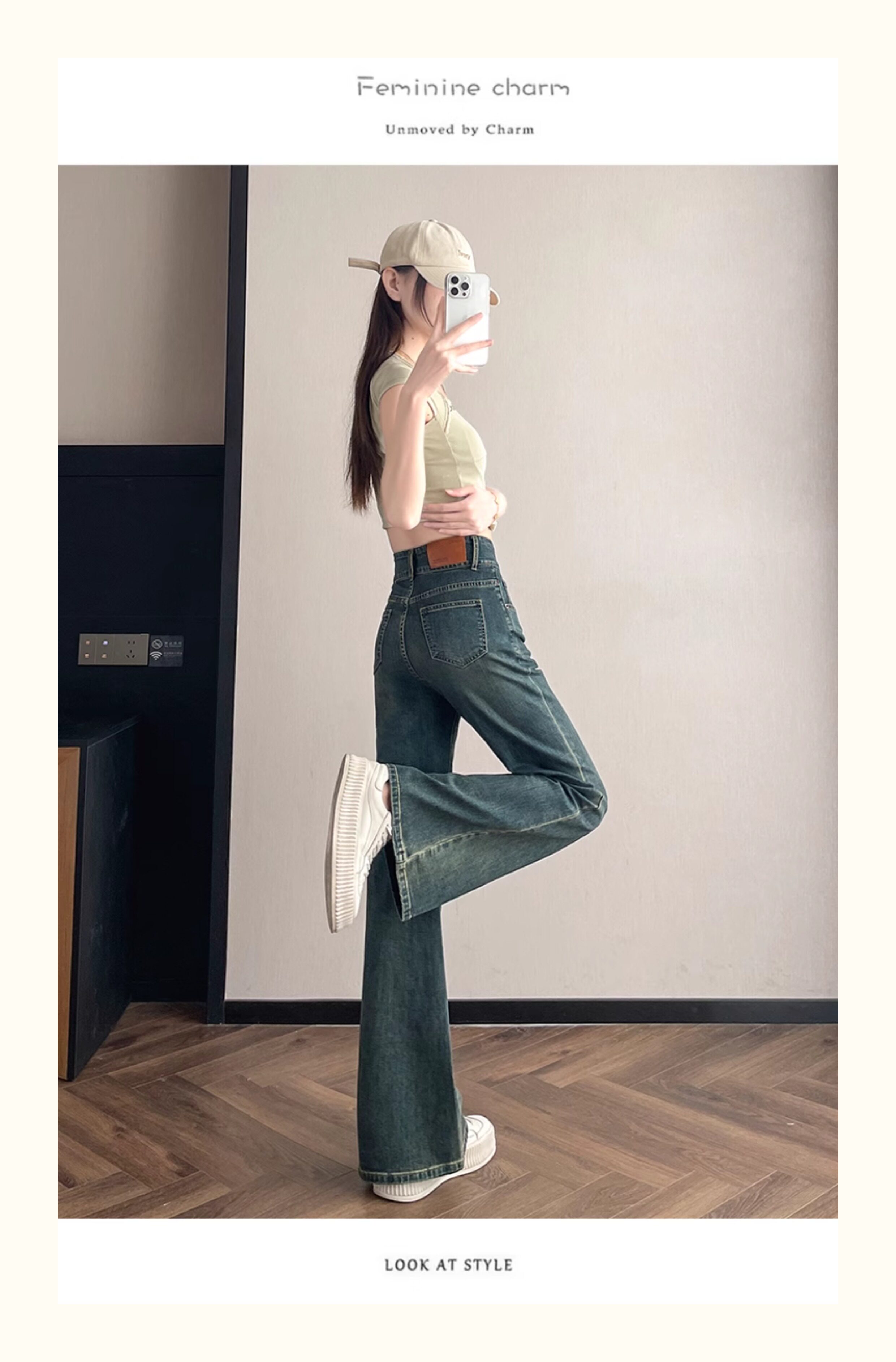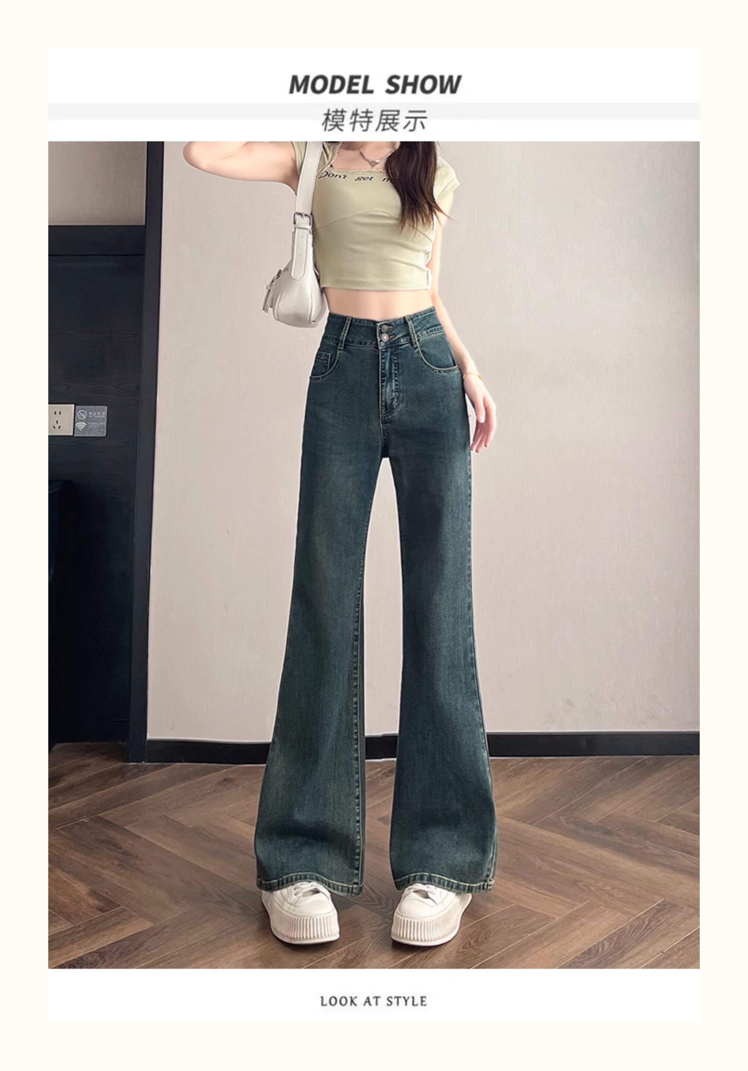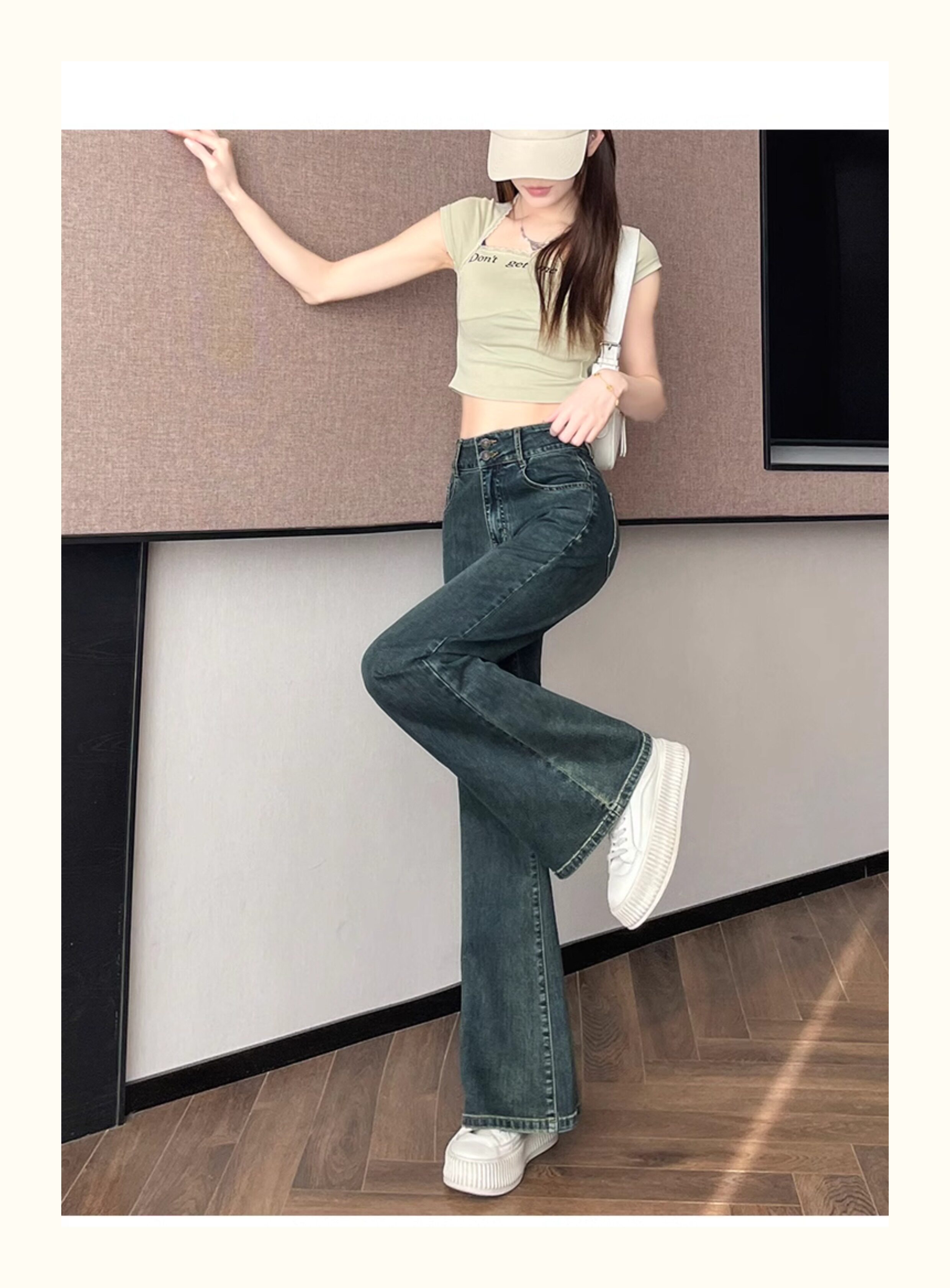 Small retro bootcut jeans for women 2026 new spring and autumn high-waisted stretch bell pants 150 high-rise pants