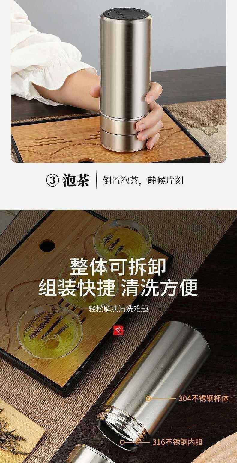 High-end office tea and water separation large tea warehouse thermos cup new stainless steel tea cup water cup portable men and women