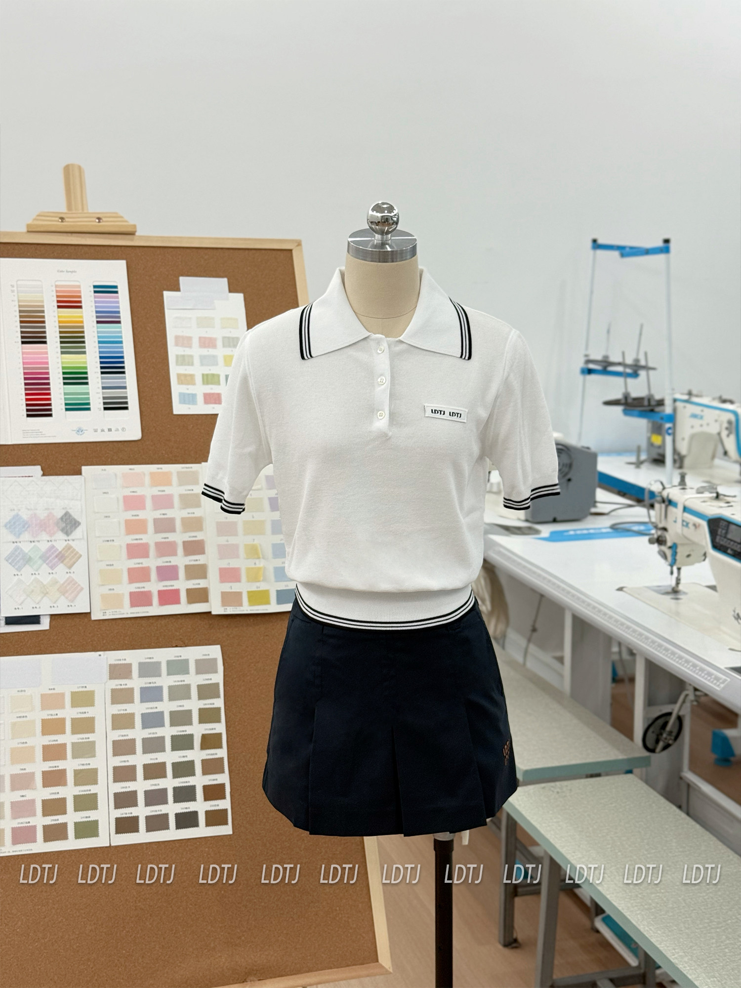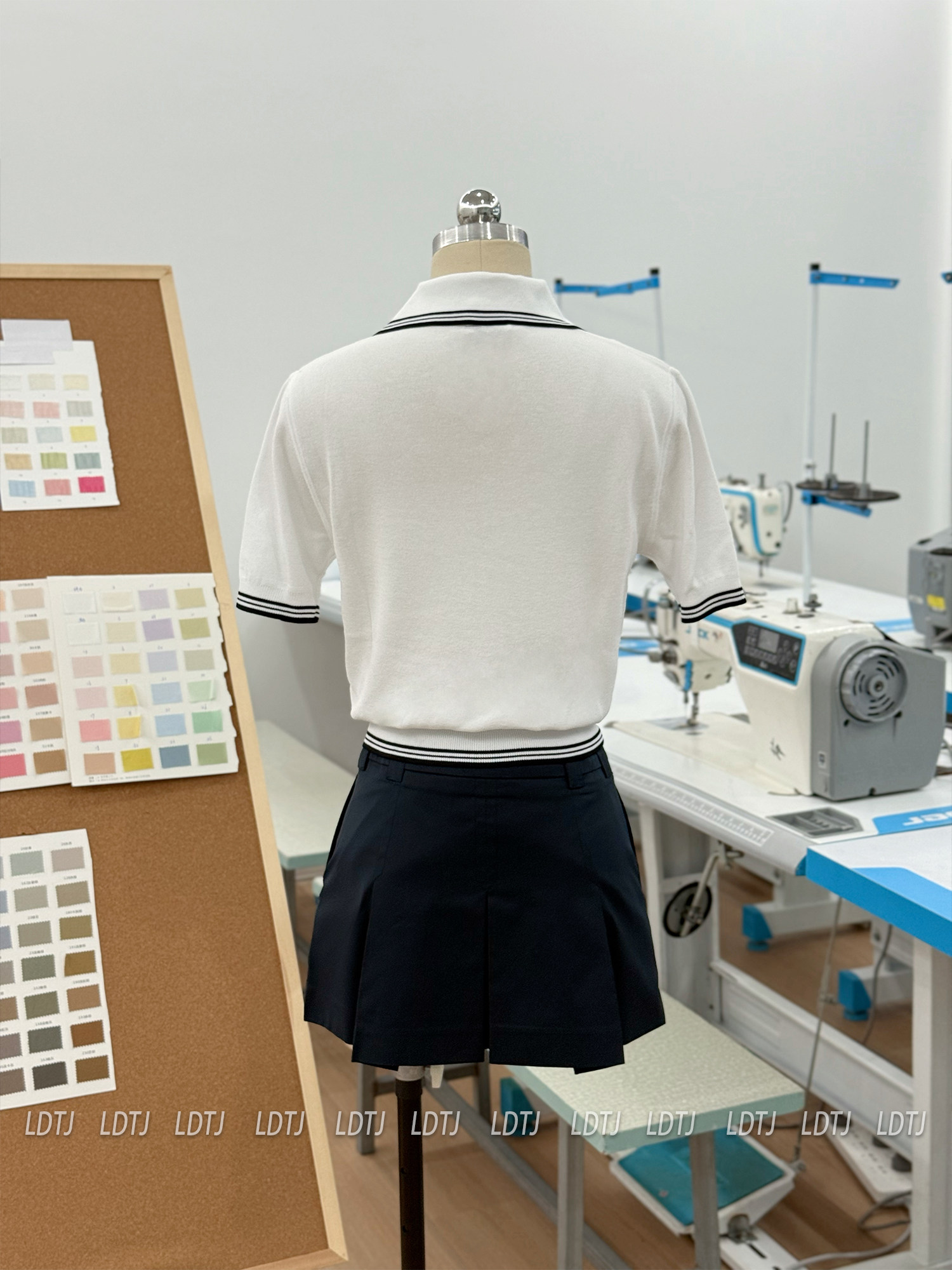 Color Classification White Knitted Short Sleeves 55% Cotton,Navy Blue Skirt (Lined) 60% Polyester + 40% Polyester
