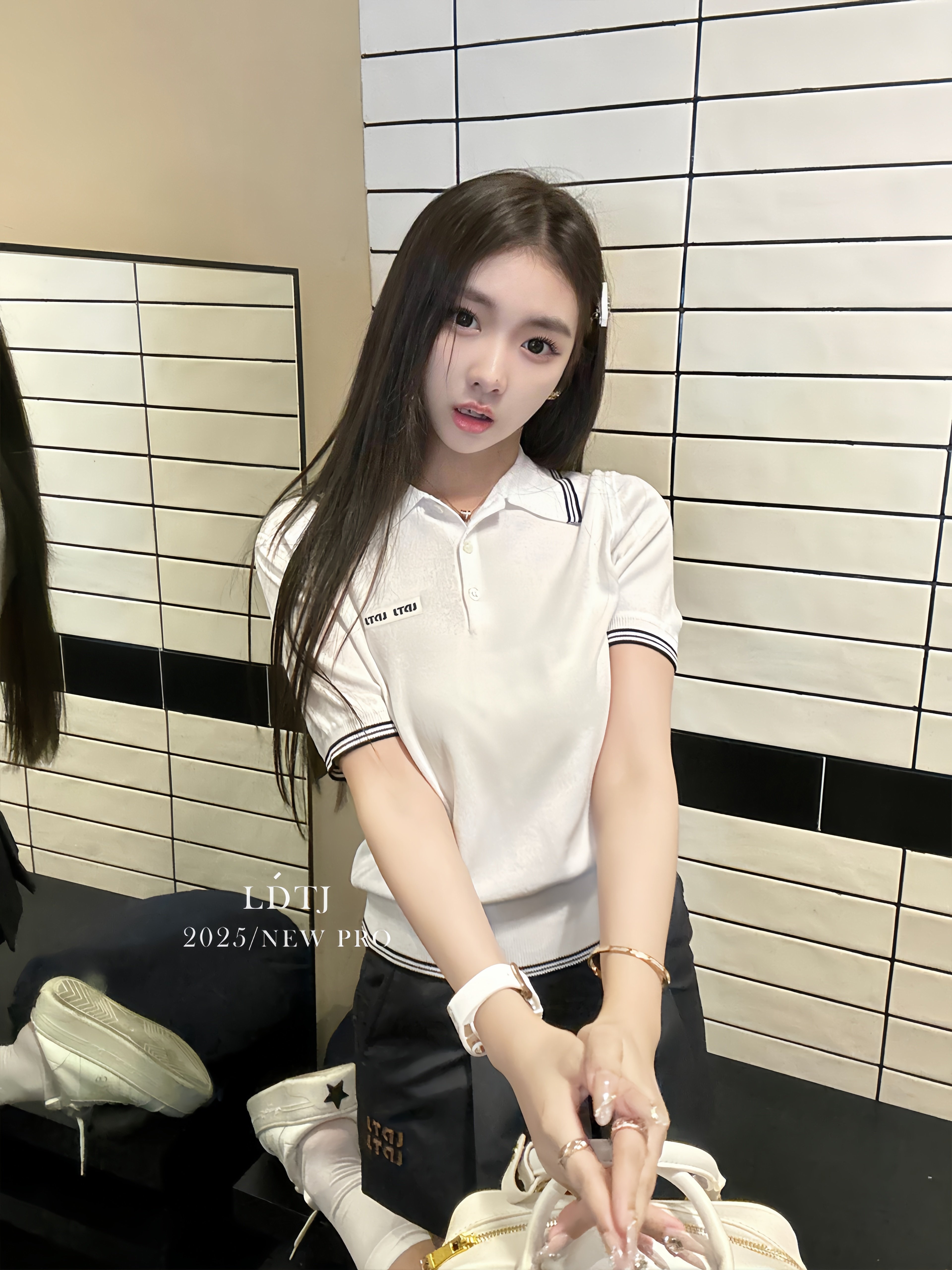 Ldtj High-End Fashion Expert's Autumn Style, Versatile Letter Embroidery Slim-Fit Short-Sleeve Polo Wool Knit Top
