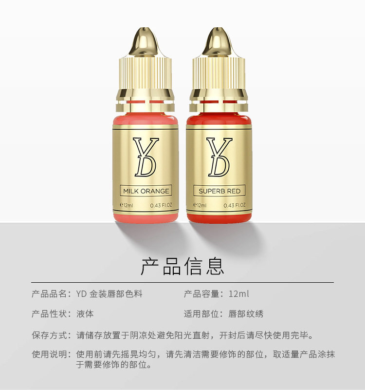 Yd Tattoo Ink Pure Plant-Based Natural Lip Color for Young Girls, European Natural Lip Color, Easy to Apply, 12ml