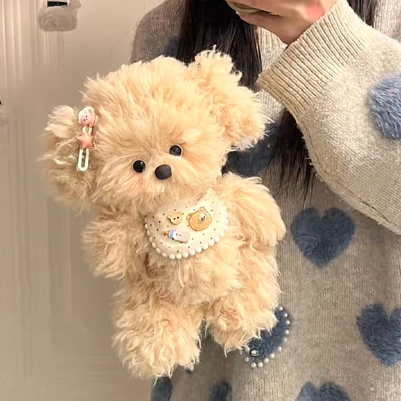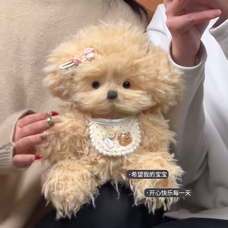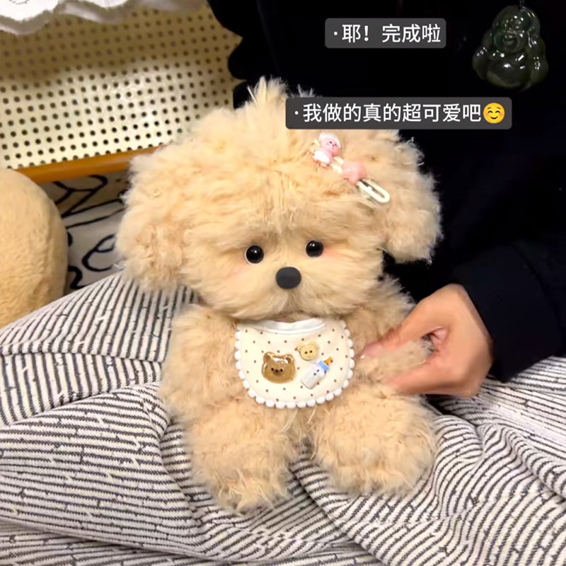 Handmade DIY Material Kit Creative Plush Fluffy Curly-Haired Dog Recording Doll Birthday Gift for Girls