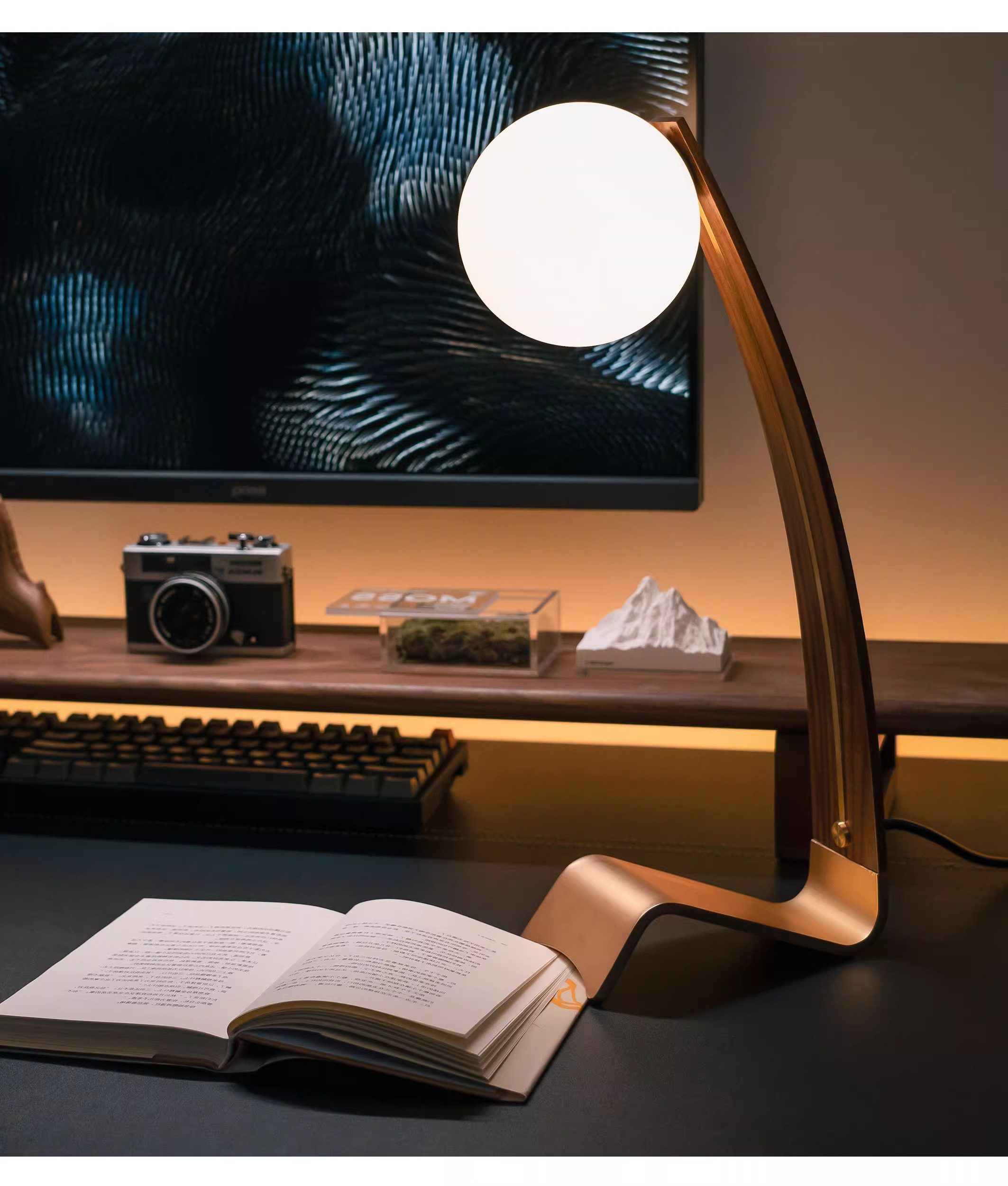 Quiet Light Black Walnut Wood High-End Retro Desktop Work Lamp Simple Creative Design Desk Lamp