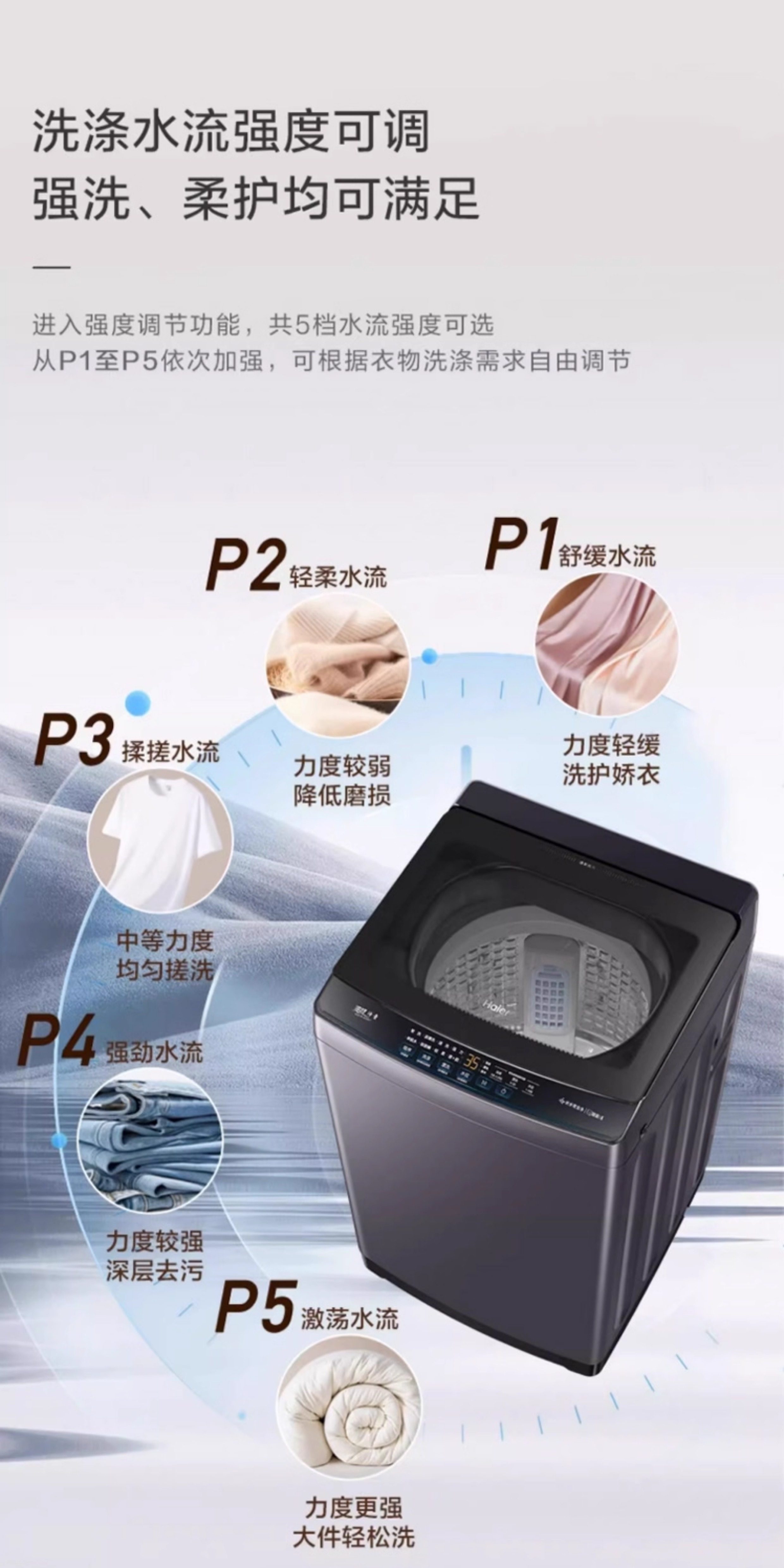 Laundry Procedures Floating Off,Anti-Mite Wash,Smart Wash,Gentle,Single Dehydration,Strong,Quick Wash