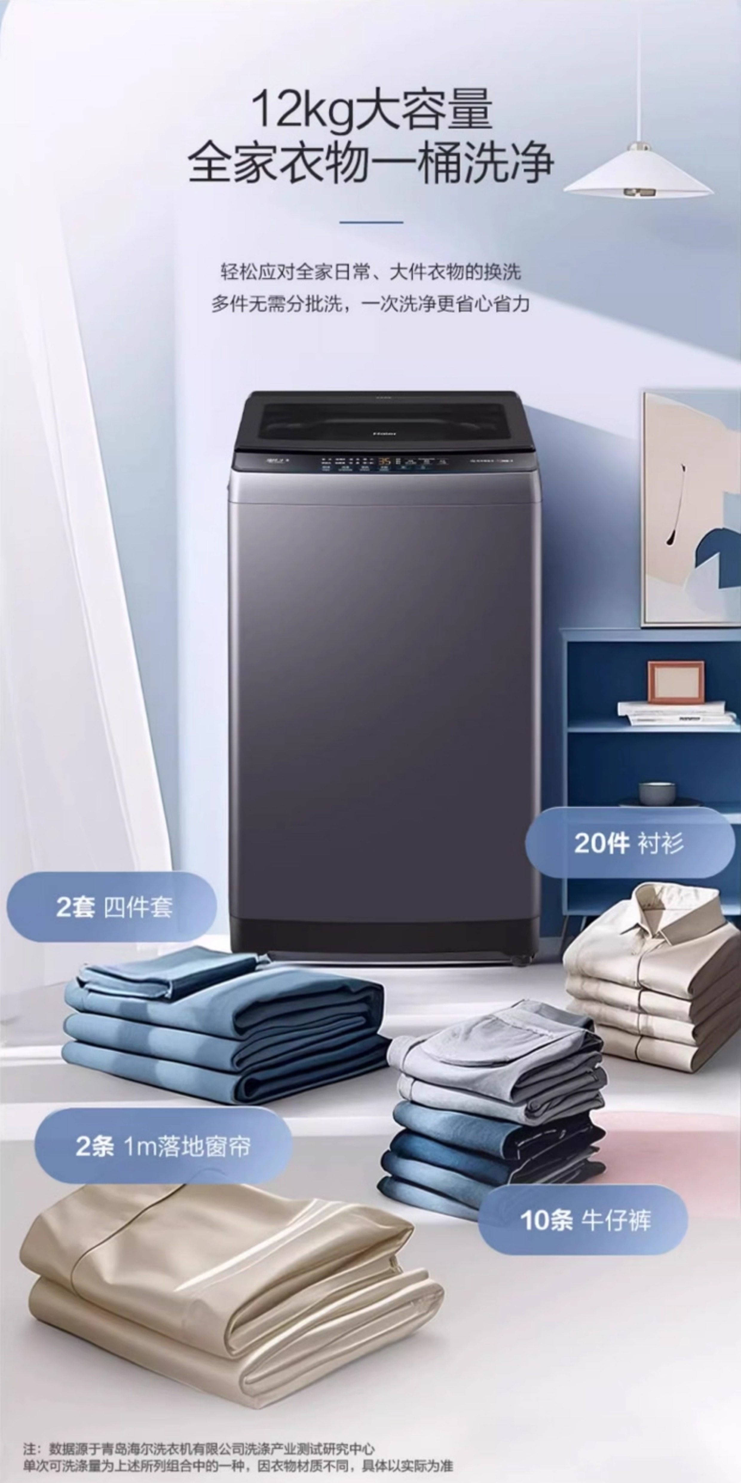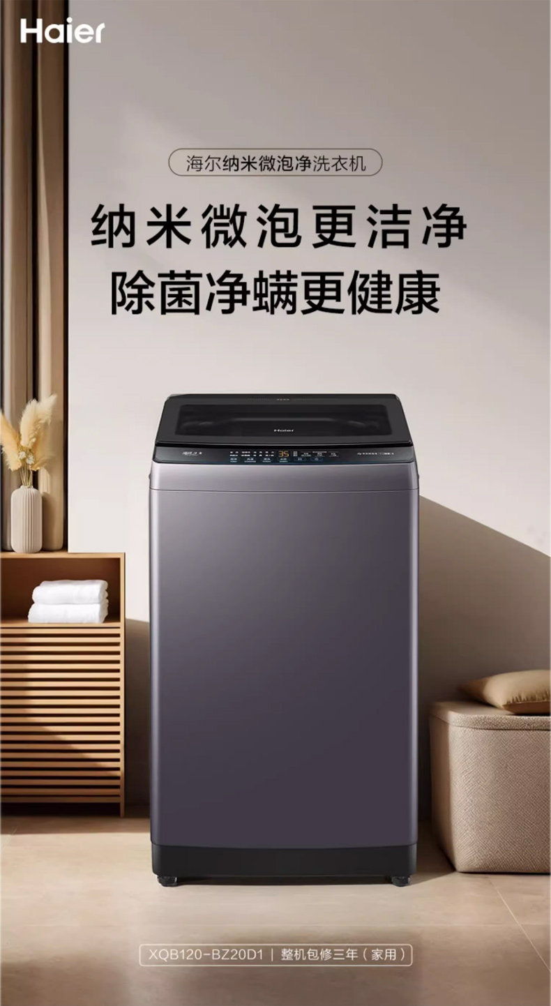 [Micro Bubble Cleaning] Haier Pulsator Washing Machine for Home Use, Fully Automatic, 12kg Super Large Capacity, Sterilization 20D1