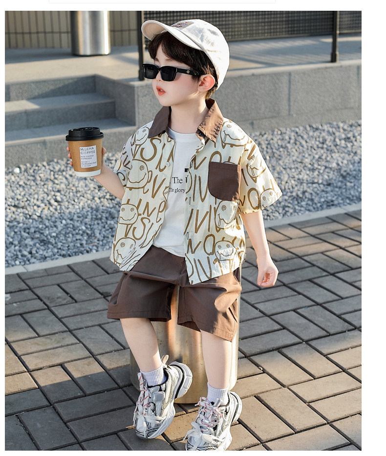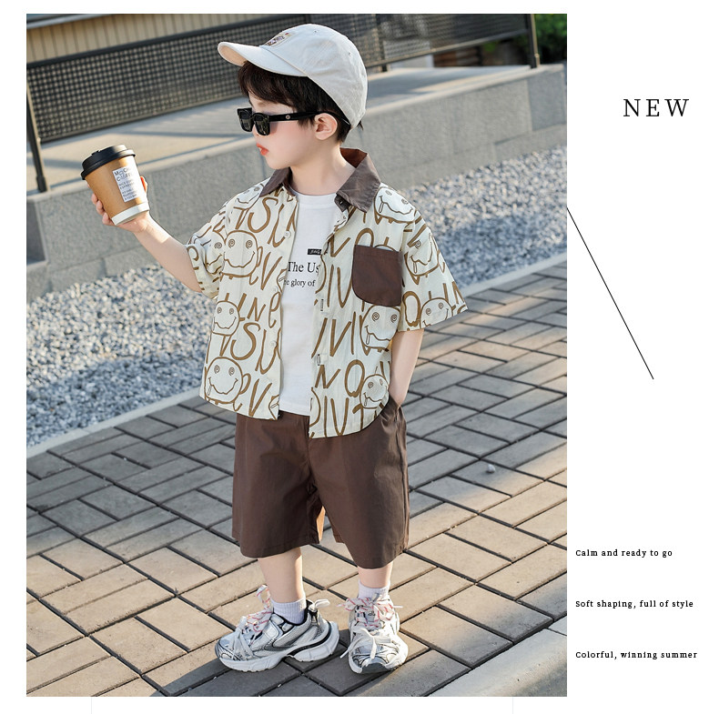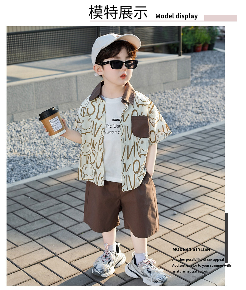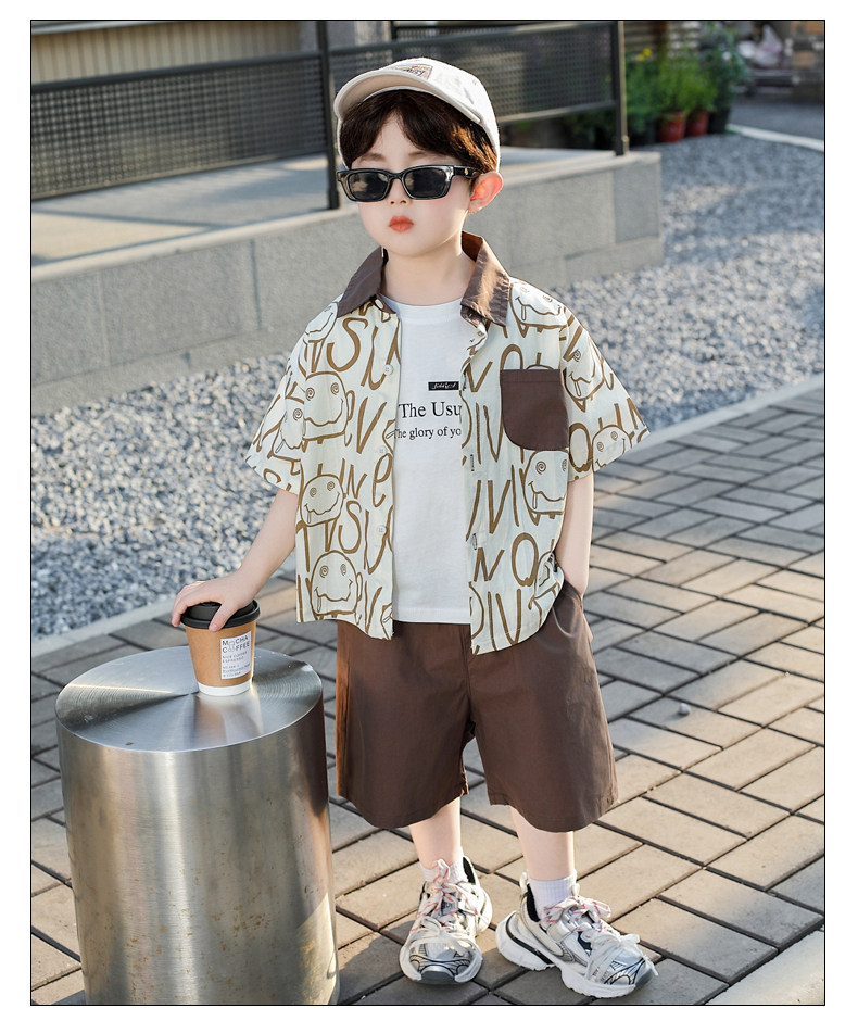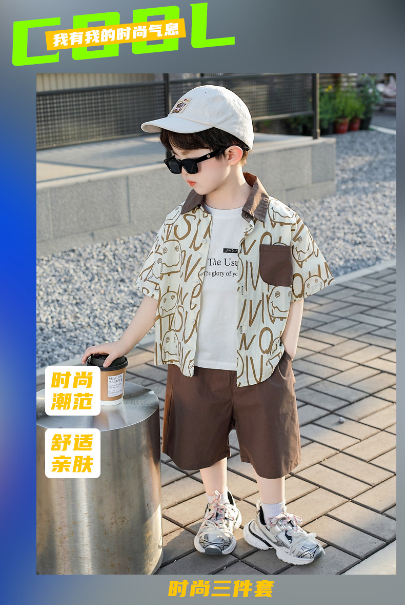 Children's Clothing Boys' Summer Suit 2025 New Style Stylish Boy's Shirt Short-Sleeved Three-Piece Set Baby Casual Clothes