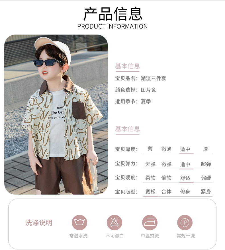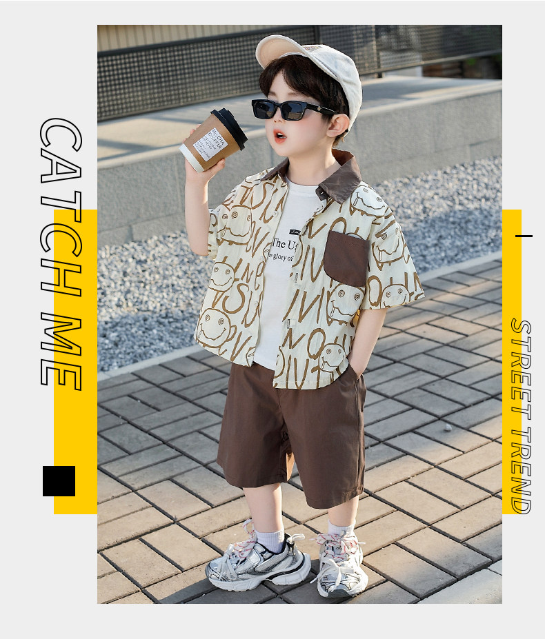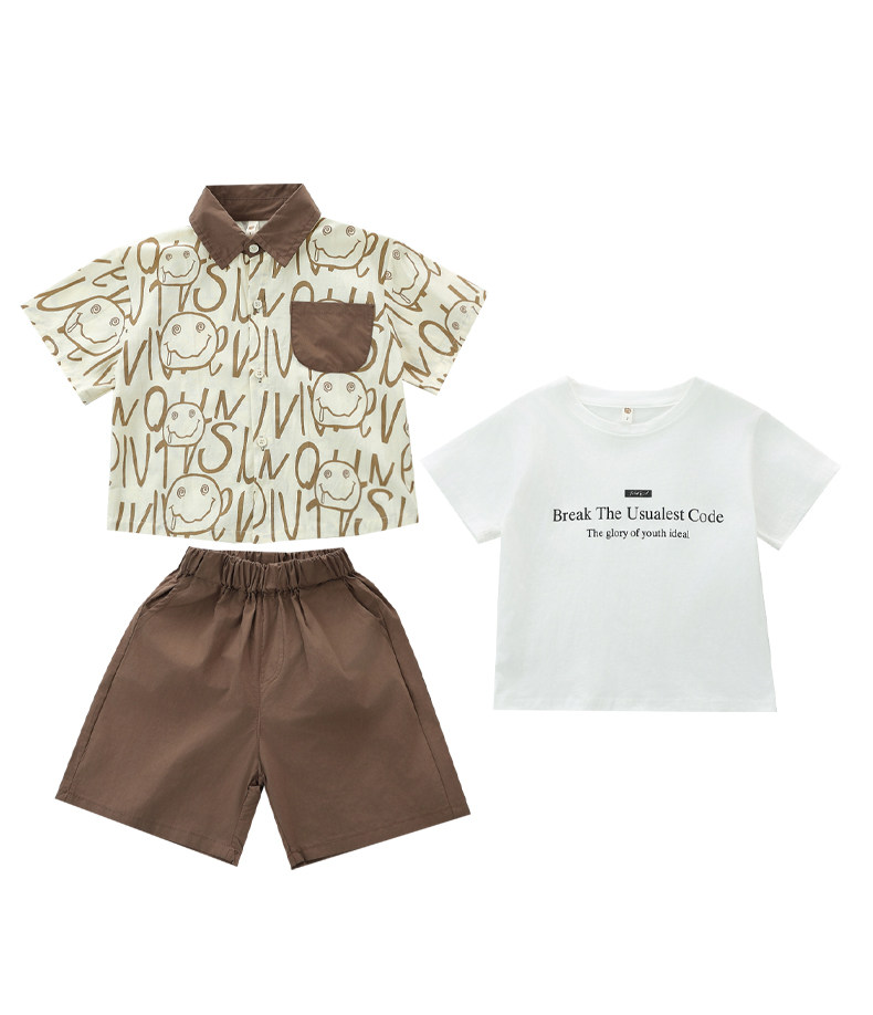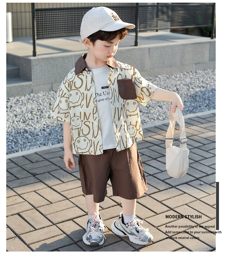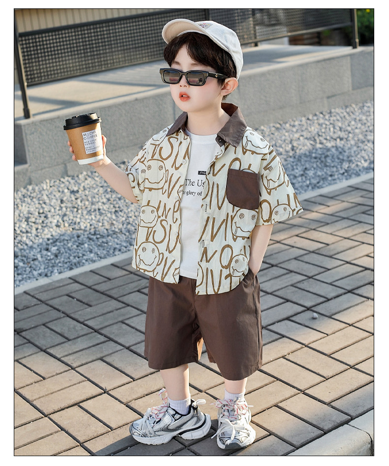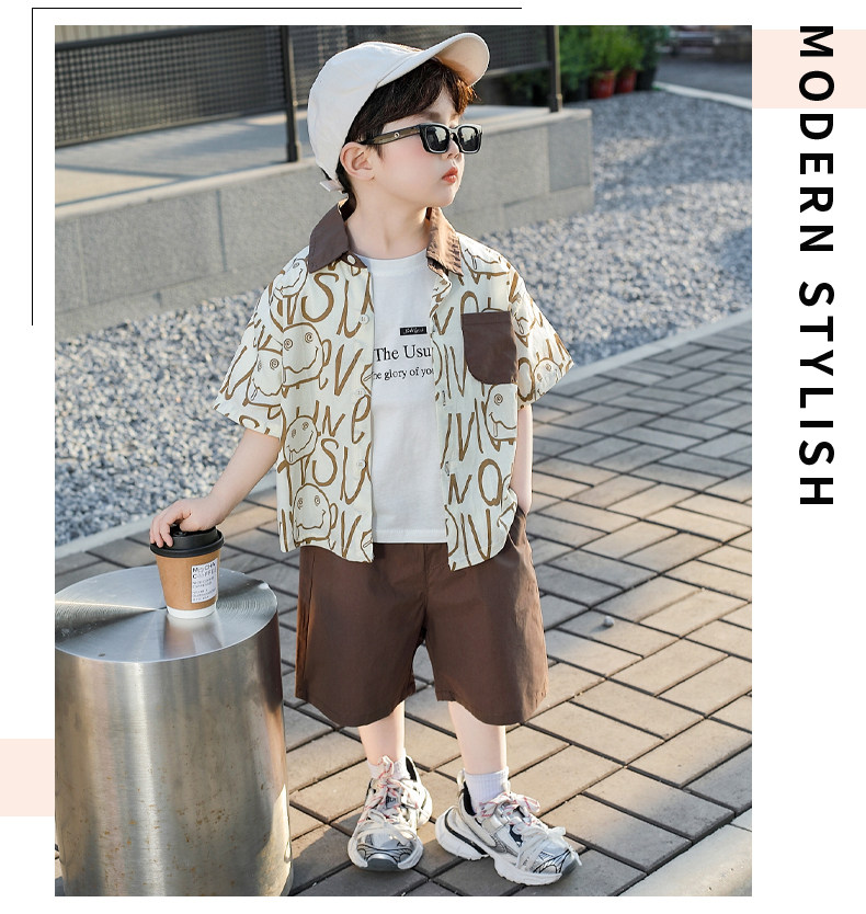 Children's Clothing Boys' Summer Suit 2025 New Style Stylish Boy's Shirt Short-Sleeved Three-Piece Set Baby Casual Clothes