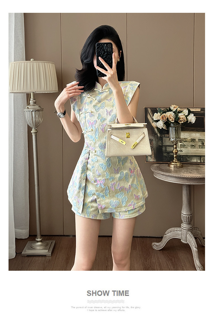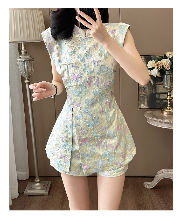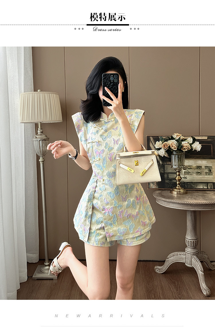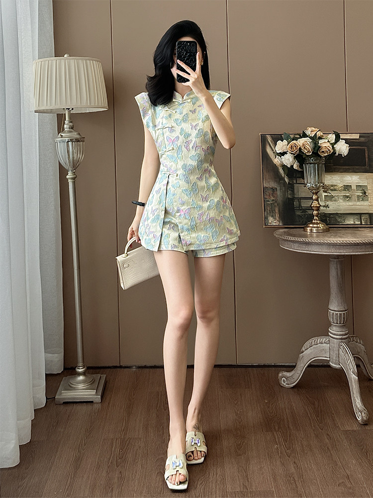 Summer Age-Reducing Fashion, Improved New Chinese Style National Style Suit, Feminine Butterfly Embroidery, Stunning Cheongsam Dress Two-Piece Set